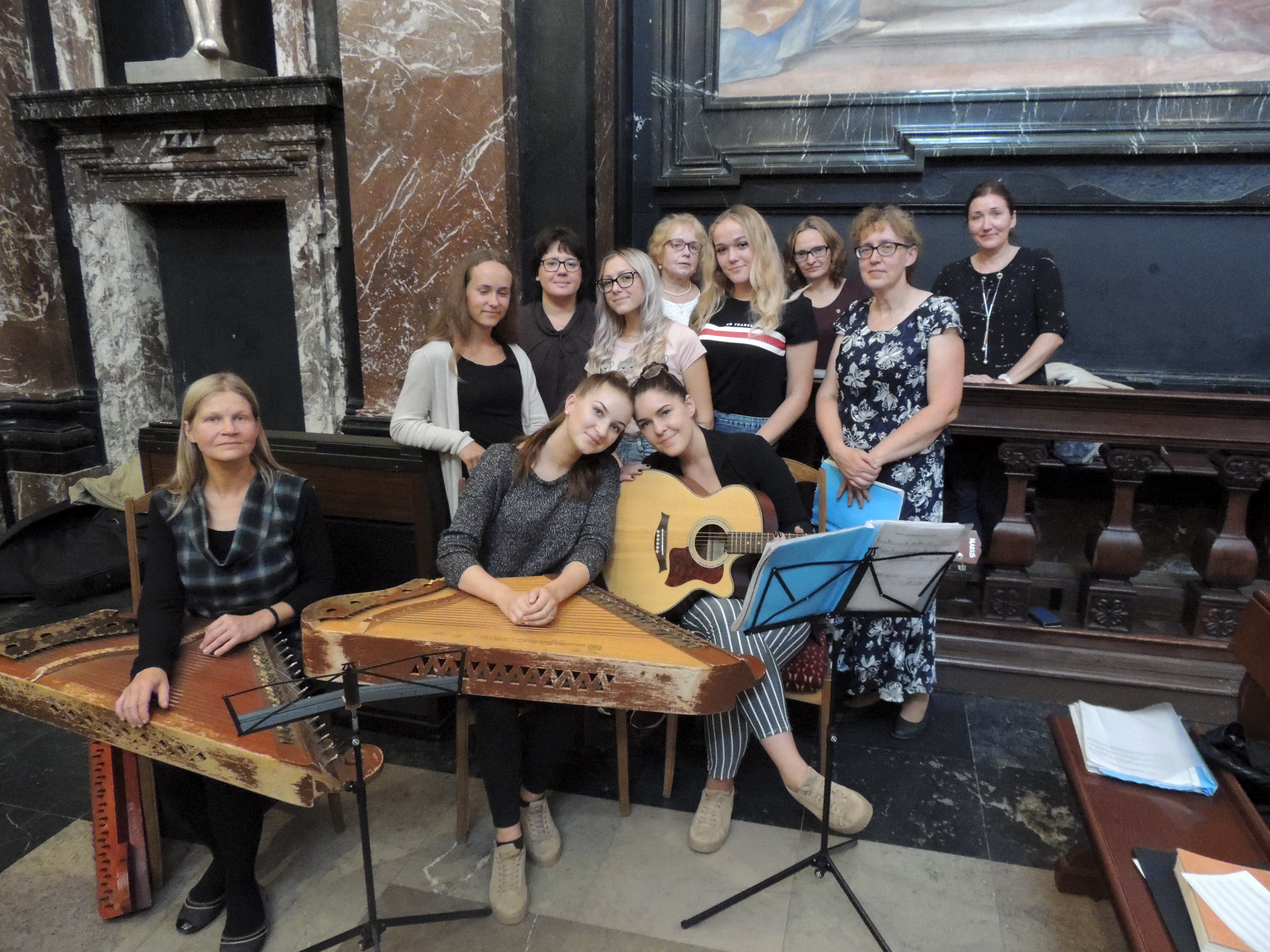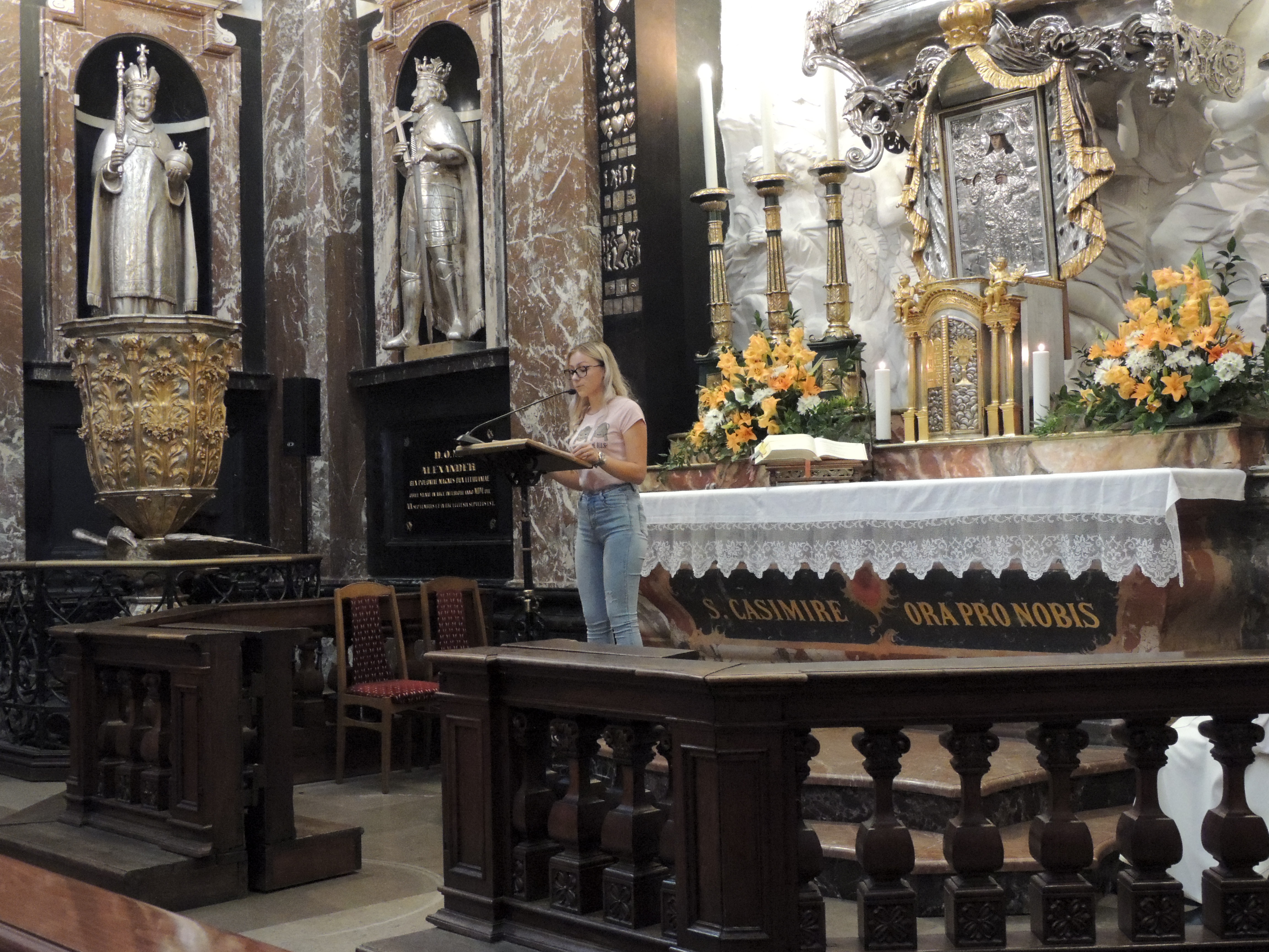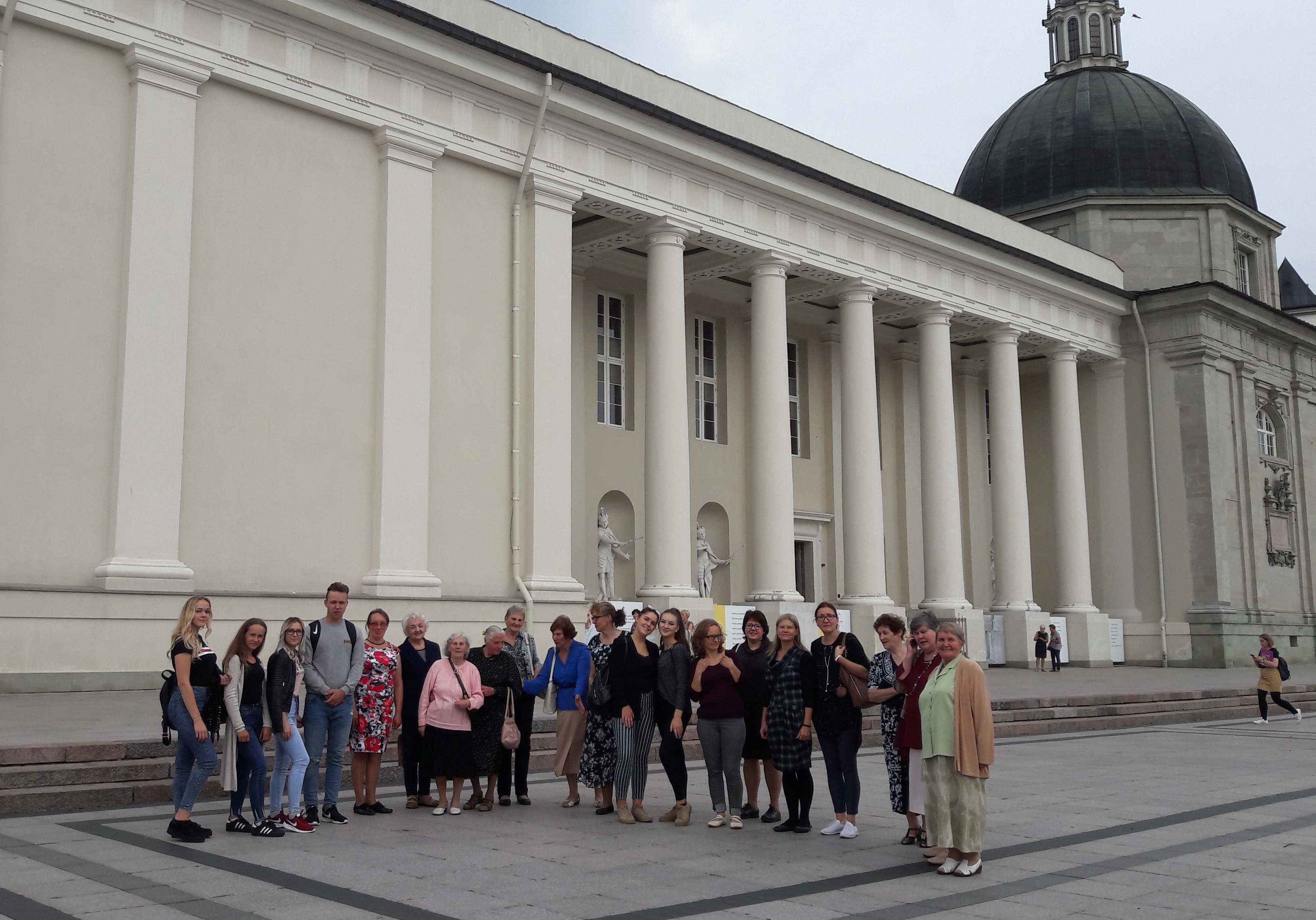 Tęsdami Kamajų šv. Kazimiero parapijos bendradarbiavimo su Vilniaus arkikatedra bazilika tradiciją, 2018 m. rugsėjo 4 dieną Kamajų Antano Strazdo gimnazijos mokiniai ir Kamajų šv. Kazimiero parapijos ansamblis vyko į Vilnių. Sostinės katedros šv. Kazimiero koplyčioje buvo aukojamos šv. Mišios, kurių metu liturginius kūrinius atliko gimnazijos ir parapijos atstovai. Po Eucharistijos šventimo dalyvauta turiningoje Vilniaus katedros bendruomenės paruoštoje programoje: džiaugtasi paties menininko Juliaus Žėko pristatyta instaliacija „Vardan tos Lietuvos vienybė težydi“, kuri pasižymi skirtingų kultūrų / technologijų – archajinės audimo tradicijos ir lazerinių technologijos darna (žr. www.hymnos.lt), klausytasi dr. A. Vasiliauskienės pasakojimo apie Dievo tarno arkivyskupo M. Reinio gyvenimą ir kančią, aplankyta Gailestingumo šventovė bei vienas seniausių Vilniaus statinių – pranciškonų bažnyčia. Nuotraukos autoriaus.