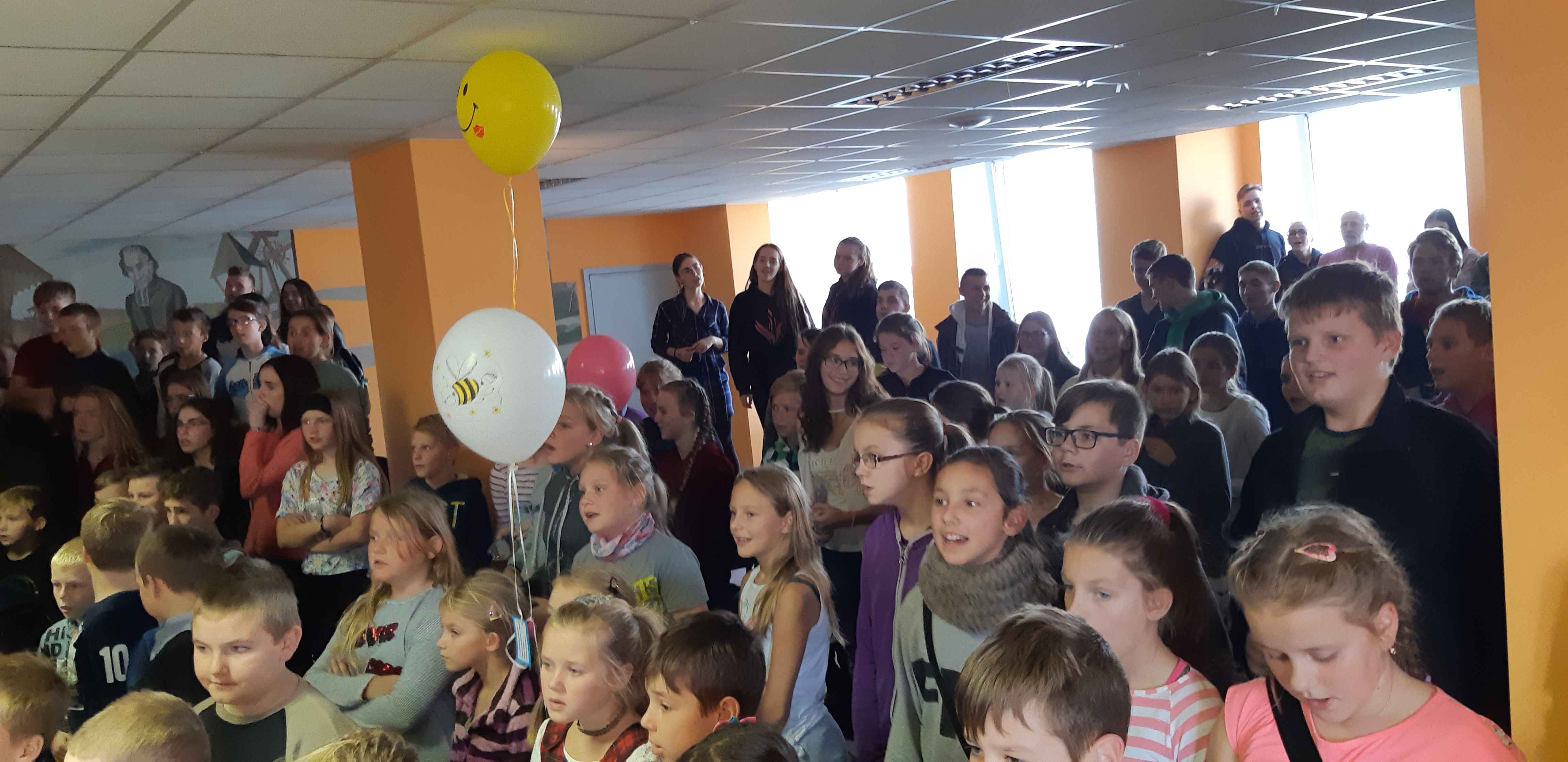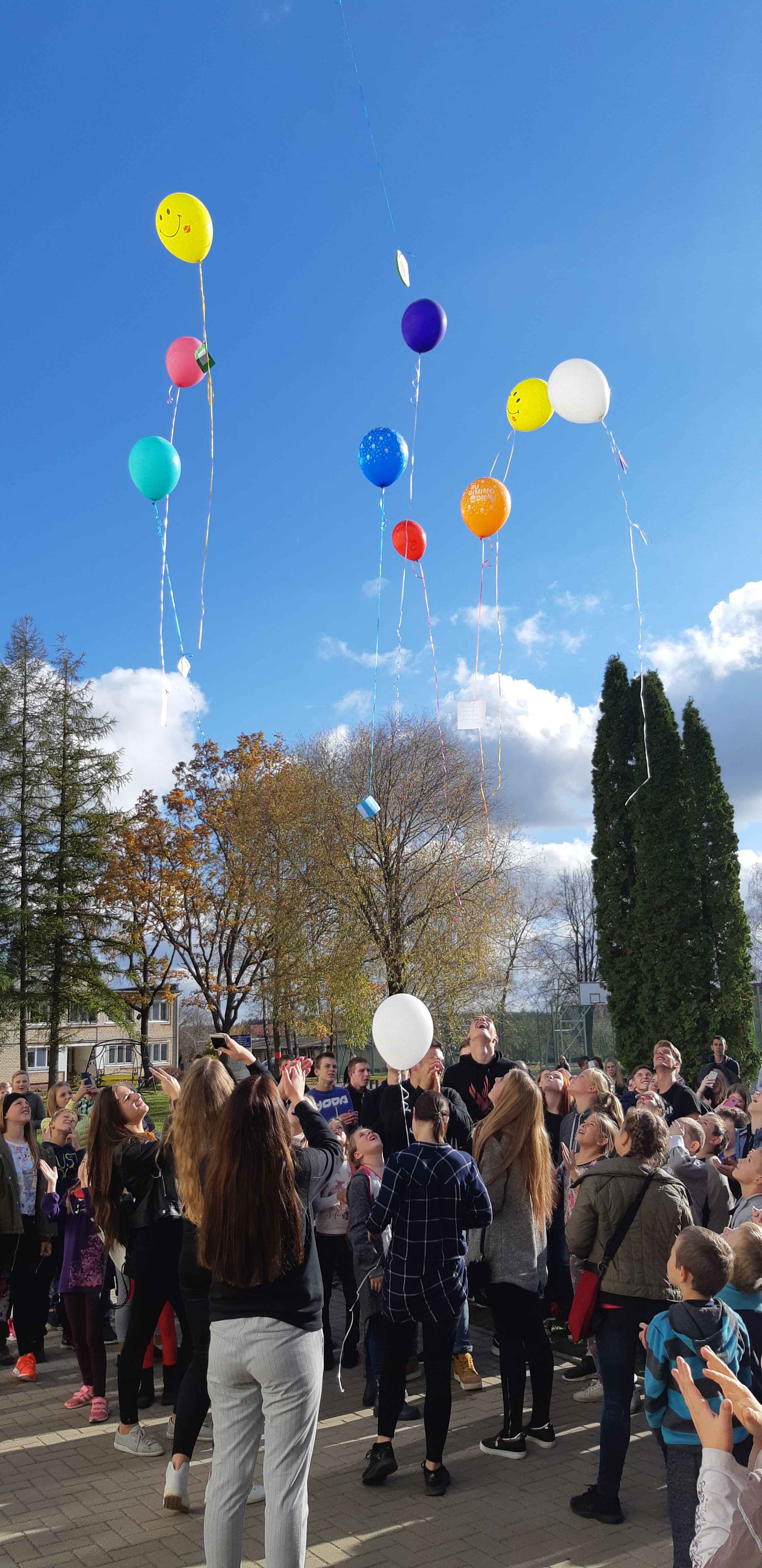Šventės pabaigą vainikavo nuotaikingi mokinių muzikiniai pasirodymai, didžiulis tortas bei į žydrą dangų paleisti balionai su prasmingais palinkėjimais mūsų mokyklai. Nuotraukos autoriaus.