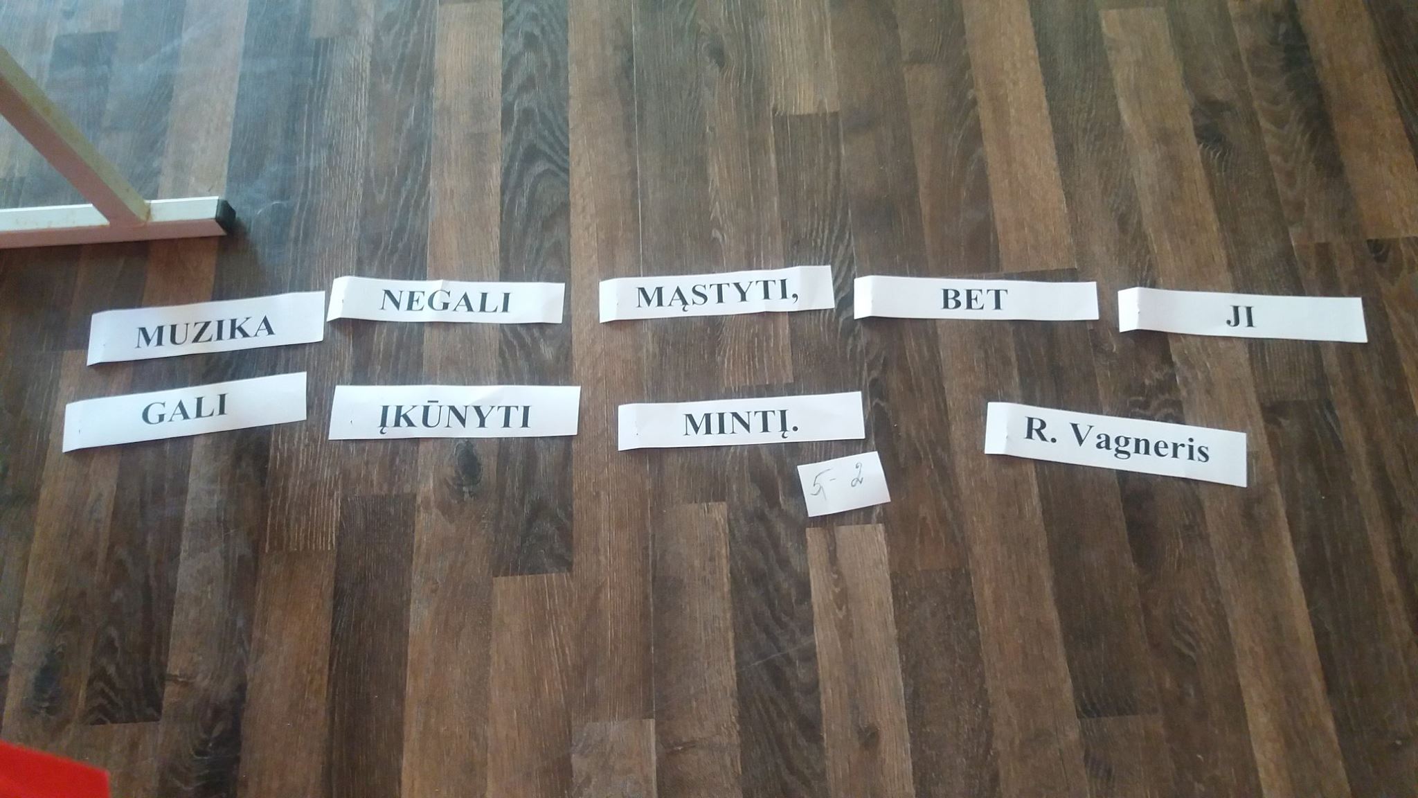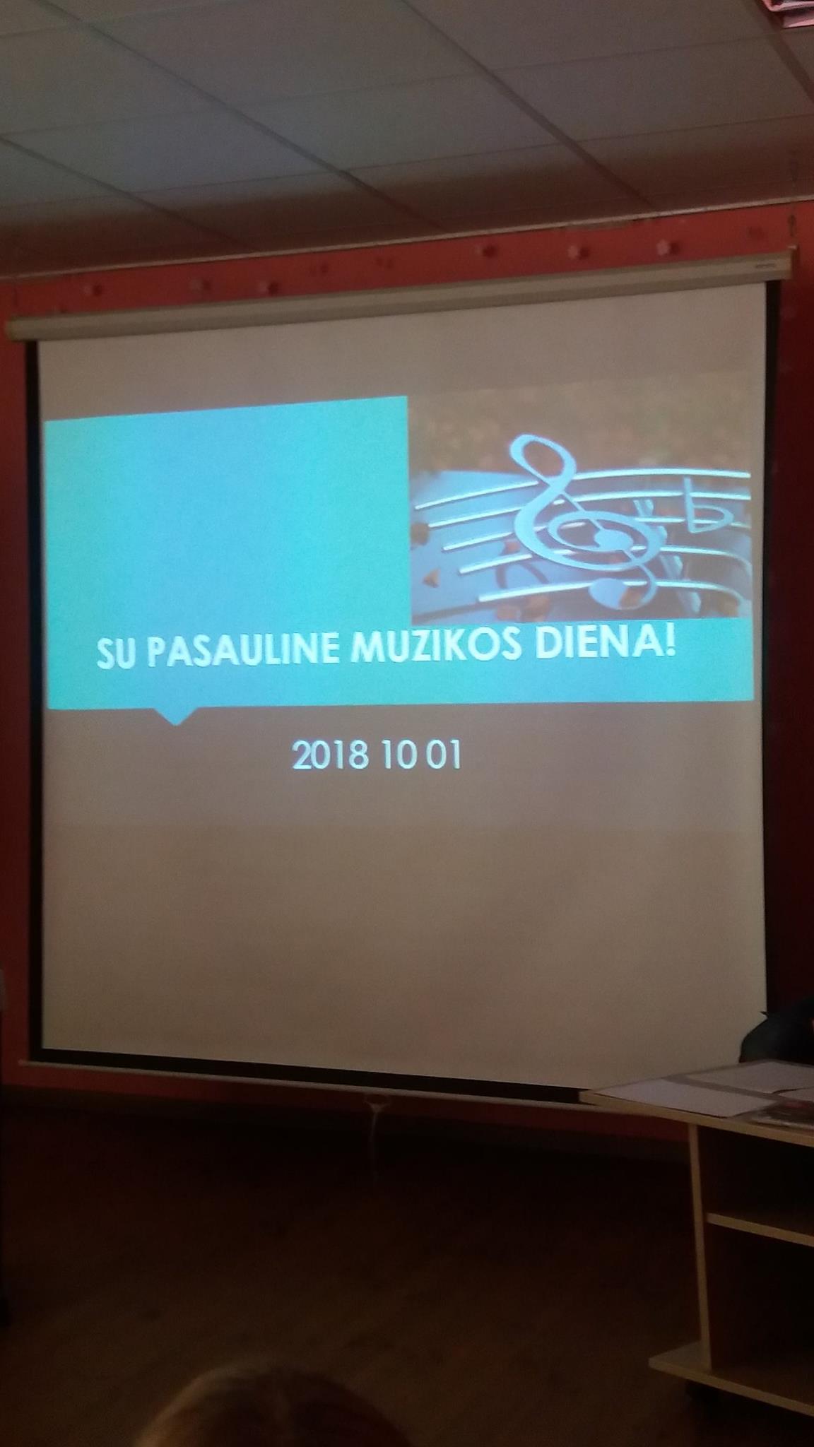 Spalio 1 d. pasaulis minėjo Pasaulinę muzikos dieną. Todėl ir mūsų mokykloje jau nuo pat ryto skambėjo muzika. Vyko atviros muzikos pamokos su gitaros virtuozu profesionalu Simonu Bušma. Po 5 pamokų į Muzikos viktoriną aktų salėje rinkosi 5 – 8 klasių mokinių komandos: ,,Gama”, ,,Dirigentai”, ,,Do re mi” ir ,,Nata‘‘.