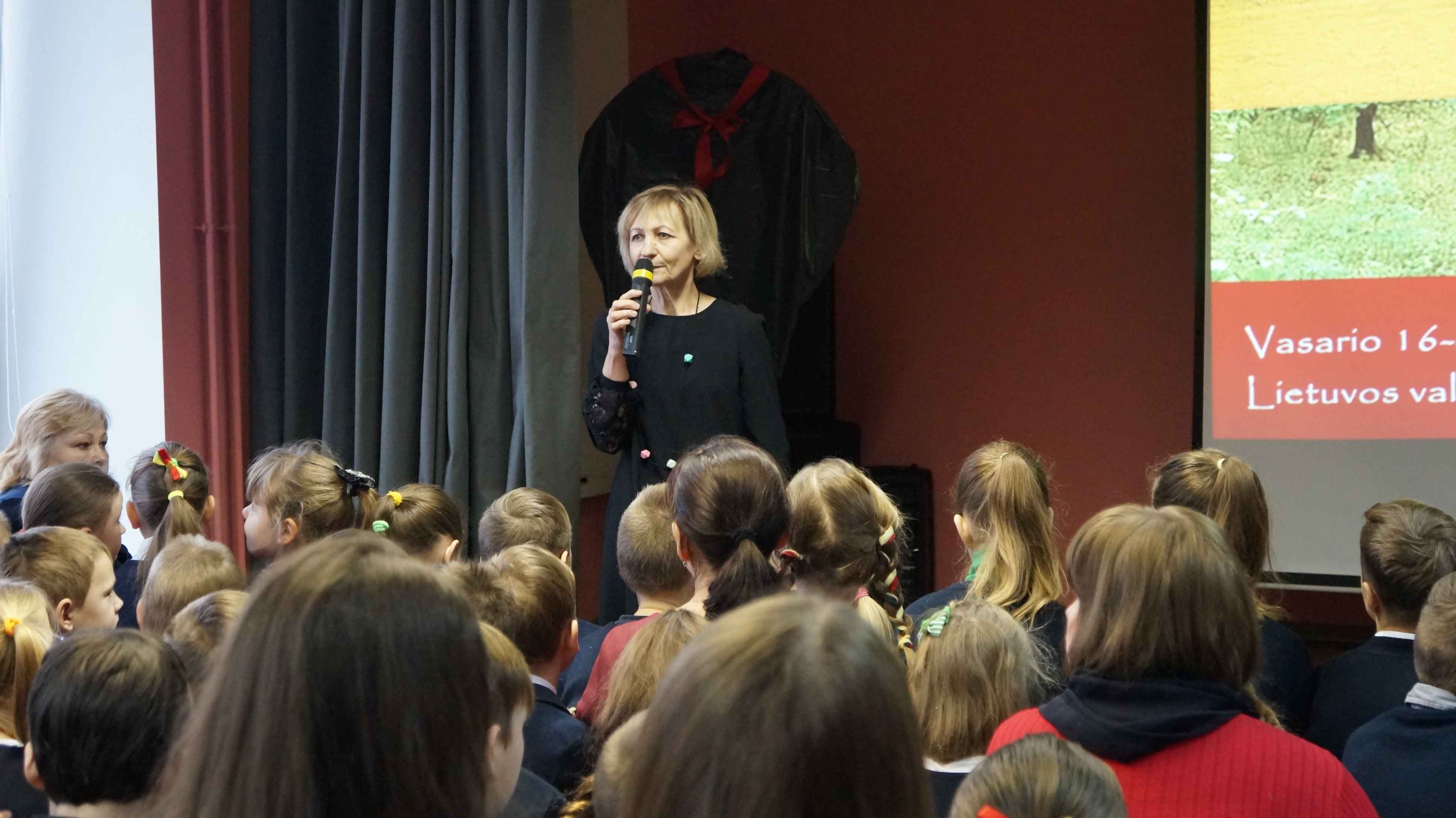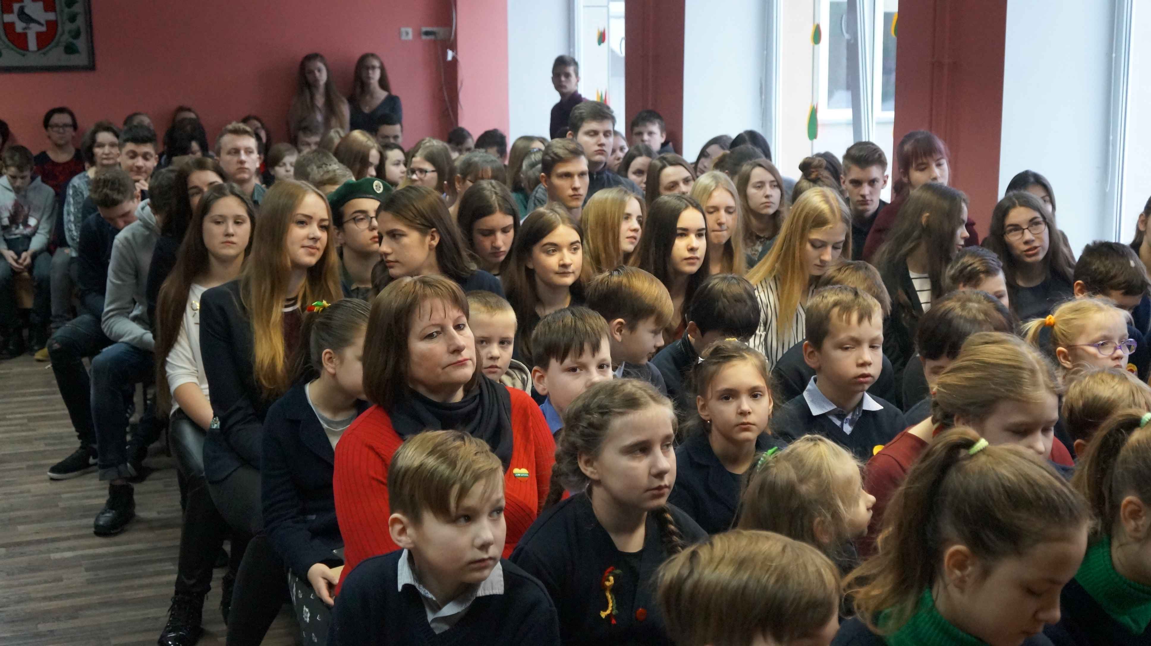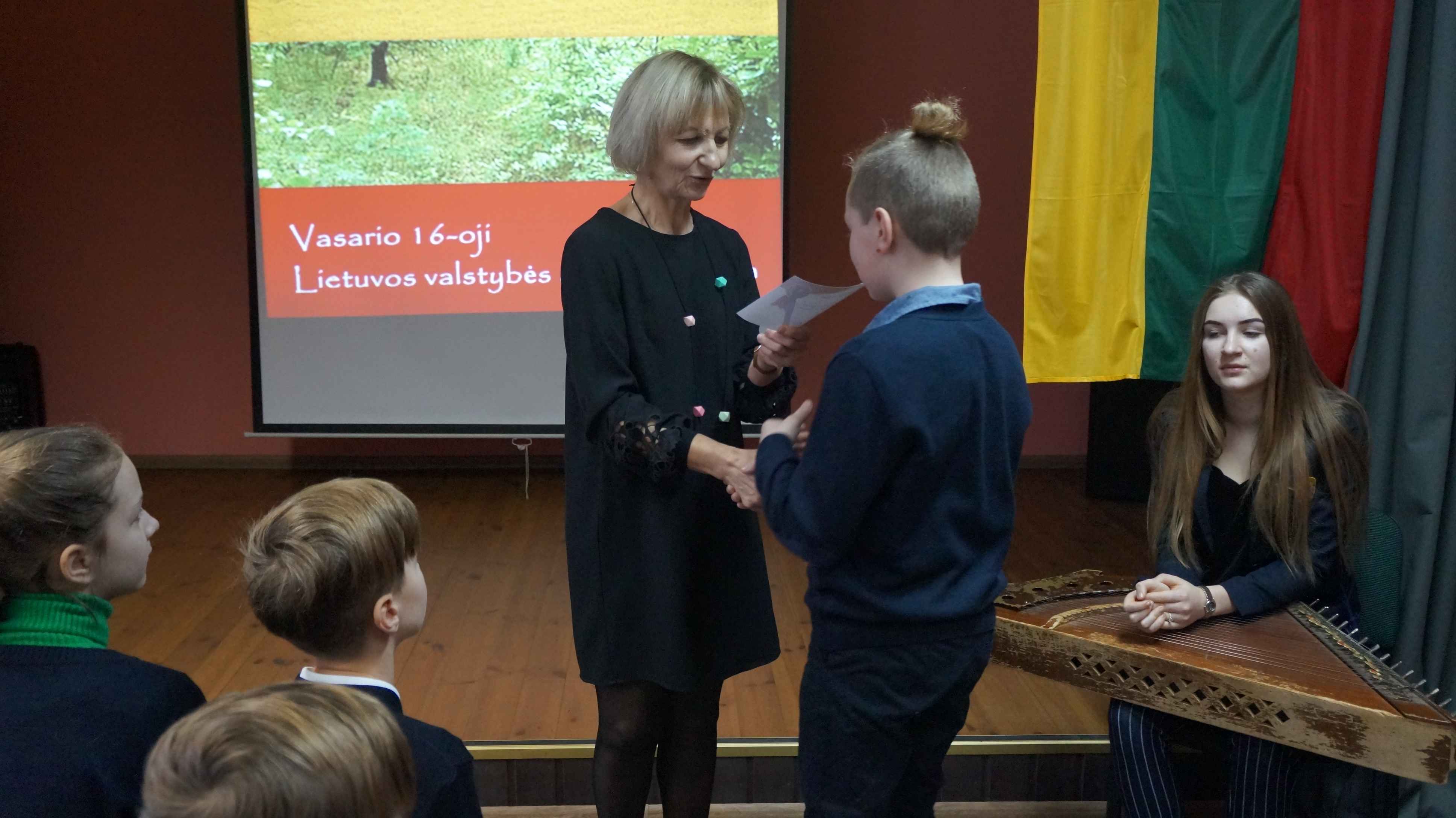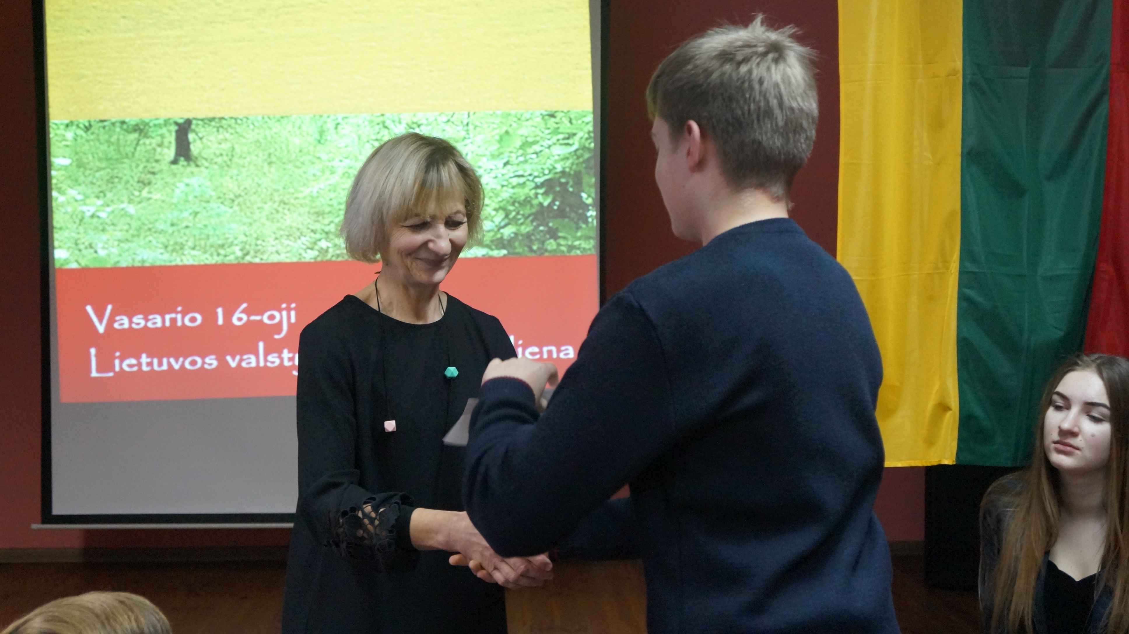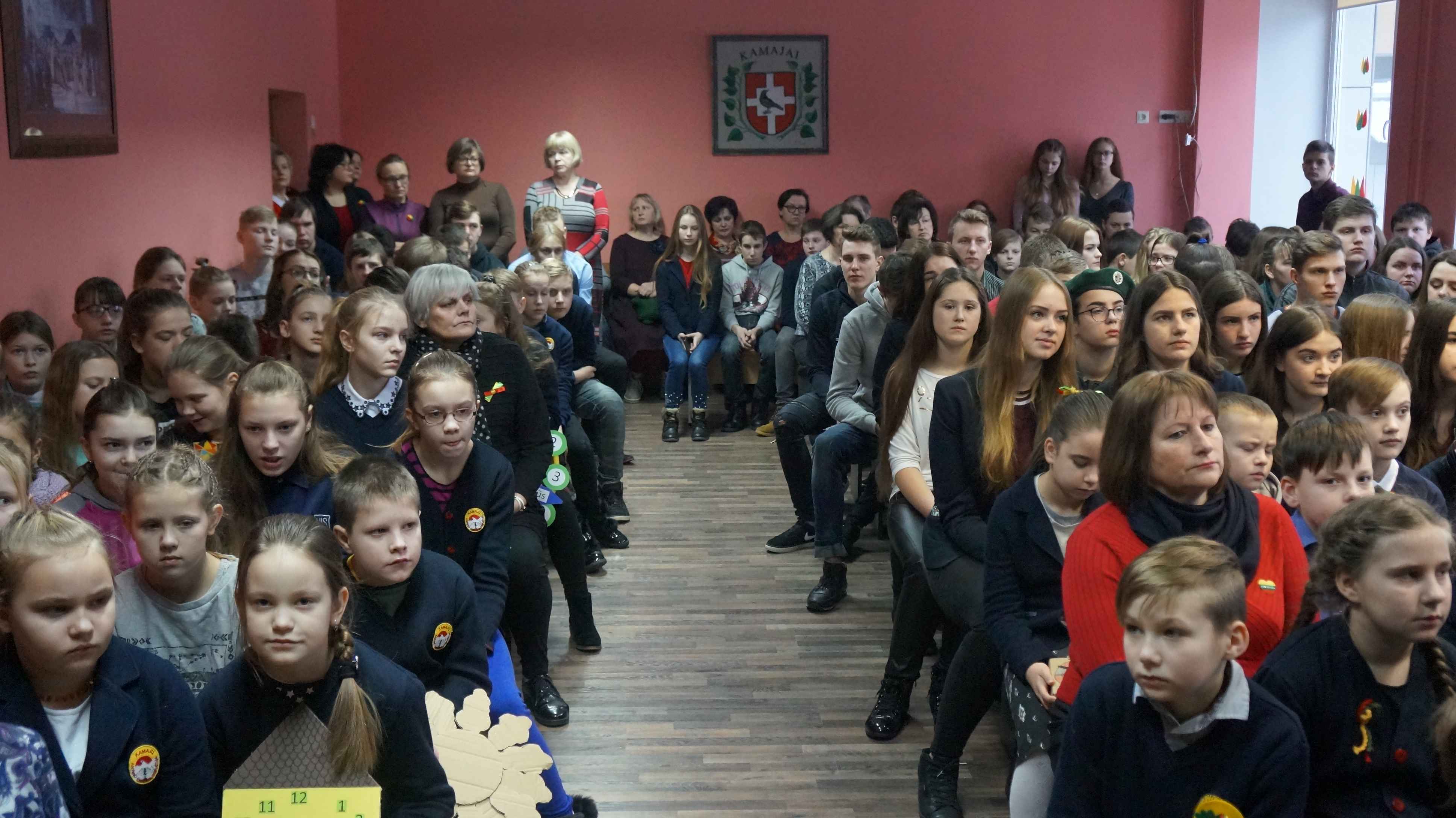 Vasario 15 dieną gimnazijoje vyko renginiai, skirti Vasario 16-ąjai. Rytą gimnazijos bendruomenė susirinko salėje, kur vyko minėjimas. Visiems sugiedojus himną, renginio vedėjai trumpai priminė Lietuvos Nepriklausomybės istoriją. Tradiciškai šioje šventėje buvo pristatytas ir naujas gimnazijos 2019 metų simbolis „Laikrodis“. Savo Laiko simbolį kūrė kiekviena klasė. Jį pristatė ir gimnazijos Veiklių tėvų klubas. Po renginio kiekvienos klasės atstovai su žvakutėmis vyko pagerbti žuvusiųjų atminimo prie partizanų memorialo Kamajuose.