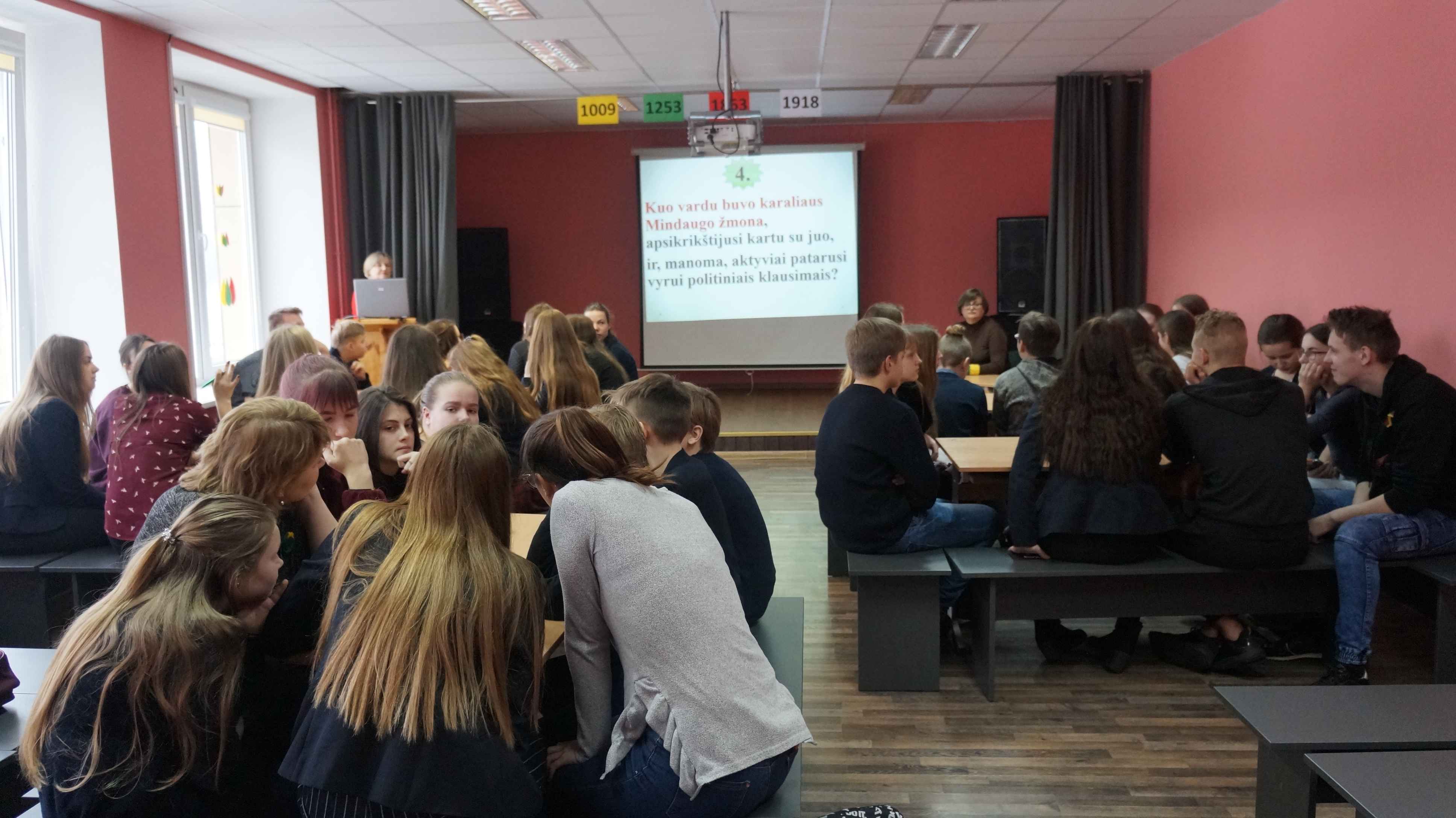 Po 4 pamokų vyko Protų mūšis. Susikovė penkios komandos, vadovaujamos 4g klasės gimnazisčių, o 5 ir 2g klasių komandai vadovavo mama Jolita Braukylienė. Lietuvos, Rokiškio rajono istorijos, kultūros geriausiais žinovais tapo „Juodojo rašiklio“ komanda, kurios kapitonė buvo Sandra Macijauskaitė. Kitoms komandoms truputį pritrūko žinių, o gal ir sėkmės, bet draugiškumo ir atradimų džiaugsmo tikrai buvo su kaupu.