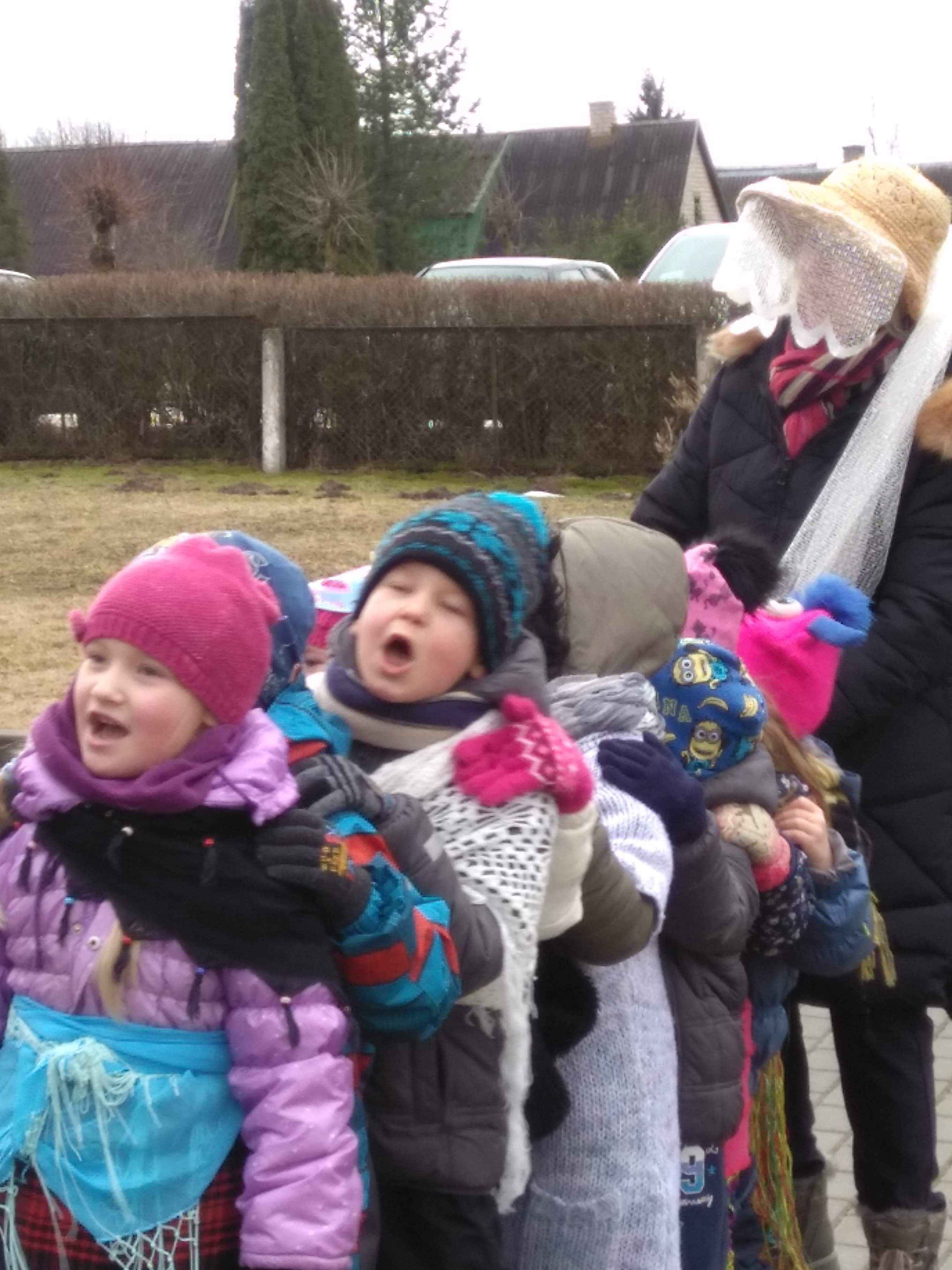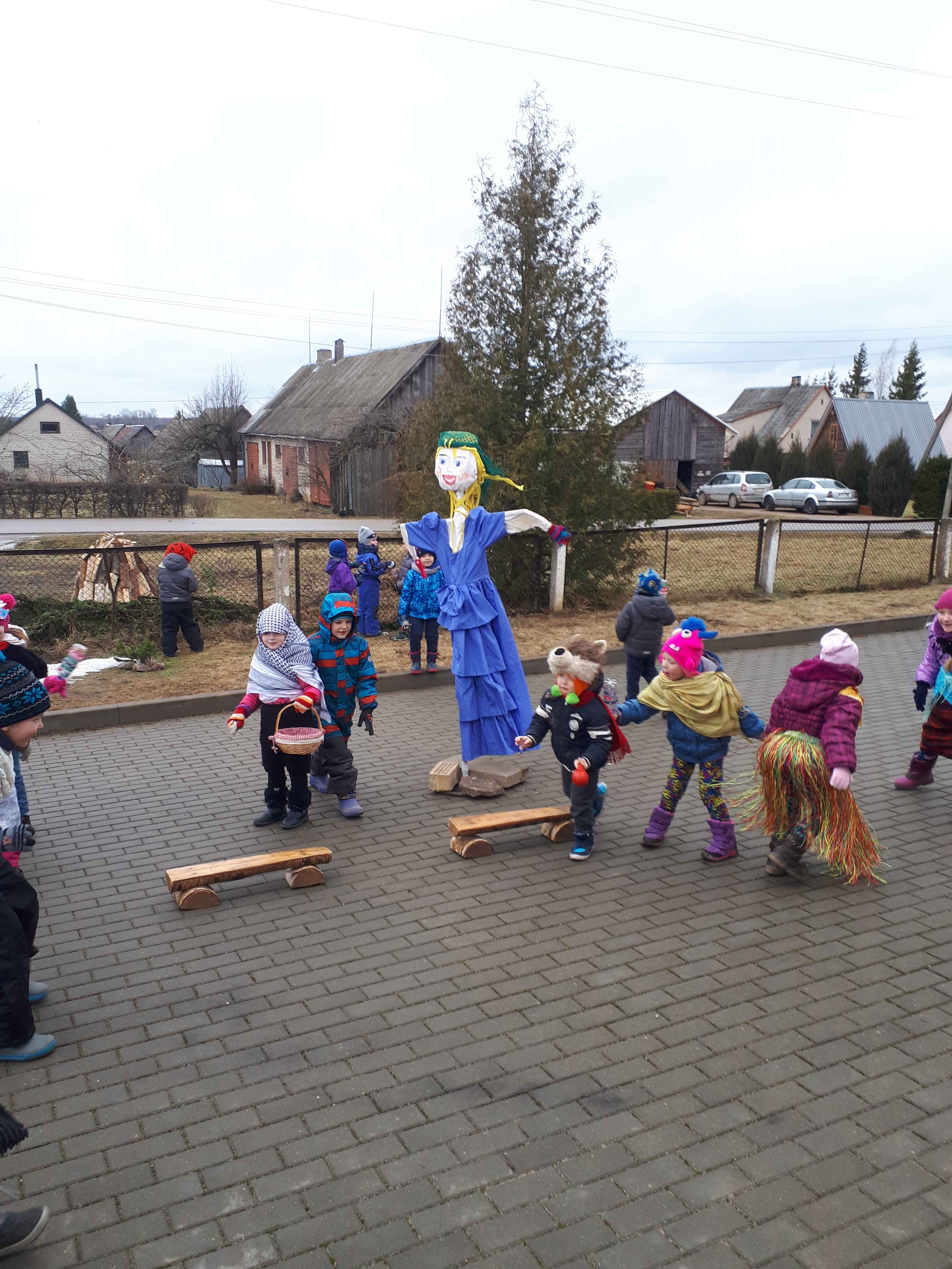 Vėl susirinkę kiemelyje tęsėme Užgavėnių linksmybes. Šokome įvairius lietuvių liaudies ratelius, dainavome, žaidėme žaidimus.