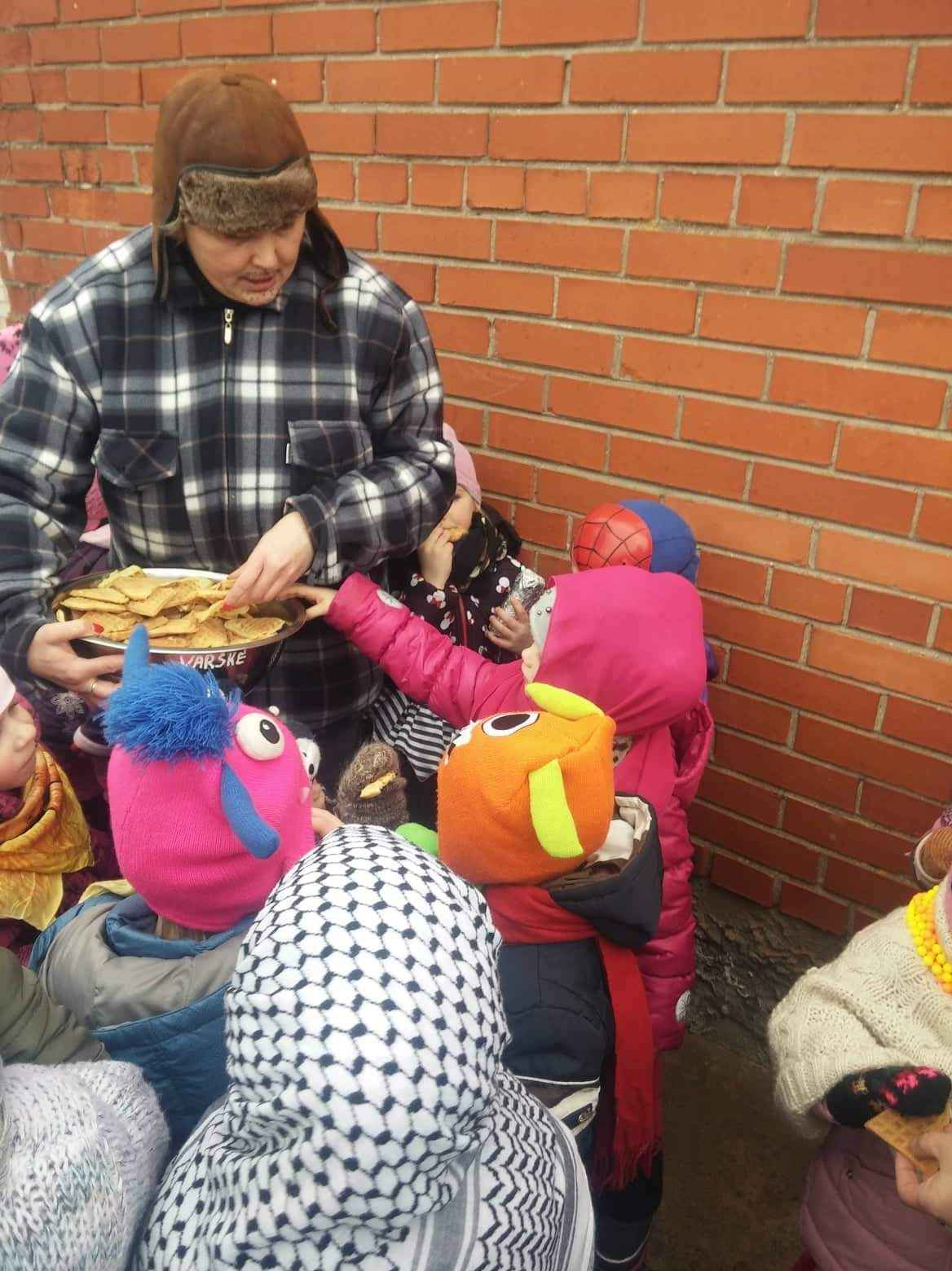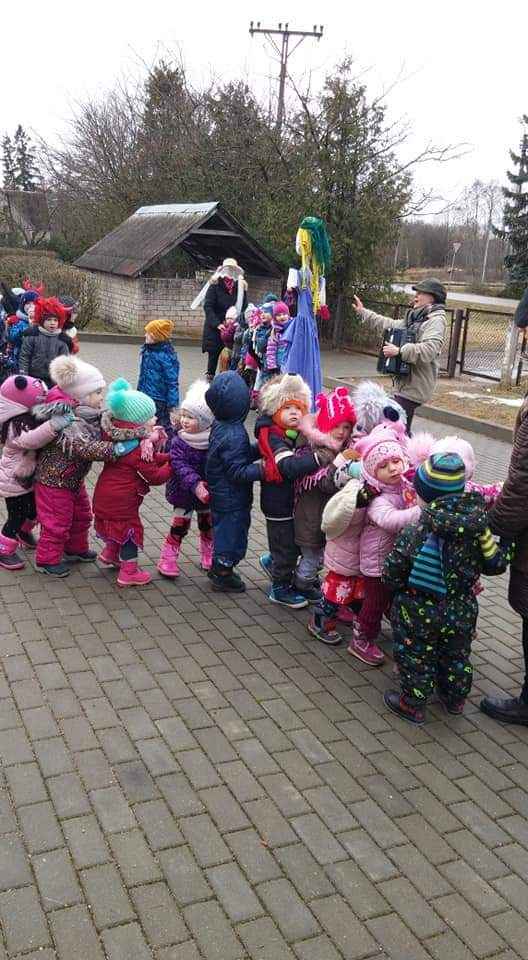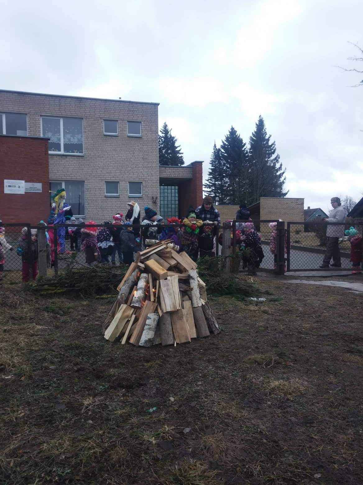 Nors pūtė stiprus vėjas, tačiau pavyko užkurti Užgavėnių laužą. Spragsint ugnelei visi vaišinomės virėjos Daivos iškeptais širdelių blynais. Palydėjom žiemą trankiai ir pavasarį sutikom garsiai. Buvo smagu ir skanu!