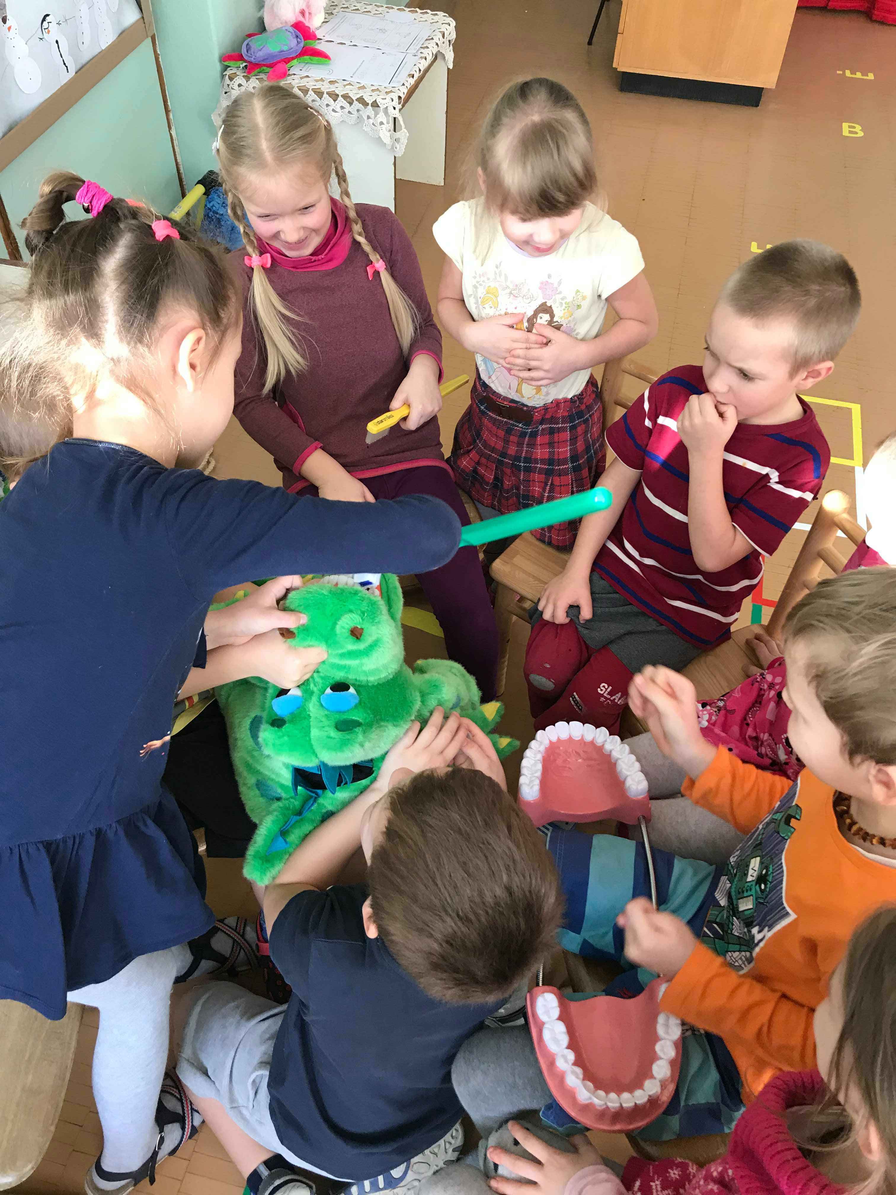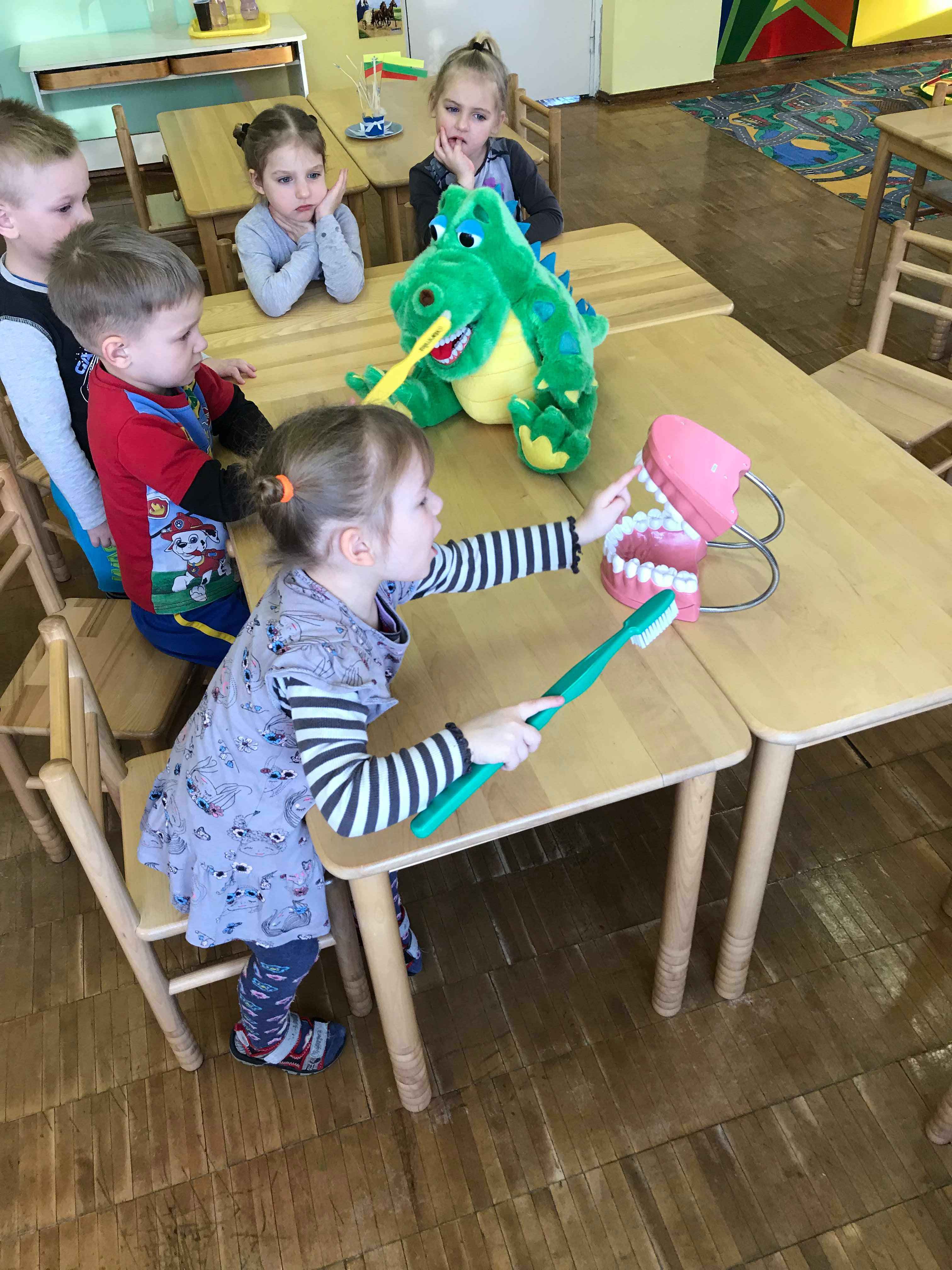 Š. m. vasario 19, 21, 28 dienomis Kamajų ikimokyklinio ugdymo skyriuje, ,,Boružiukų‘‘, ,,Kiškių” ir ,,Nykštukų” grupėse, vyko pamokėlės ,,Pažink savo dantukus ir juos saugok”. Pamokėlių metu vaikučiai sužinojo, kaip taisyklingai reikia valytis dantukus, ką valgyti ir ko nevalgyti, kad dantukai visada būtų sveiki, gražūs, nesugedę. Vaikučiai taip pat buvo mokomi ne tik teoriškai, bet ir praktiškai valyti žaisliukų ,,dantukus‘‘, o tuomet gavę dovanų dantų šepetėlius turėjo patys savo dantukus išsivalyti taisyklingai ir parodyti, kaip gerai viską išmoko.