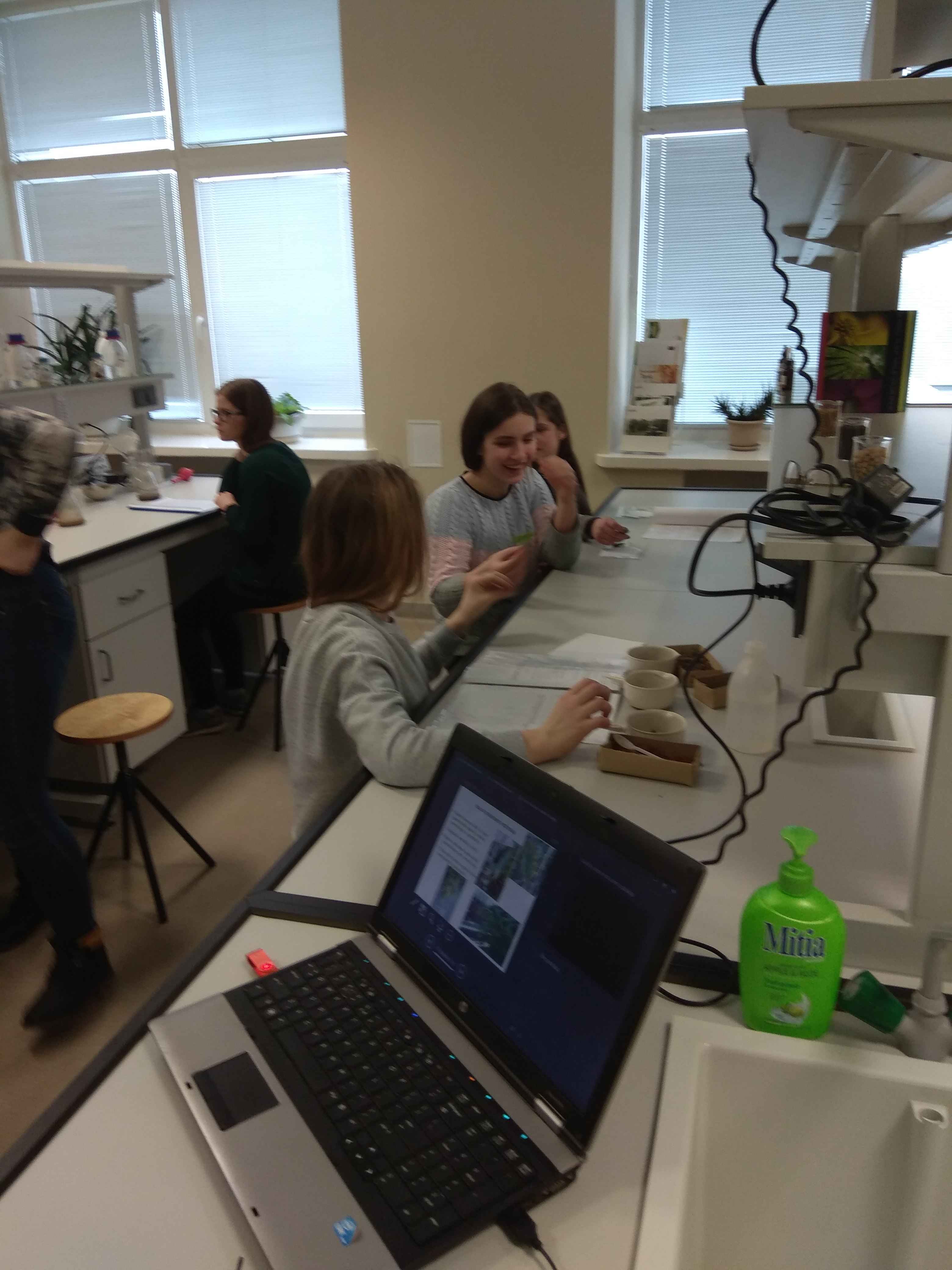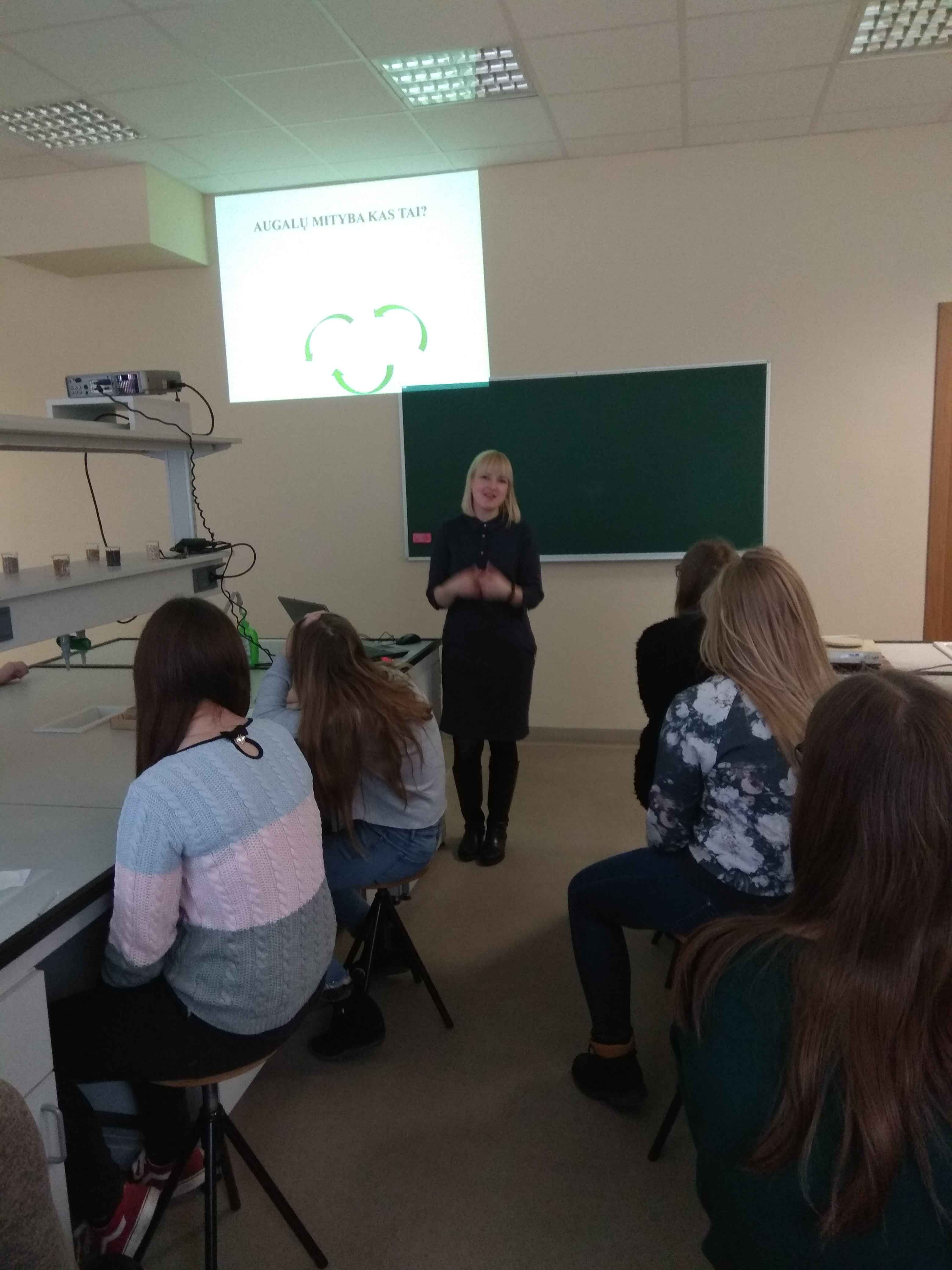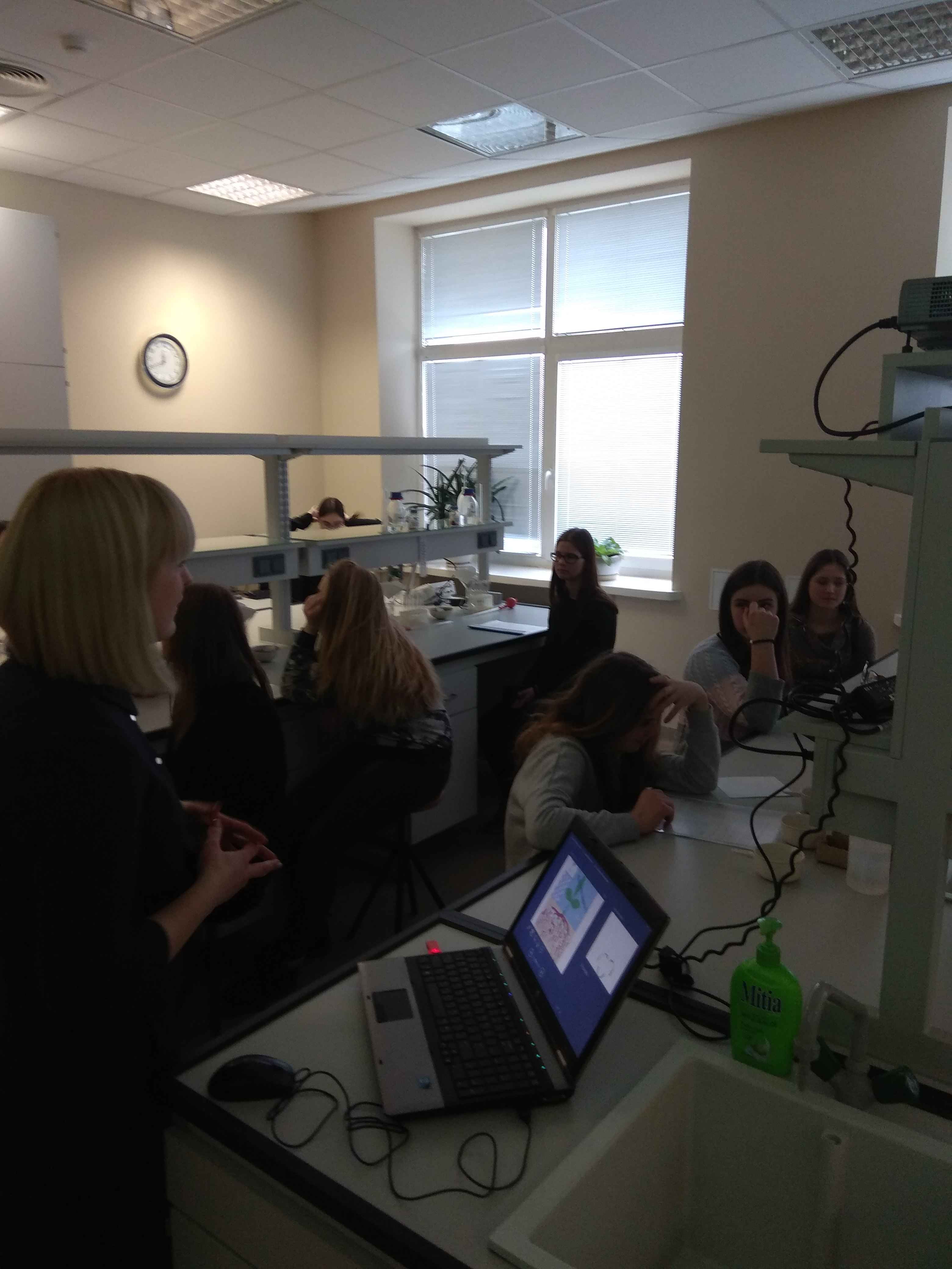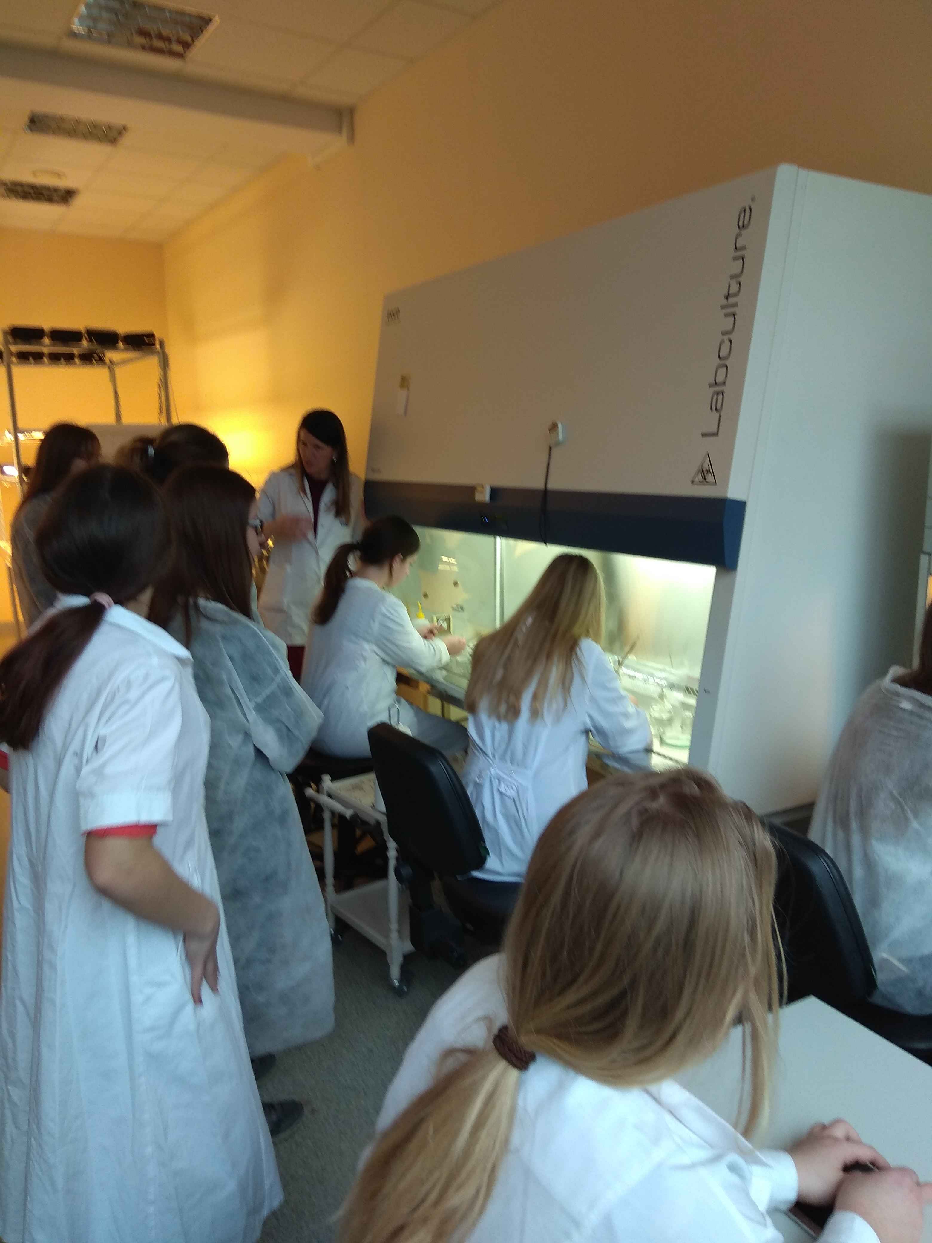 Kovo 4 d. grupė 8, 1bg, 3g klasių mokinių lankėsi Vytauto Didžiojo universiteto Žemės ūkio Akademijoje. Po pažinties su akademija mokiniai biologijos žinias gilino laboratorijose. Vyko paskaita-praktinis darbas „Kuo minta augalai?“ Užsiėmimą vedė buvusi mūsų mokyklos mokinė, šiuo metu doktorantė Vita Jurgelionytė – Smalstienė. Vėliau darbas tęsėsi agrobiotechnologijų laboratorijoje. Vadovaujant dr. Ramunei Masienei mokiniai atliko praktinį darbą „Augalinės ląstelės nuotykiai“. (Biotechnologija — tai integruotas gamtos ir technikos mokslų taikymas, kai naudojant organizmus, jų dalis, siekiama sukurti ar patobulinti ląsteles). Praktinio užsiėmimo metu sužinojome apie izoliuotų augalinių ląstelių pagrindinius augimo principus in vitro (lot.), t.y. dirbtinėmis sąlygomis.