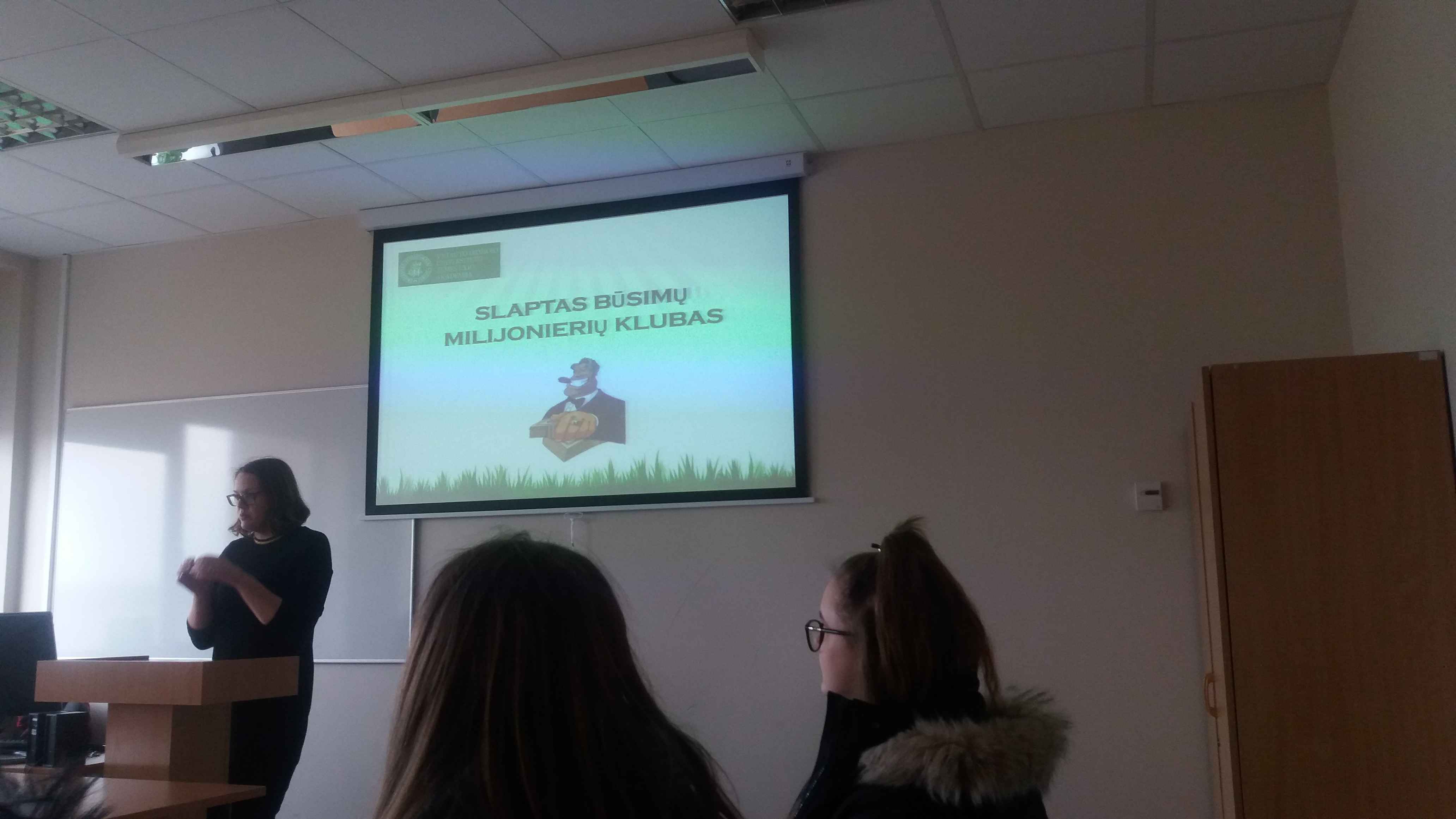 Verslo būrelio nariai kovo 13 dieną lankėsi Vytauto Didžiojo universiteto Žemės ūkio akademijoje. Čia jie klausėsi akademijos lektorių skaitomų paskaitų temomis „Logistikos verslo ateities tendencijos“, ,,Kriptovaliutos ir bitkoinai — kas tai?“, dalyvavo žaidime-viktorinoje „Ekonominių žinių ringas“. Mokiniai praturtino savo žinias ne tik teoriniais dalykais, bet ir susipažino su skirtingų verslų vystymo galimybėmis bei perspektyvomis. Buvo aptartos savybės, kuriomis turėtų pasižymėti žmogus, ketinantis būti verslininku.