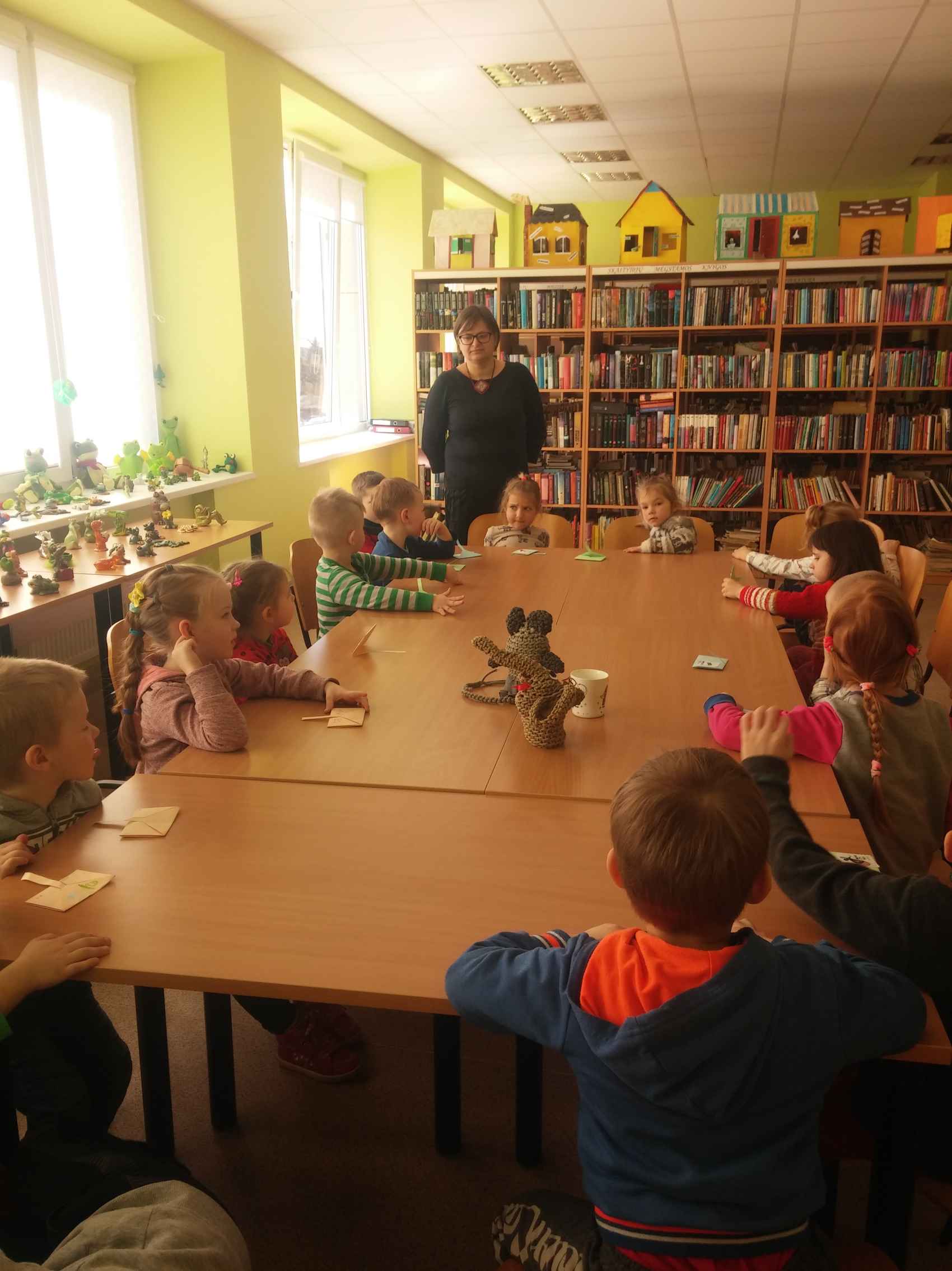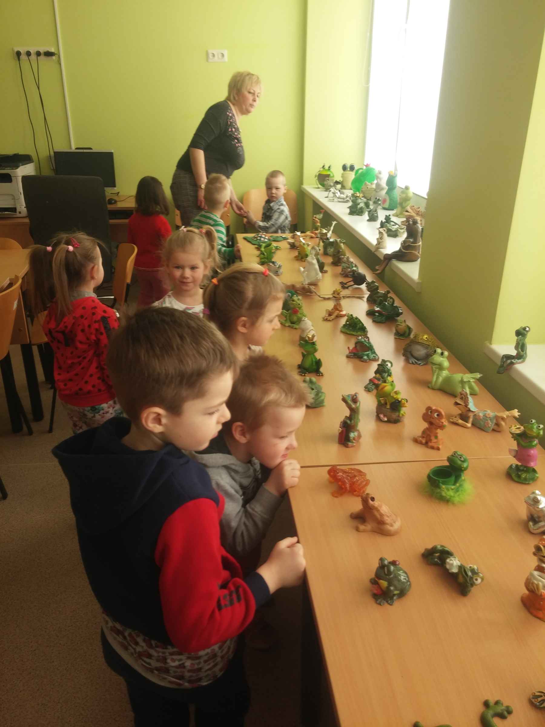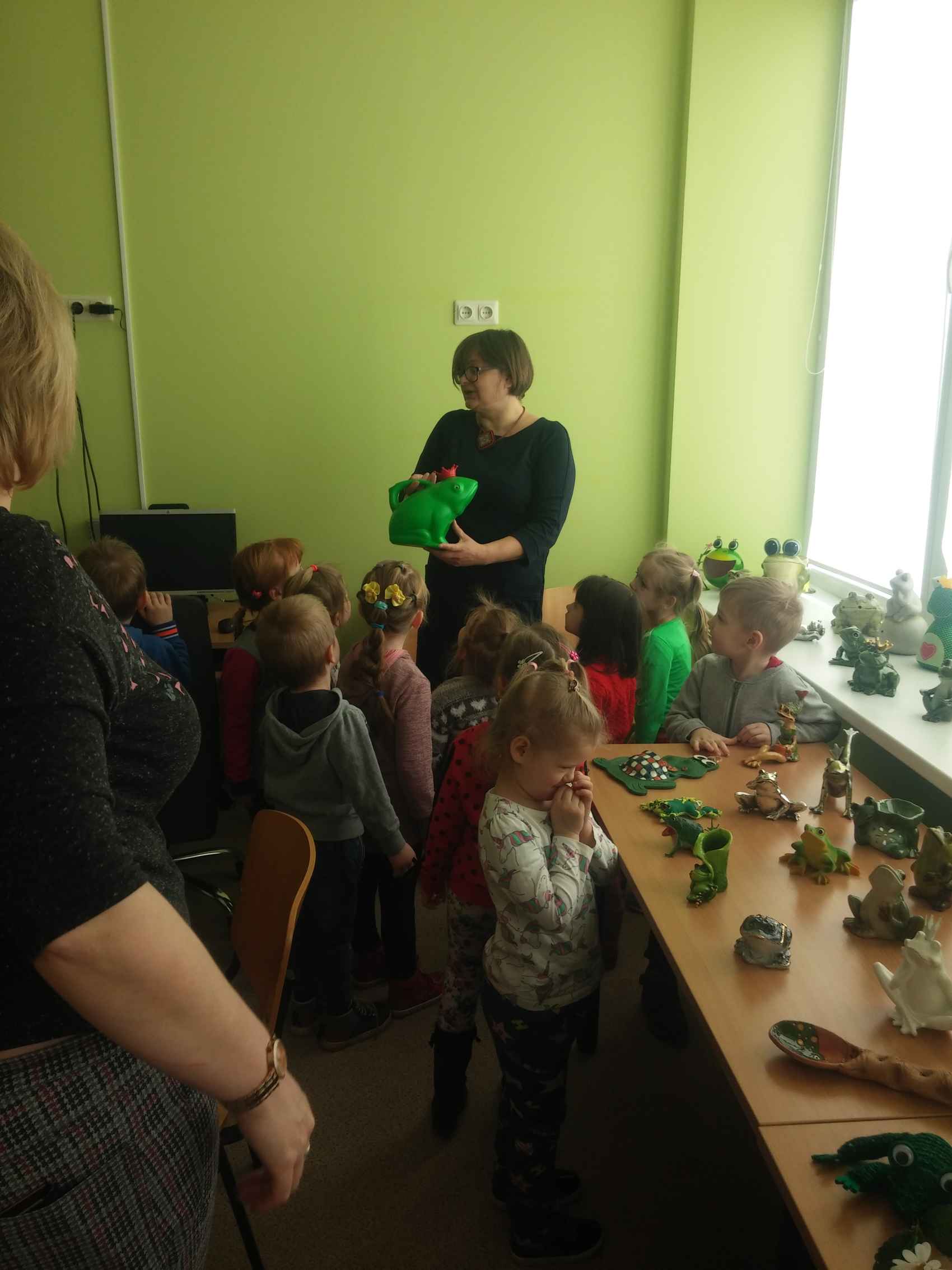 Su didžiuliu susidomėjimu vaikai apžiūrėjo bibliotekoje eksponuojamą varlyčių parodą. Apie keletą jų bibliotekininkė Jolanta išsamiai papasakojo bei skatino jas „prakalbinti“. Pro bibliotekos langą vaikai apžiūrėjo varlyčių „draugo“ gandro namučius.