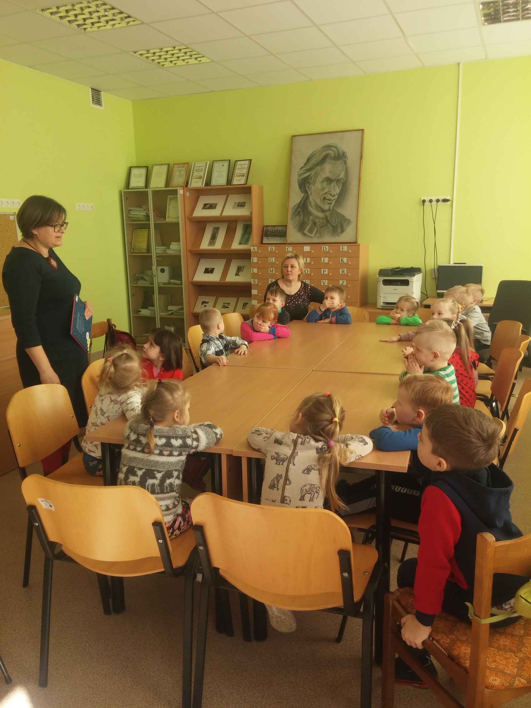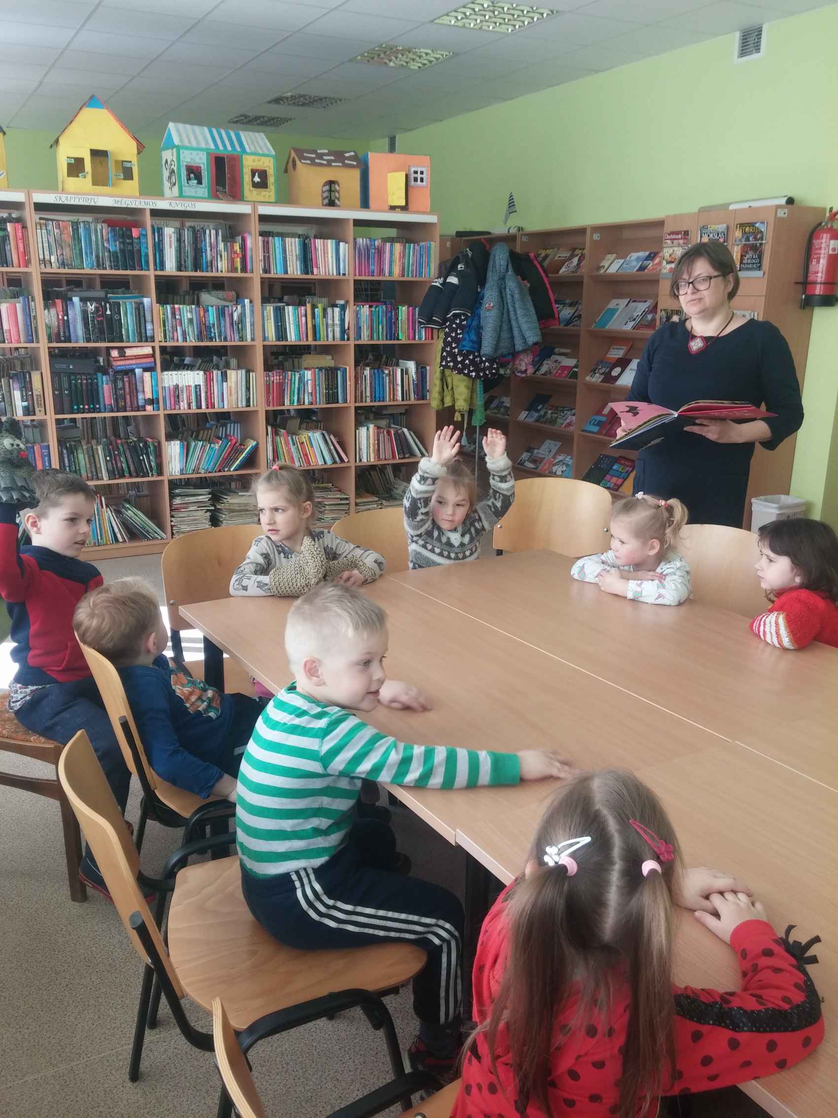Bibliotekininkė Jolanta vaikus supažindino su bibliotekos lankytojų taisyklėmis, knygelių išdavimo ir grąžinimo tvarka, su vaikais kalbėjosi apie tai, kaip reikia elgtis su knygelėmis bibliotekoje ir namuose. Vaikams buvo priminta, kad nešantis namo ar pas draugus būtina knygelę įsidėti į maišelį, kad knygelėse negalima piešti, dėti į jas kietų daiktų ar kitaip jas gadinti. Daugumai vaikų tai buvo pirma pažintis su biblioteka.
