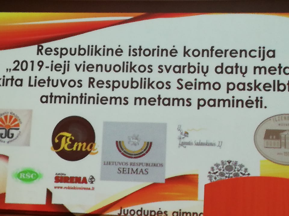 Joje dalyvavo ir mūsų gimnazistai Rimantė Mičelytė, Agnė Venslovaitė ir Justas Tervydis, kurie pristatė literatūrinę-muzikinę kompoziciją ,,Vaikščiojanti šviesa‘‘, skirtą J.Tumui-Vaižgantui. Būtent šiai iškiliai asmenybei skirti 2019-ieji. Be to, konferencijos dalyviai išvydo ir Justo sukurtą filmuką apie jo gimtinę — Salas.
