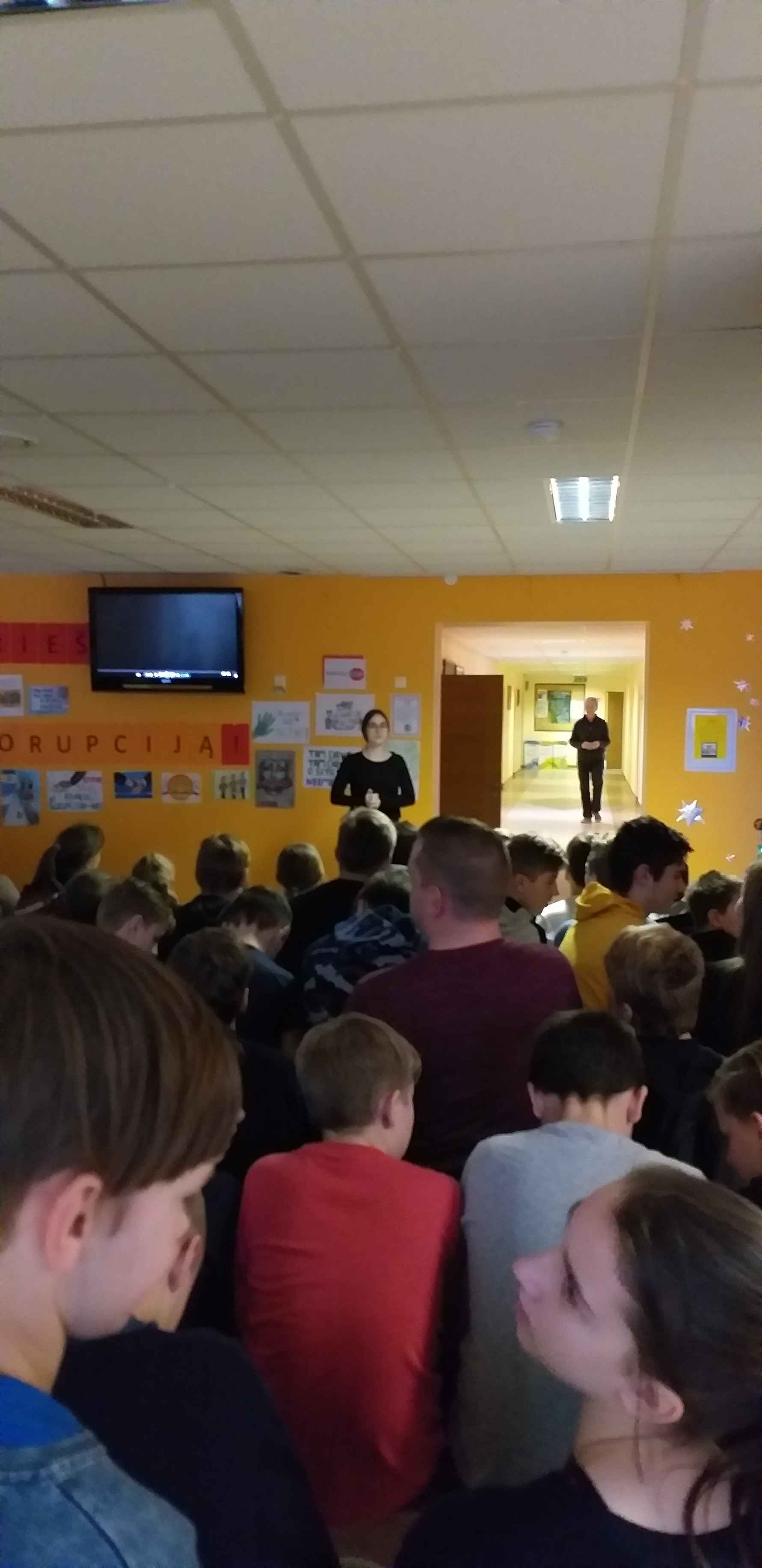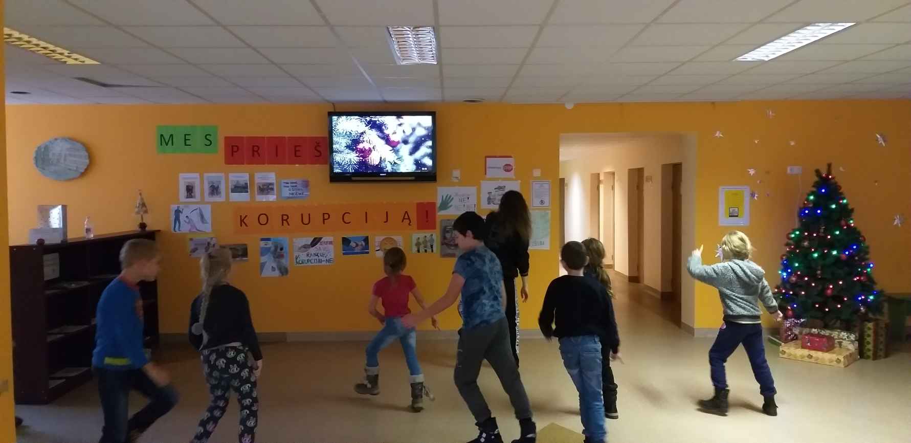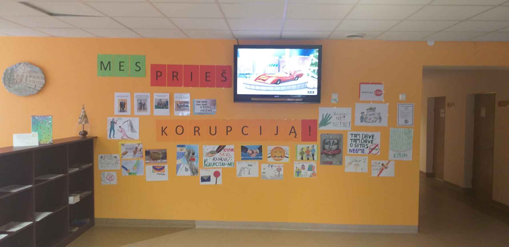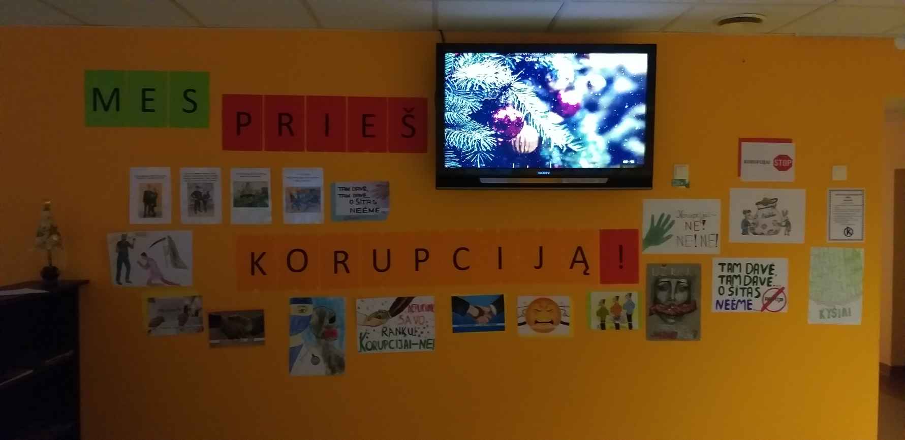 Klasių valandėlių metu mokiniai su auklėtojais aiškinosi, kas yra korupcija, kaip reikia su ja kovoti, piešė piešinius. Taip ant sienos atsirado piešinių stendas „Mes prieš korupciją“. Aktyviausi buvo pradinukai su mokytoja Danute Tymukiene — jų piešinėlių daugiausia. Aktyviosios pertraukos metu mokytoja Ieva Lapelytė su mokinukėmis šoko įvairius šokius. Dvyliktokai vaikinai Airidas Augulis ir Darius Mieliūnas sukūrė filmuką „Mes prieš…“, kuriame „vaidino“ ir mūsų gimnazijos mokytojai, mokiniai, administracijos atstovai. Buvo smagu…