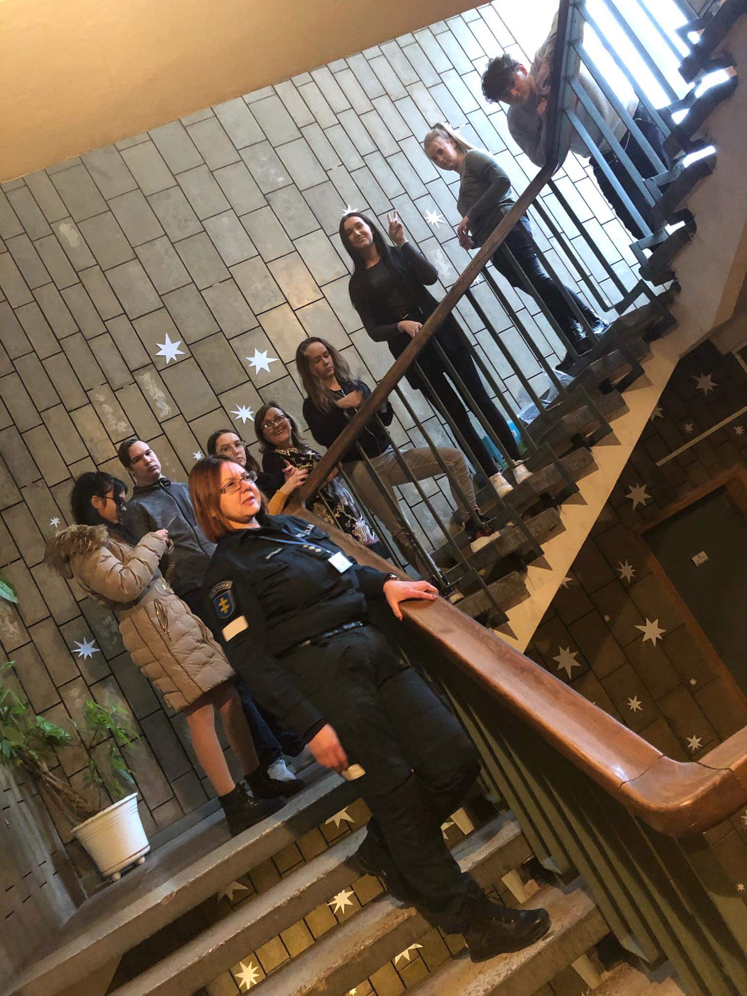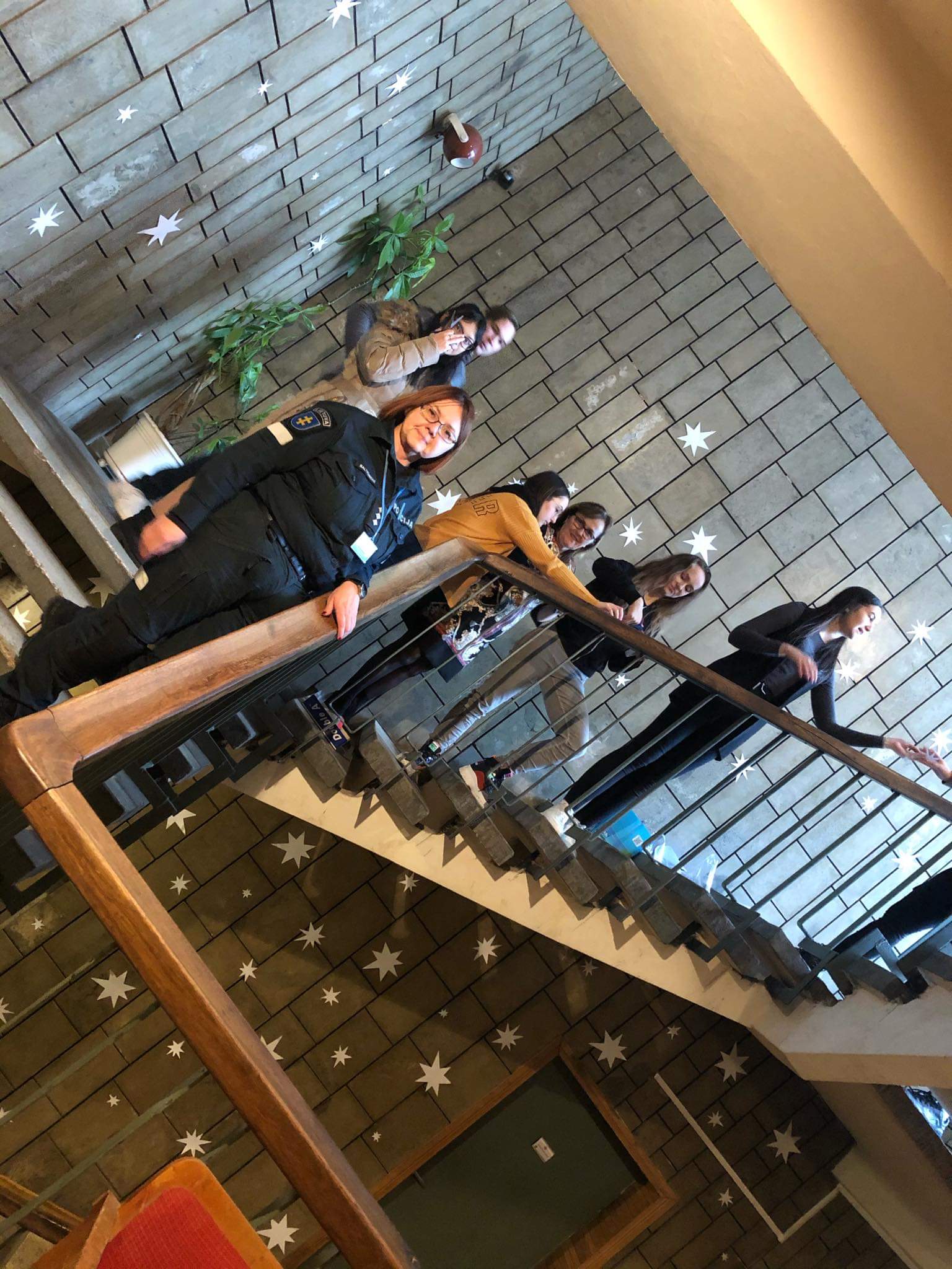 Buvome šiltai priimti, daug sužinojome apie policijos darbo ypatumus, o artėjančių švenčių proga papuošėme komisariato patalpas savo pagamintomis dekoracijomis. Tikimės ir toliau palaikyti šį glaudų ryšį.