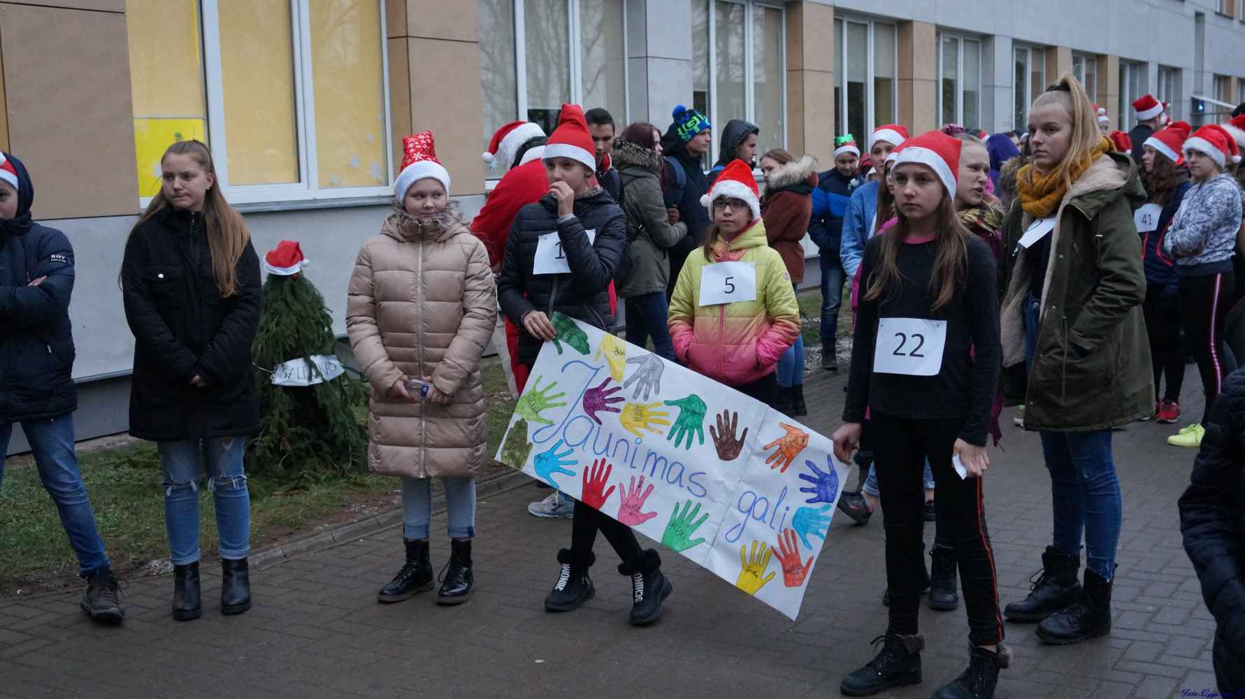 Šių metų gruodžio 12 d. mūsų gimnazijos 5-12 klasių mokiniai dalyvavo kalėdiniame bėgime ,,Žiemą šalta, bėgti šilta”. Išbandyti savo jėgas pasiryžo 100 dalyvių, kurie, sėkmingai įveikę 3 km nuotolį, galėjo išgerti šiltos arbatos ir pasivaišinti gardžiais sausainiais (už vaišes dėkojame Veiklių tėvų klubui).