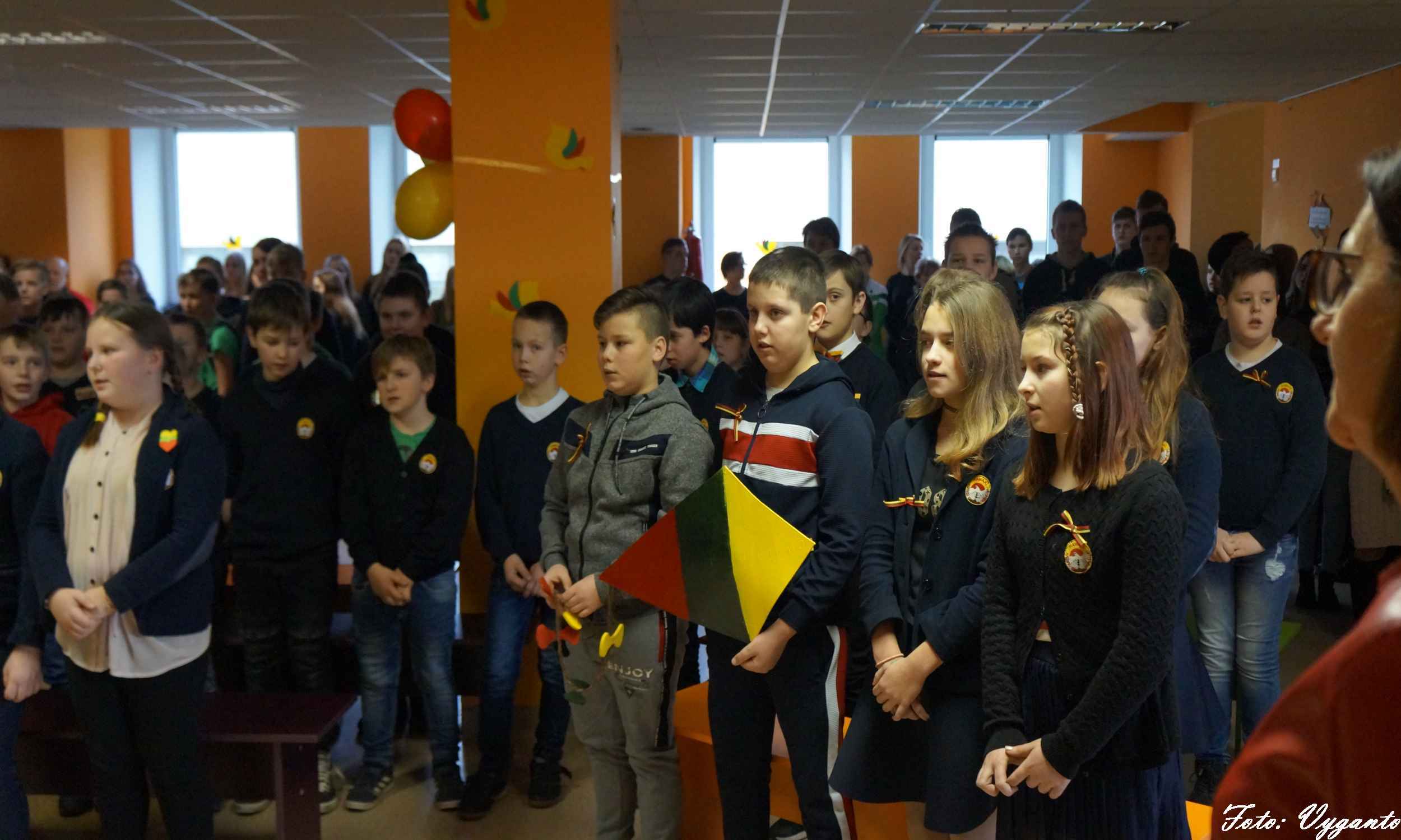 Vėliau visi kartu sudainavo dainą „Mano namai“, o 12.00 val. bibliotekoje 5-4g klasių atstovai rinkosi į respublikinę viktoriną „Lietuvos istorijos žinovas“.