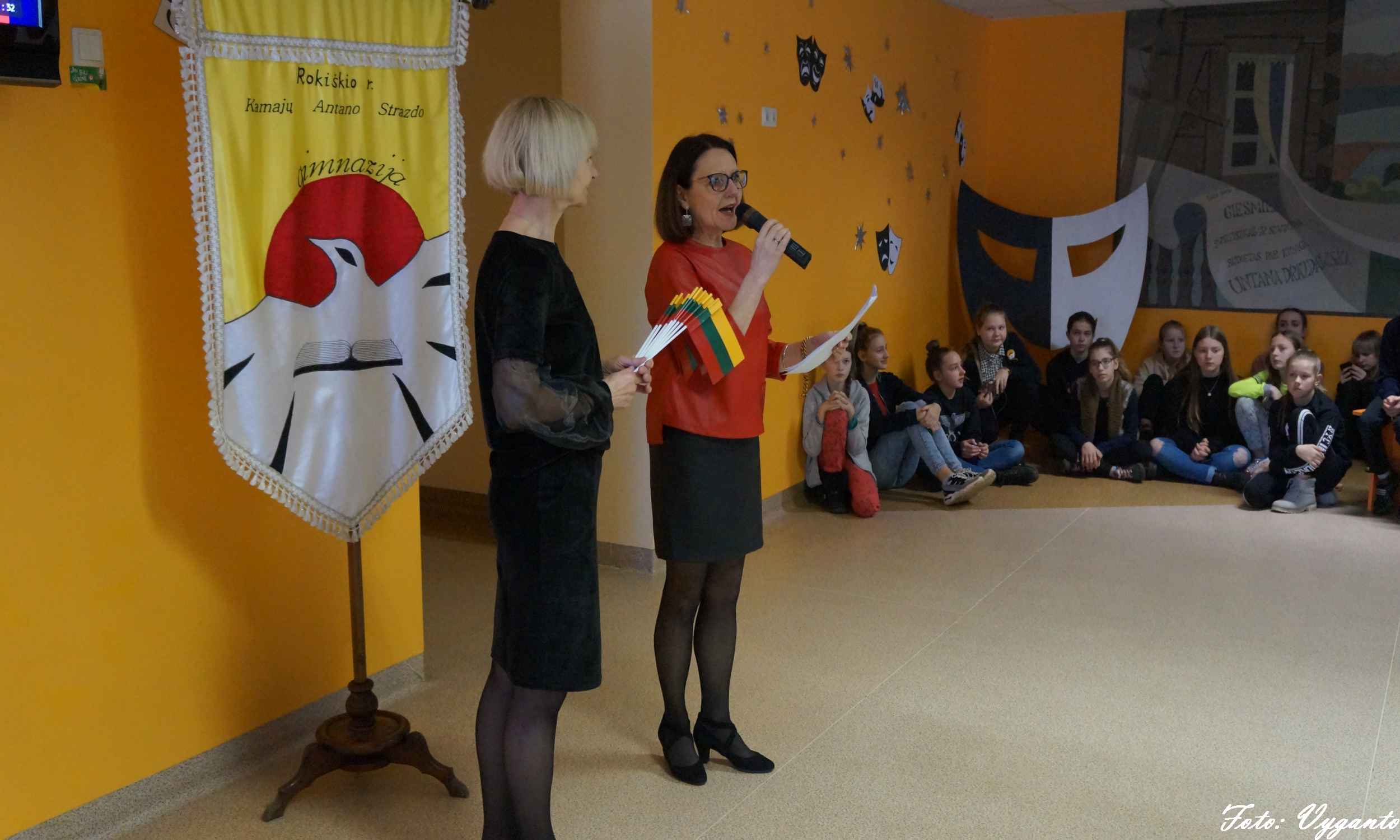 Šventinis gimnazijos bendruomenės rytmetis prasidėjo Tautiškos giesmės giedojimu. Mokiniams sveikinimo žodį tarė gimnazijos direktorė Loreta Grochauskienė. Buvo pagerbti mokiniai, I-ame pusmetyje pasiekę labai gerų mokymosi rezultatų, nepraleidę pamokų. Jiems įteiktos simbolinės trispalvės vėliavėlės.