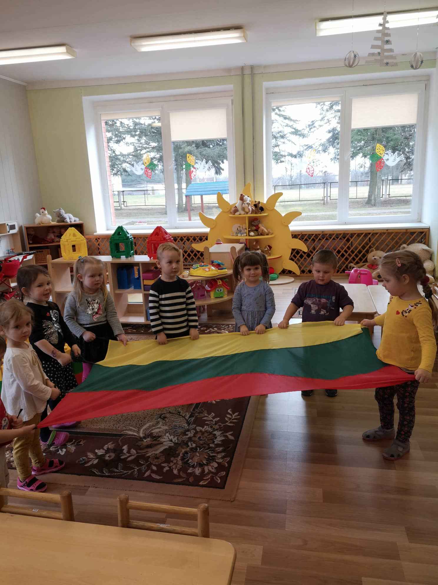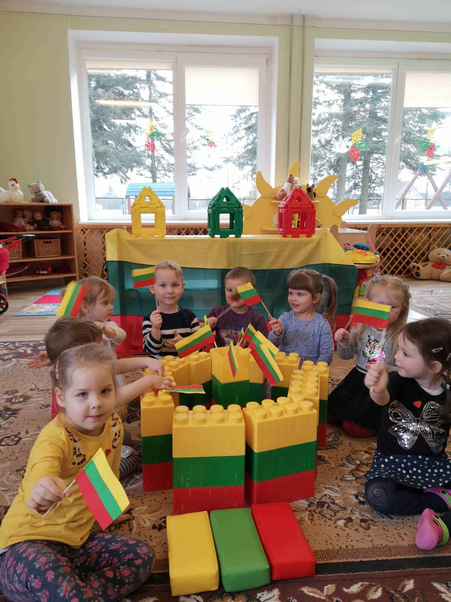 Vasario 16-osios proga „Kiškučių“ grupė nušvito geltona, žalia ir raudona spalvomis. Vaikai džiaugėsi Lietuvos trispalve, statė bokštą, klausėsi dainelių apie tėviškėlę.