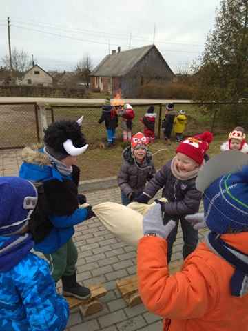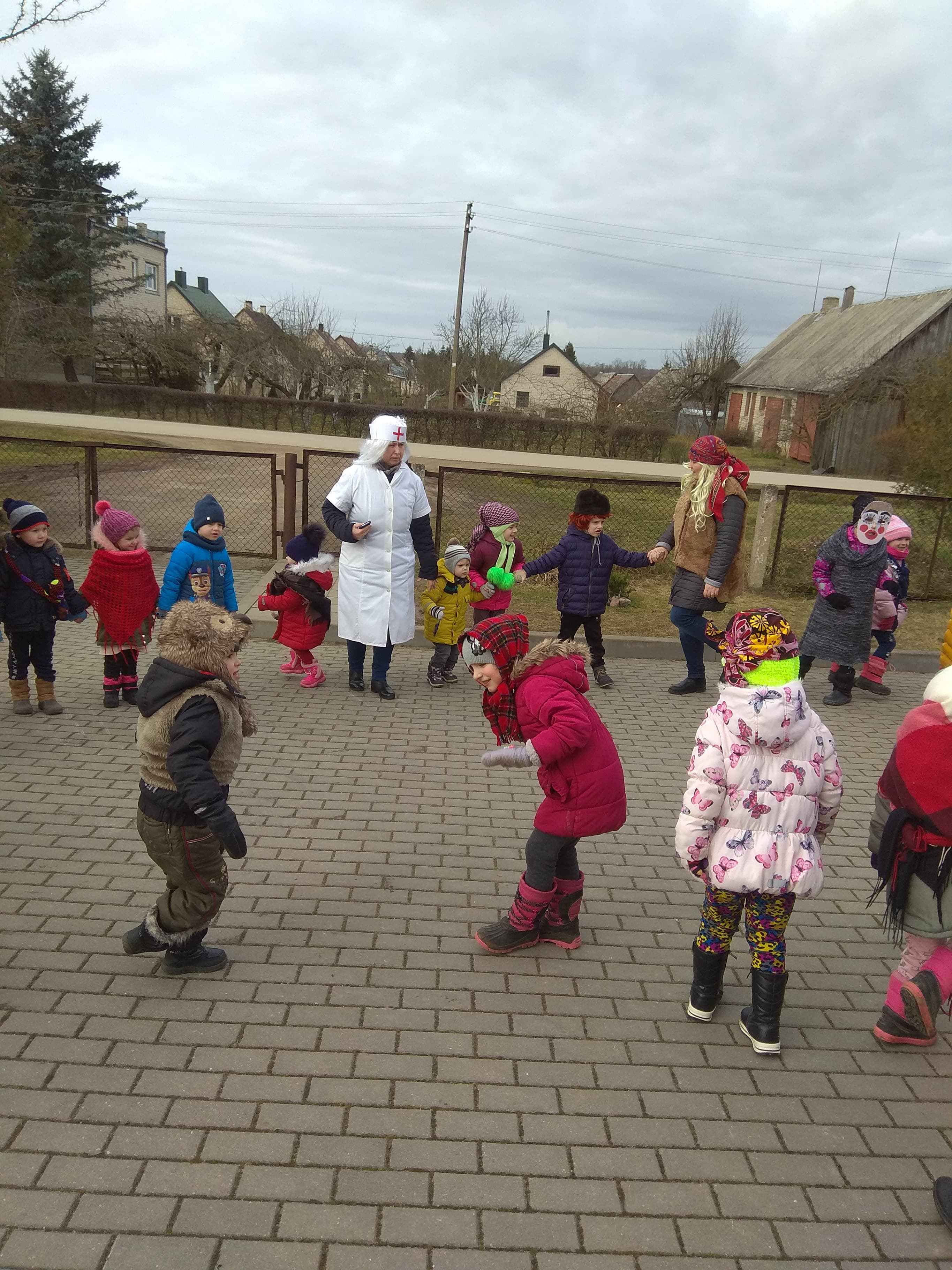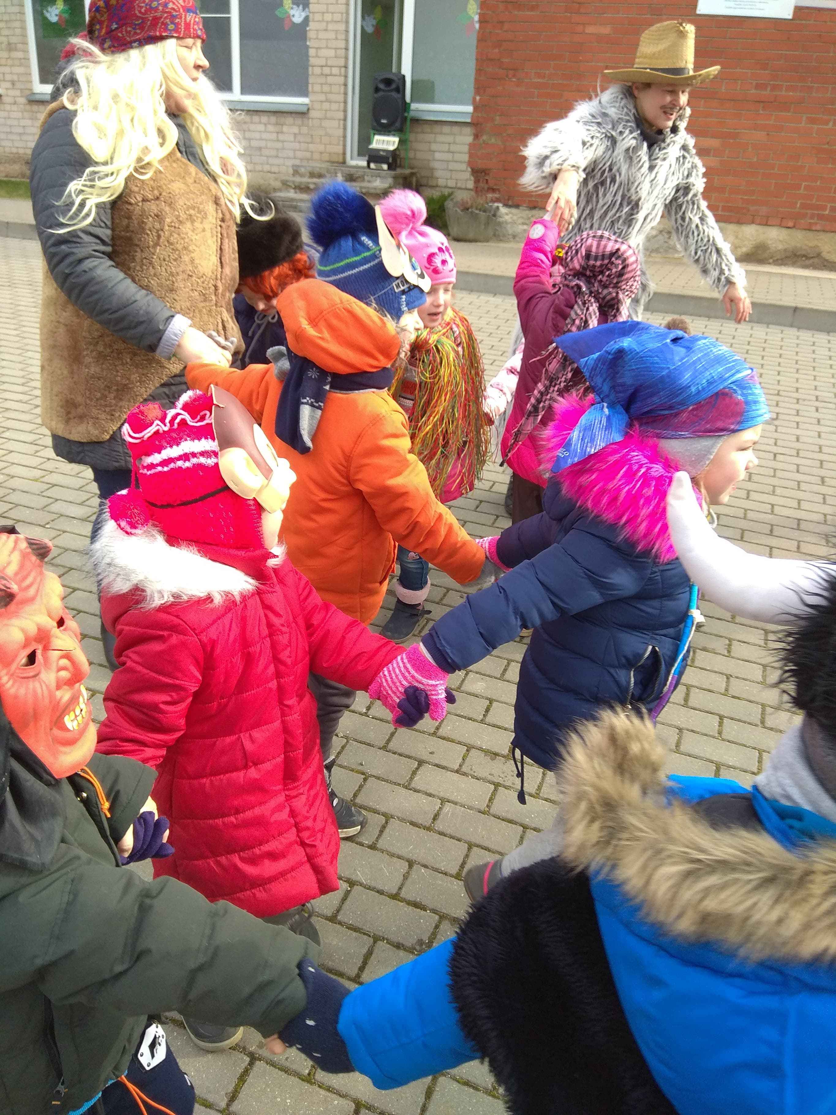 Ši diena ikimokyklinio ugdymo skyriuje buvo išskirtinai linksma ir triukšminga. Persirengę velniais, čigonais, ožiais ir kitokiais šventės personažais, šventės dalyviai žadino pavasarį, suko persirengėlių ratelius, šoko ir dainavo, stebėjo ir dalyvavo Lašininio ir Kanapinio kovoje, suposi, vaišinosi trispalviais blynais, džiaugėsi Užgavėnių laužu.