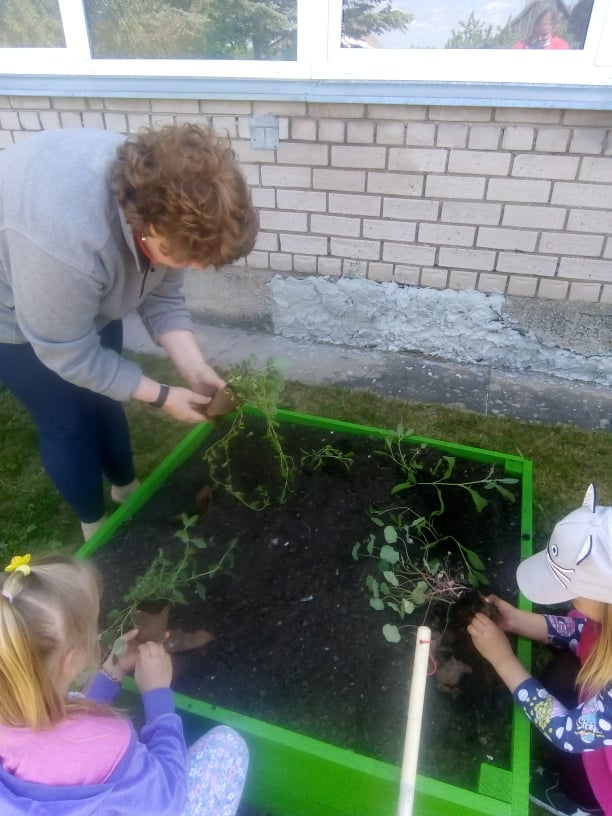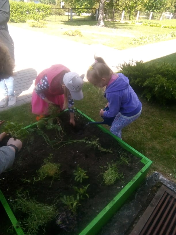 Po šventės auklėtoja Jolita pakvietė vaikus pasodinti „Žaliosios palangės“ augalus į lauko lysves. Vaikai sodino, laistė ir pasižadėjo rūpintis jų priežiūra.