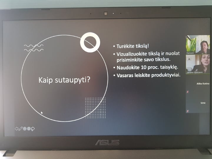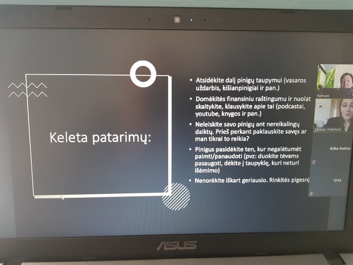 Ketvirtadienį 1g ir 2g mokiniai bei šių klasių vadovės Genovaitė Pavilonienė ir Ramunė Glinskienė turėjo puikią progą dalyvauti susitikime su VDU kultūros paveldo ir turizmo fakulteto studente Monika Nakaite. Monika kalbėjo apie finansinį raštingumą, apie tai, kaip geriau tvarkyti savo pinigus, skatino mokinius aktyviai įsitraukti į įvairias veiklas, ugdytis gebėjimą mokytis. Dalyvaudama įvairių organizacijų veiklose ji apkeliavo daugiau nei 30 šalių. Susitikimo metu Monika pateikė nemažai patarimų, kaip sutaupyti pinigų kelionei, kaip pigiai keliauti.
