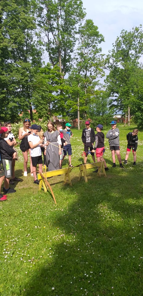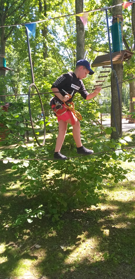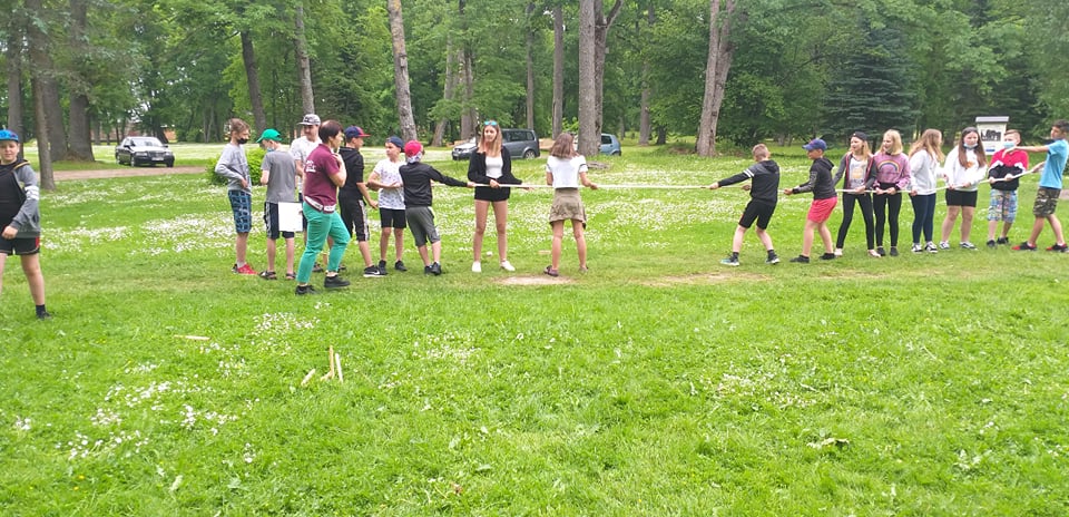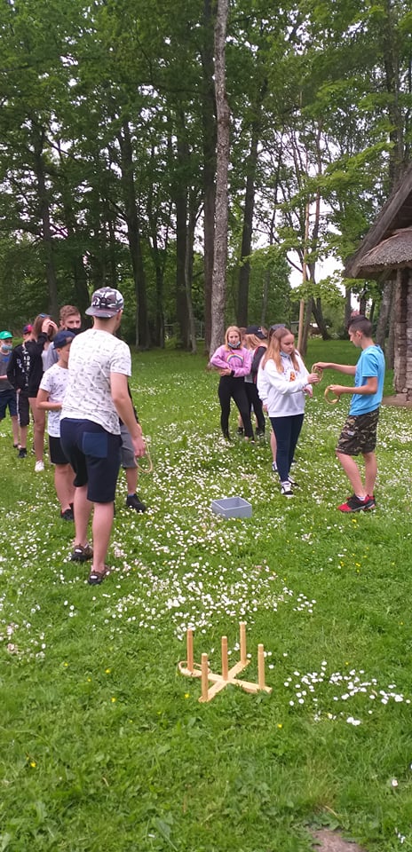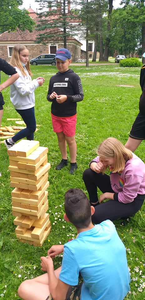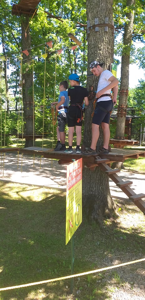 Stebėjome danielius, nes jų ėdžios įrengtos netoli vartelių, jie drąsiai čia ateina ir ėda, visai nesibaido muziejaus lankytojų. Pabuvojome ir Salų dvare: apžiūrėjome atnaujintus dvaro apartamentus, grožėjomės tautodailės parodomis, parko puošmenomis — alpakomis, stručiais. Kabrioletu važiavome į Birutės Dapkienės ūkį, kur kiekvienas išmėgino savo jėgas ir drąsą jodinėdami arkliukais. Patyrę tiek įspūdžių pramogavome prie Dviragio ežero – maudėmės, žaidėme tinklinį. O kelionė į Raubonių parką tikrai įspūdinga — apžiūrėjome dinozaurų ir zoo parkus, dalyvavome įvairiuose atrakcionuose, šaudymo varžybose, išbandėme jėgas Tarzanų take. Puikiai praleidome ir paskutinę stovyklos dieną Batutų parke prie Rokiškio ežero. Išbandėme jėgas, sumanumą įveikdami sunkias užduotis, padėdami komandos nariams. Gera nuotaika, teigiamos emocijos — puikus laisvalaikio palydovas.