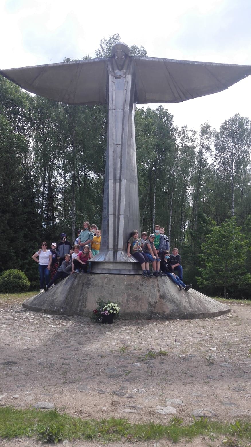 Vėliau mokiniai nuvyko į Panemunio miestelį prie paminklo partizanams „Angelas“ ir malda pagerbė laisvės kovotojus.