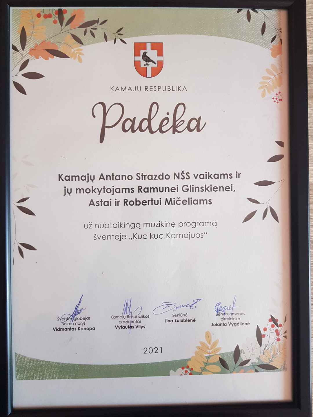 Šventinės akimirkos iš Rokiškio r. Kamajų Antano Strazdo gimnazijos NŠS estetikos, dainavimo studijų bei kapelos „Strazdukai“ mokinių pasirodymų.