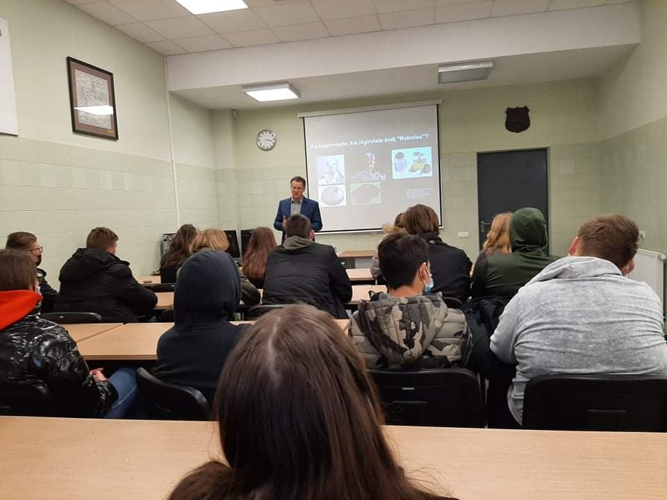 Pirmo susitikimo metu mokiniai klausėsi paskaitų apie statybines medžiagas, apie temperatūros išmatavimo būdus, apie naujausias technologijas žemės ūkyje ir apie tai, kokios yra galimybės studijuoti inžineriją VDU Žemės ūkio akademijoje.