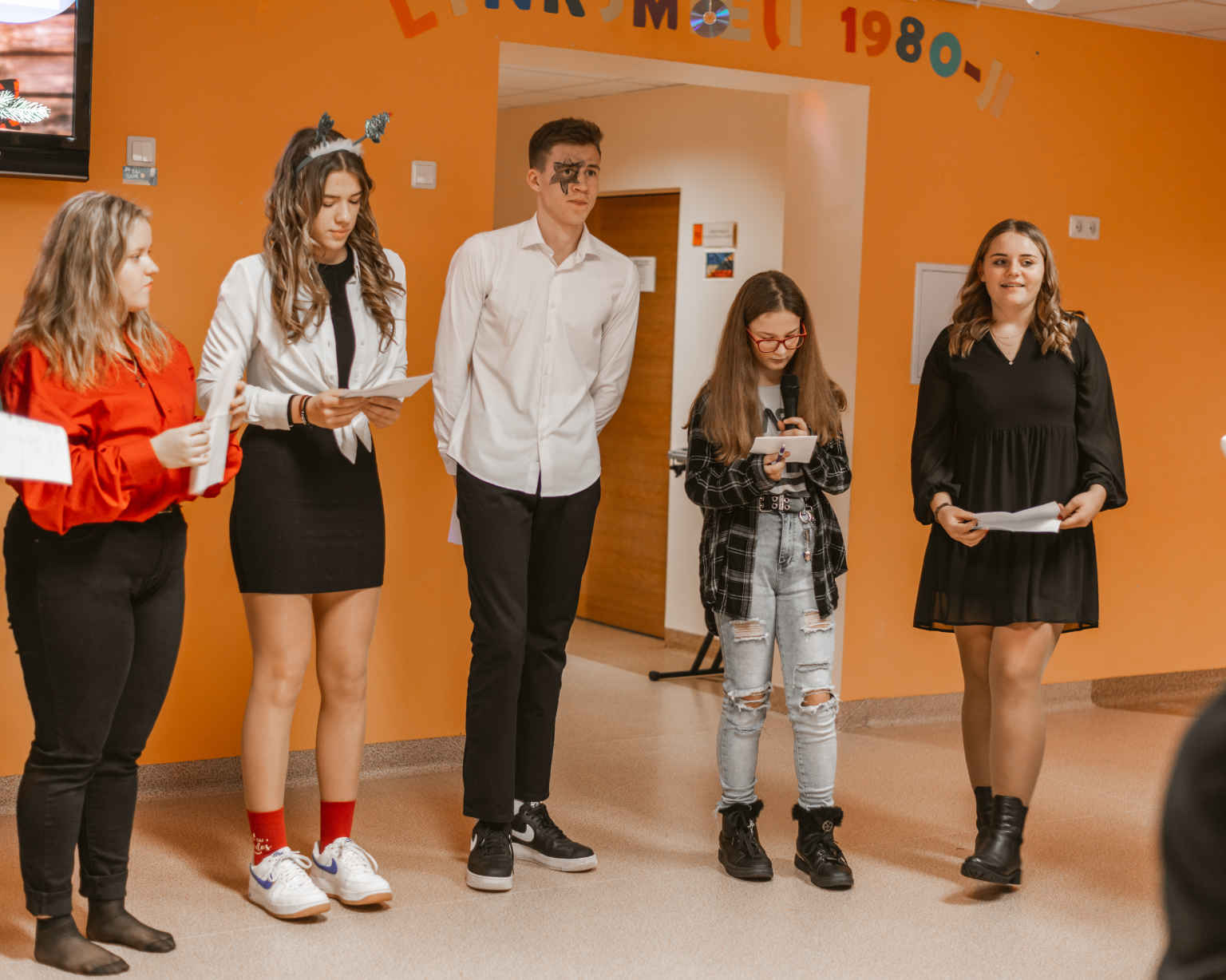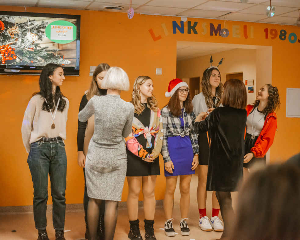 Gruodžio 23 dieną, kaip ir kiekvienais metais, mokykloje vyko tradicinis kalėdinis karnavalas. Šių metų tema mus nukėlė į ,,LINKSMUOSIUS 1980-uosius”.