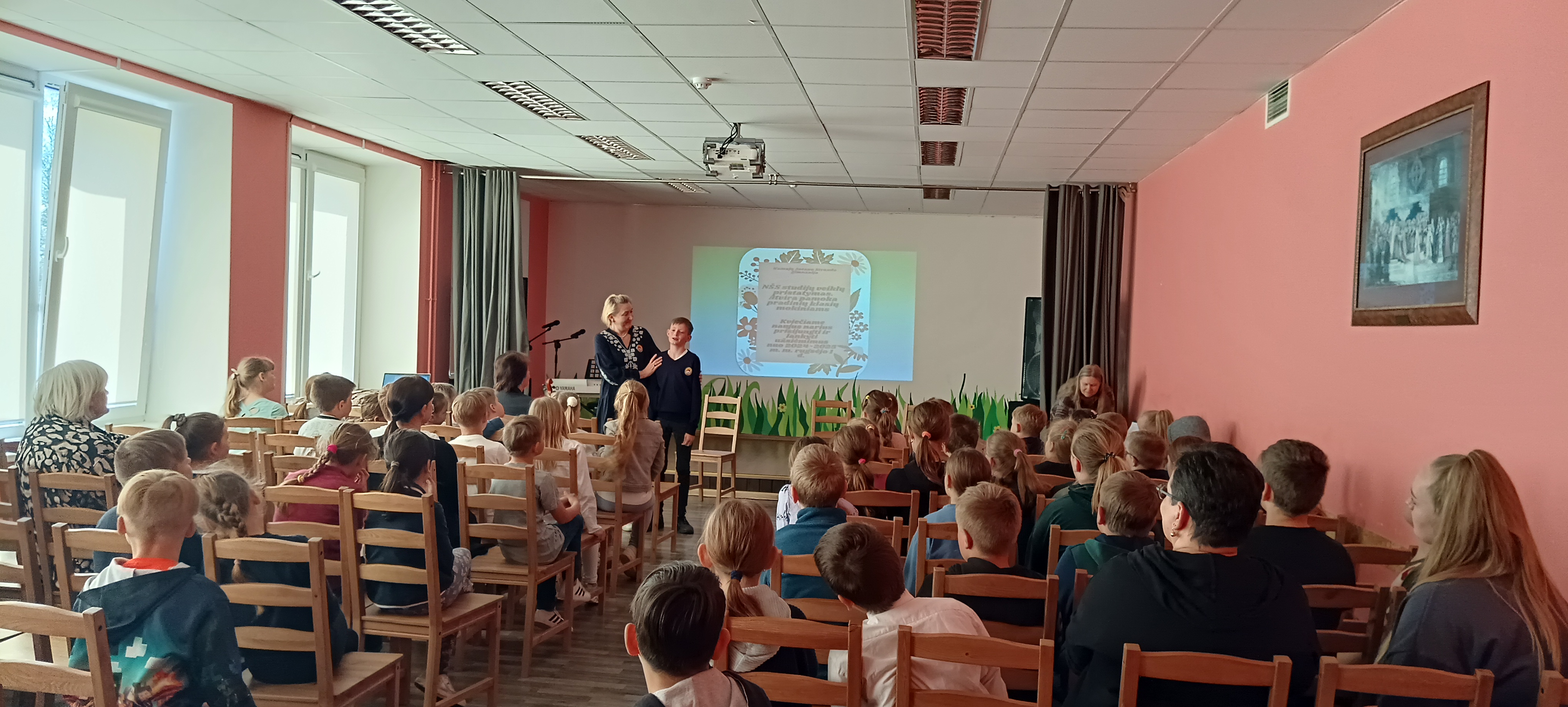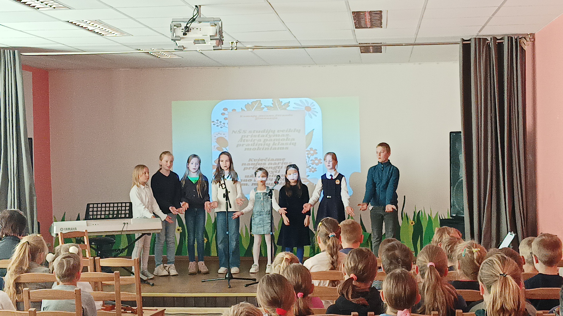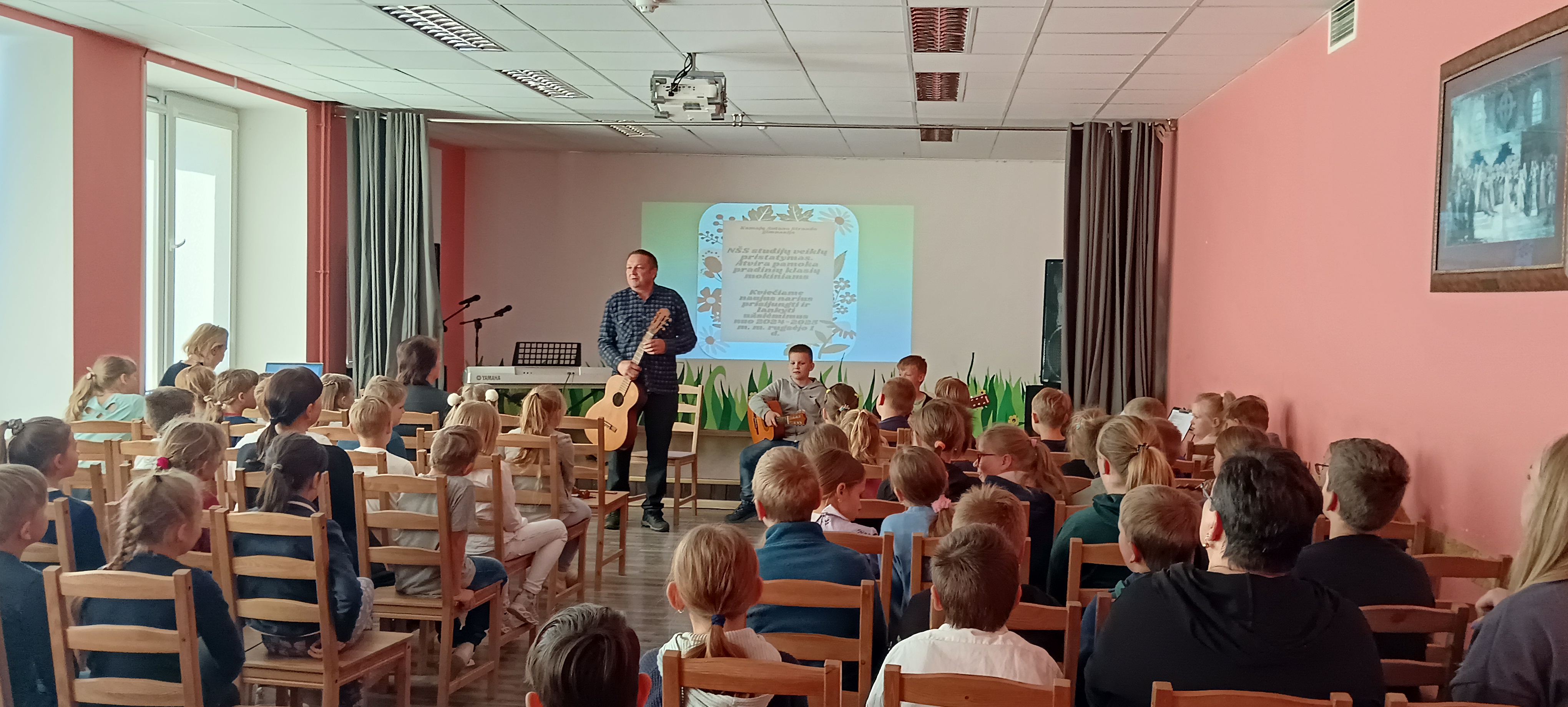 Gegužės 7 d. į Mažąją salę susirinkę gimnazijos 1-4 klasių mokiniai turėjo galimybę išvysti ir išgirsti pasirodančius ir koncertuojančius savo bendraamžius, lankančius neformaliojo švietimo skyrių. NŠS meninių studijų užsiėmimų metu mokiniai turi puikią progą kurti, patirti, pajausti, išmokti, improvizuoti ir save realizuoti meninių priemonių ir veiklų pagalba.