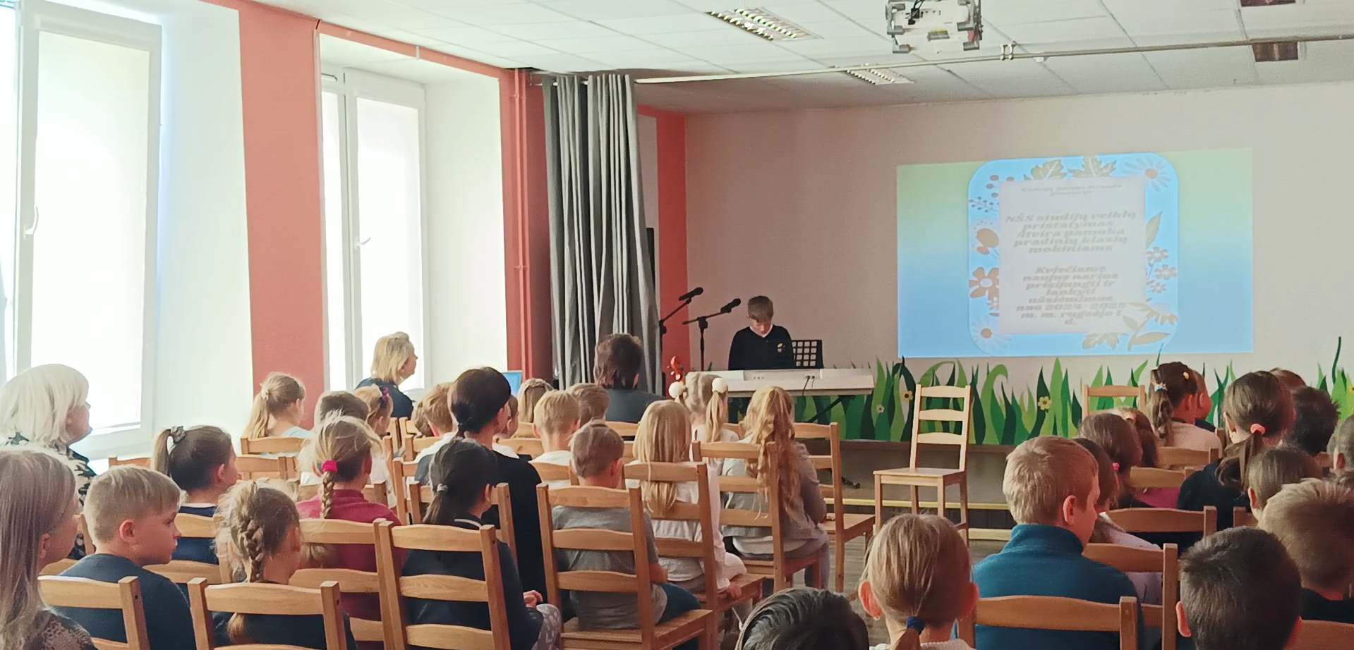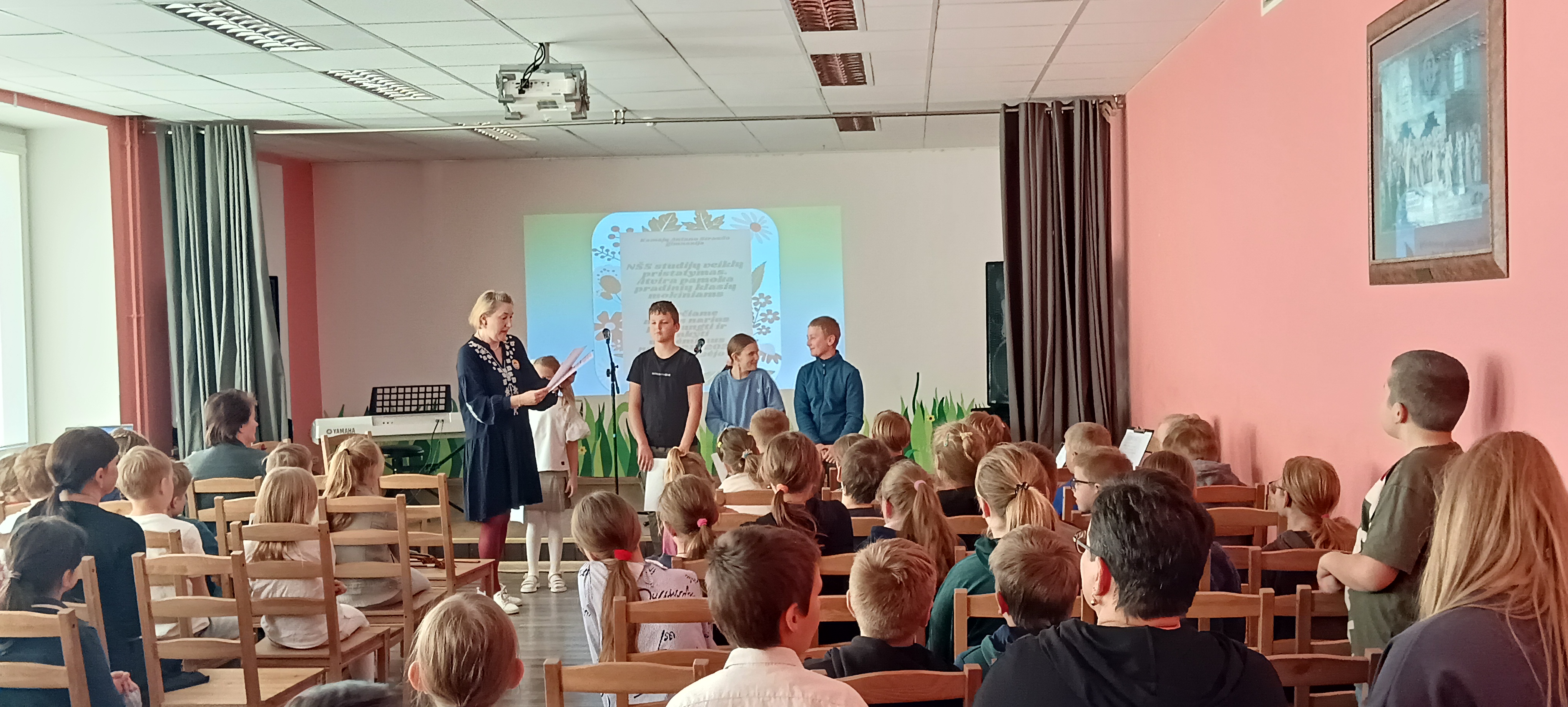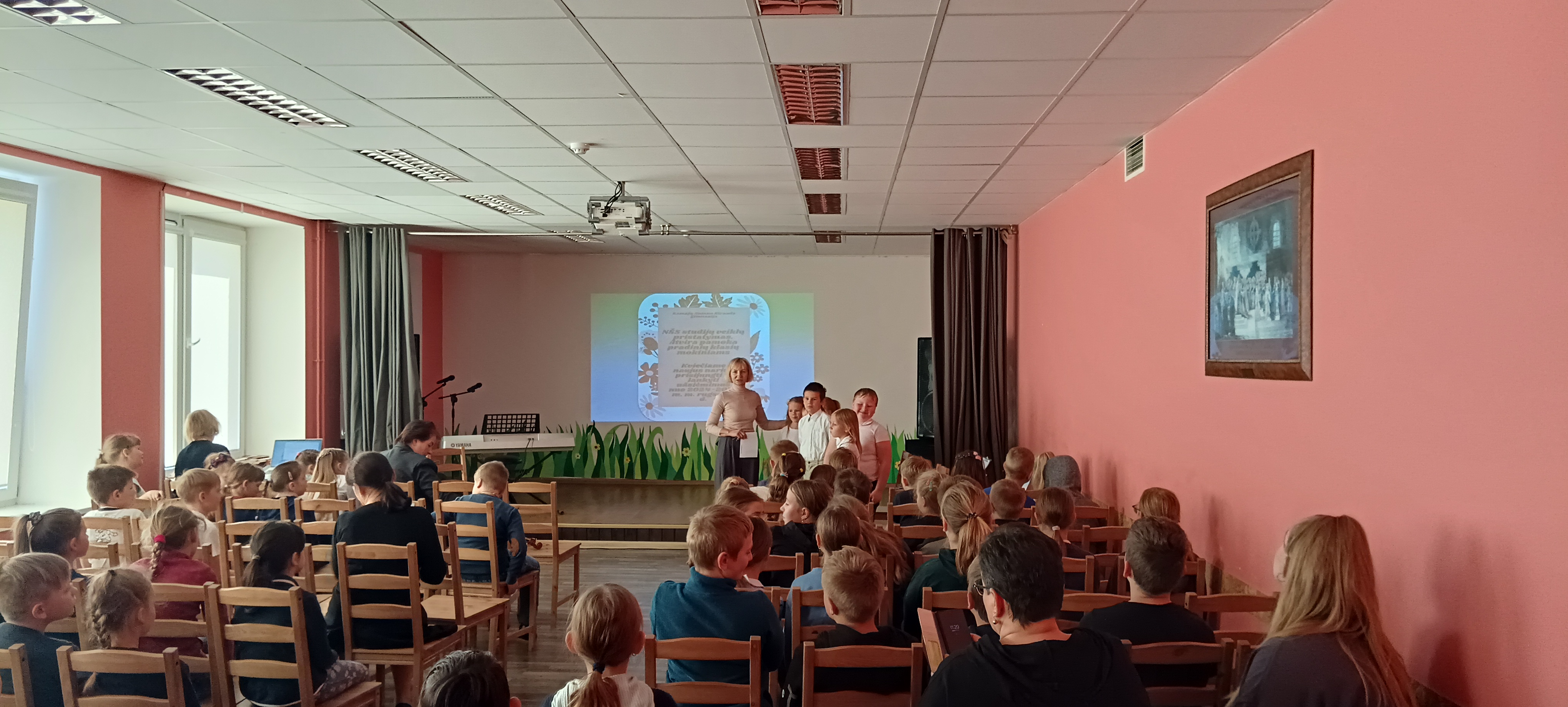 Gegužės 7 d. į Mažąją salę susirinkę gimnazijos 1-4 klasių mokiniai turėjo galimybę išvysti ir išgirsti pasirodančius ir koncertuojančius savo bendraamžius, lankančius neformaliojo švietimo skyrių. NŠS meninių studijų užsiėmimų metu mokiniai turi puikią progą kurti, patirti, pajausti, išmokti, improvizuoti ir save realizuoti meninių priemonių ir veiklų pagalba.