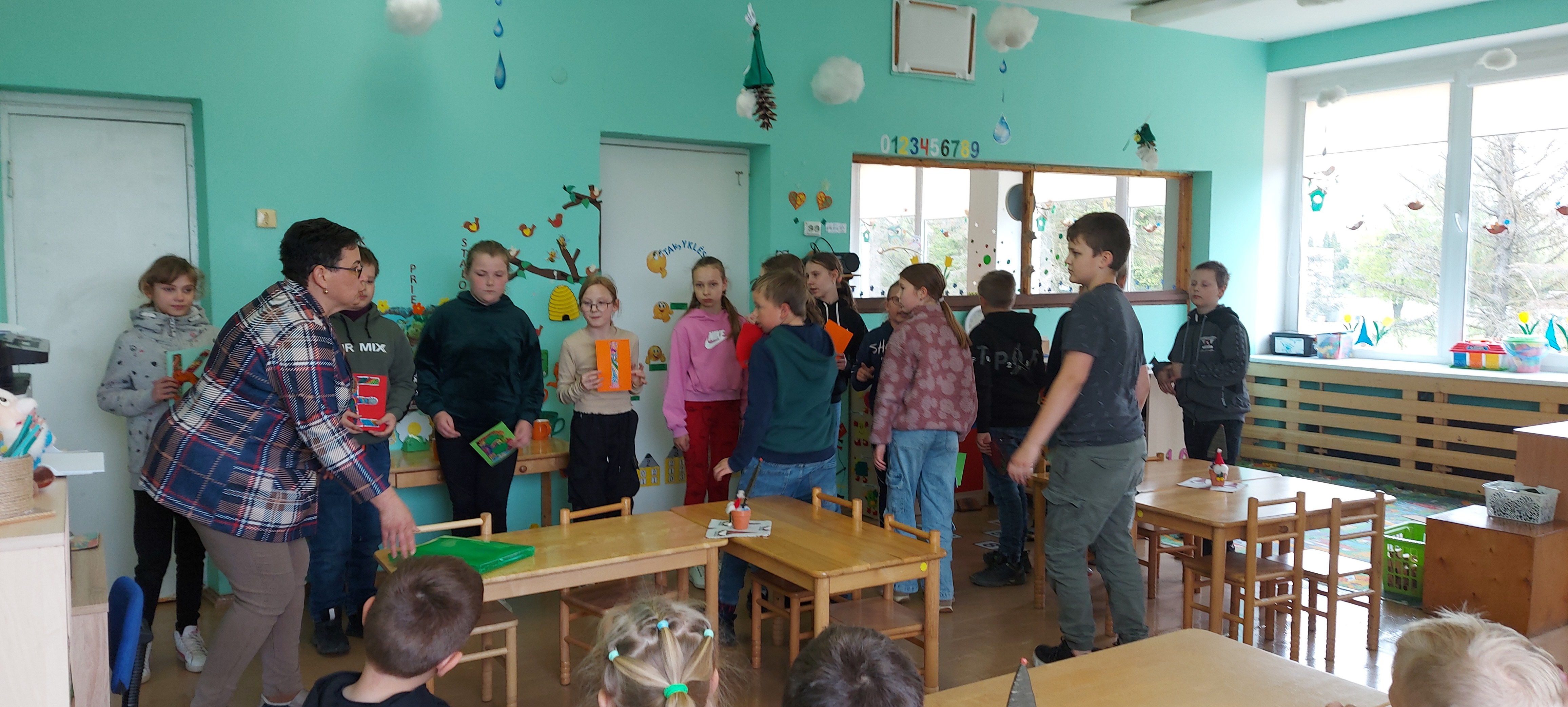Savo eilėraštuku ketvirtokai patikino, kad jau užaugo ir nuo rugsėjo pirmosios savo klasę ir mokytoją Vilmą ,,perleidžia‘‘ būsimiems pirmokams.