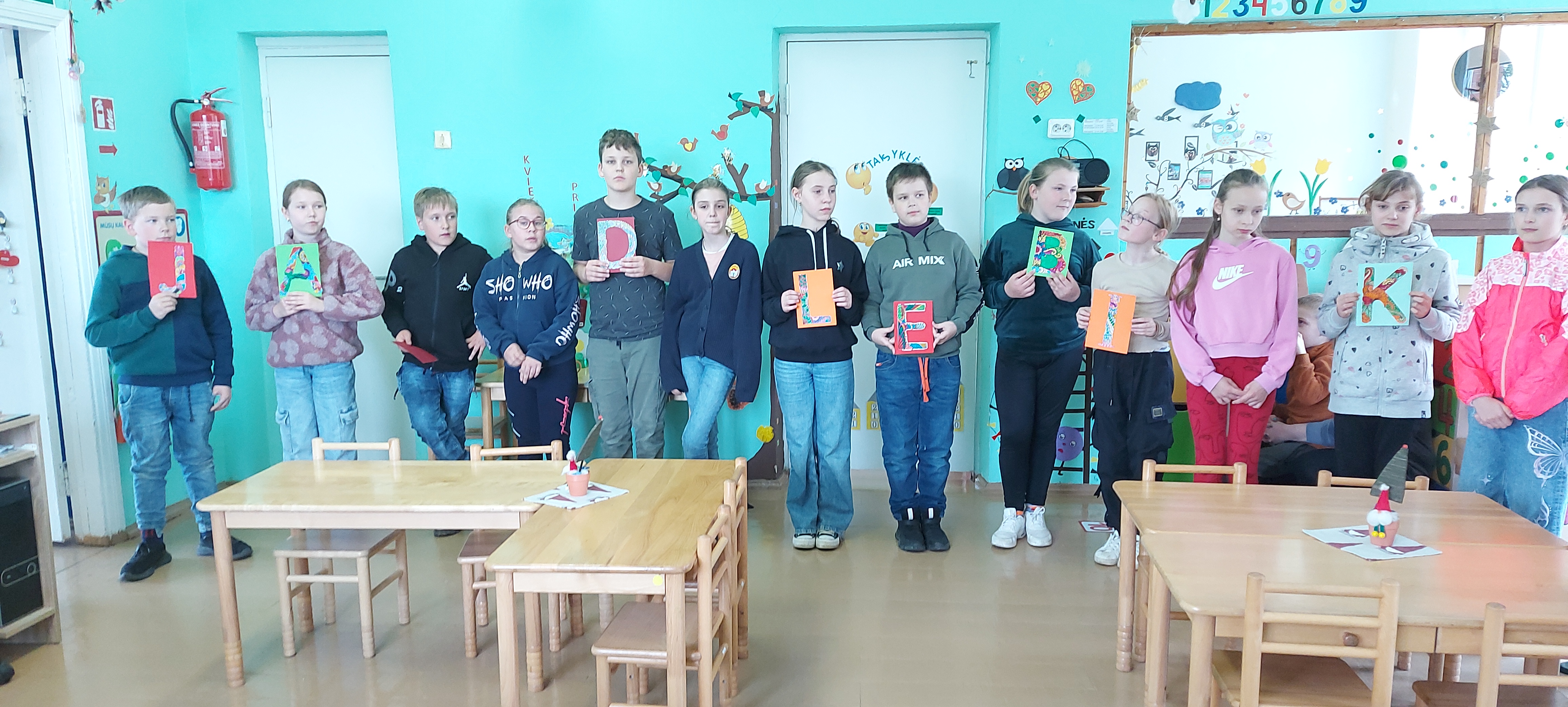 Į svečius pas ,,Nykštukus‘‘ sugužėjo visas pulkas ketvirtokų ir jų mokytoja Vilma.,,Nykštukai‘‘ labai laukė susitikimo. Ketvirtokai atnešė daugybę smagių dovanų. Jie ne tik deklamavo eilėraščius, sekė pasaką, dainavo, žaidė žaidimus, bet ir padovanojo vaikams puikų, pačių gamintą žaidimą ir nuostabias raides.