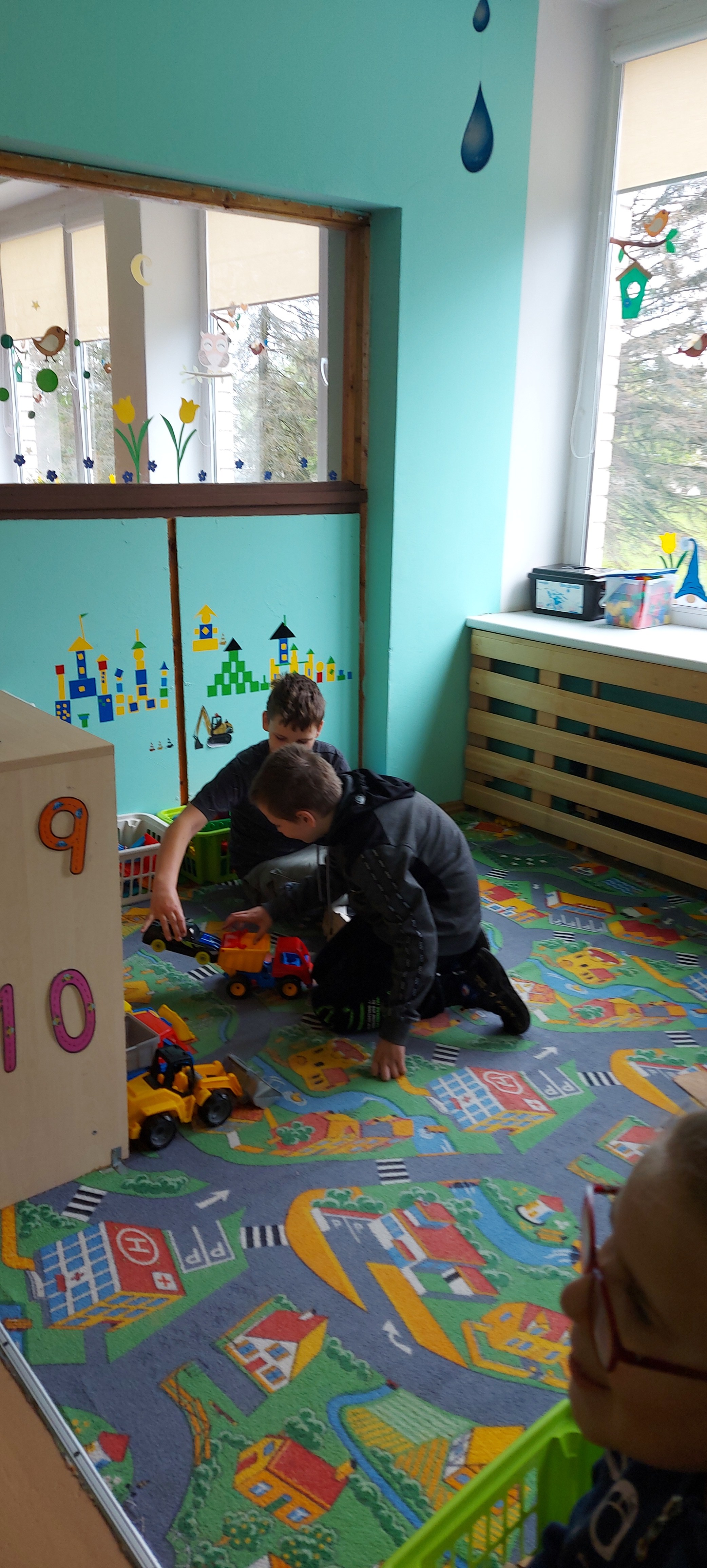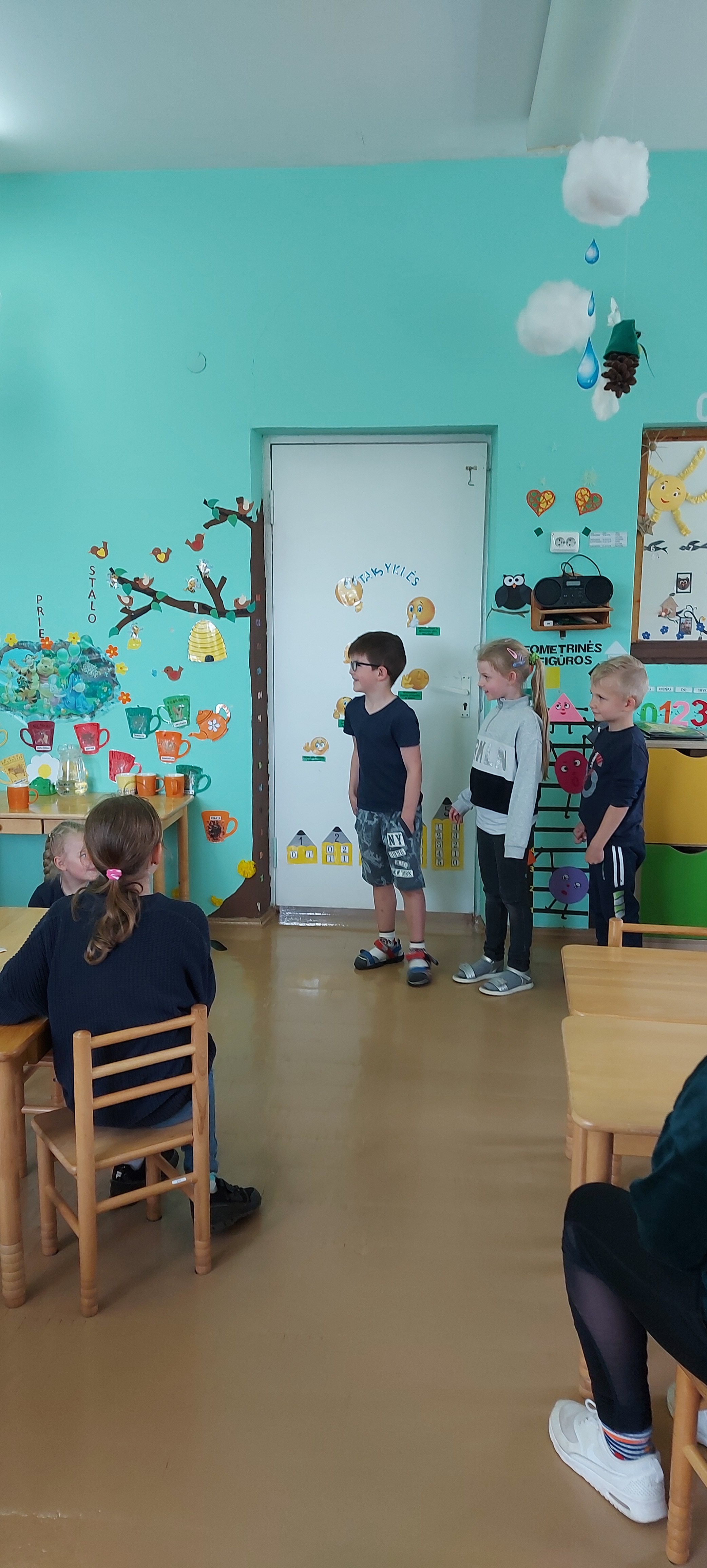 Kol mokytoja bendravo su ,,nykštukais‘‘, ketvirtokai spėjo prisiminti savo dienas darželyje ir pažaisti.
