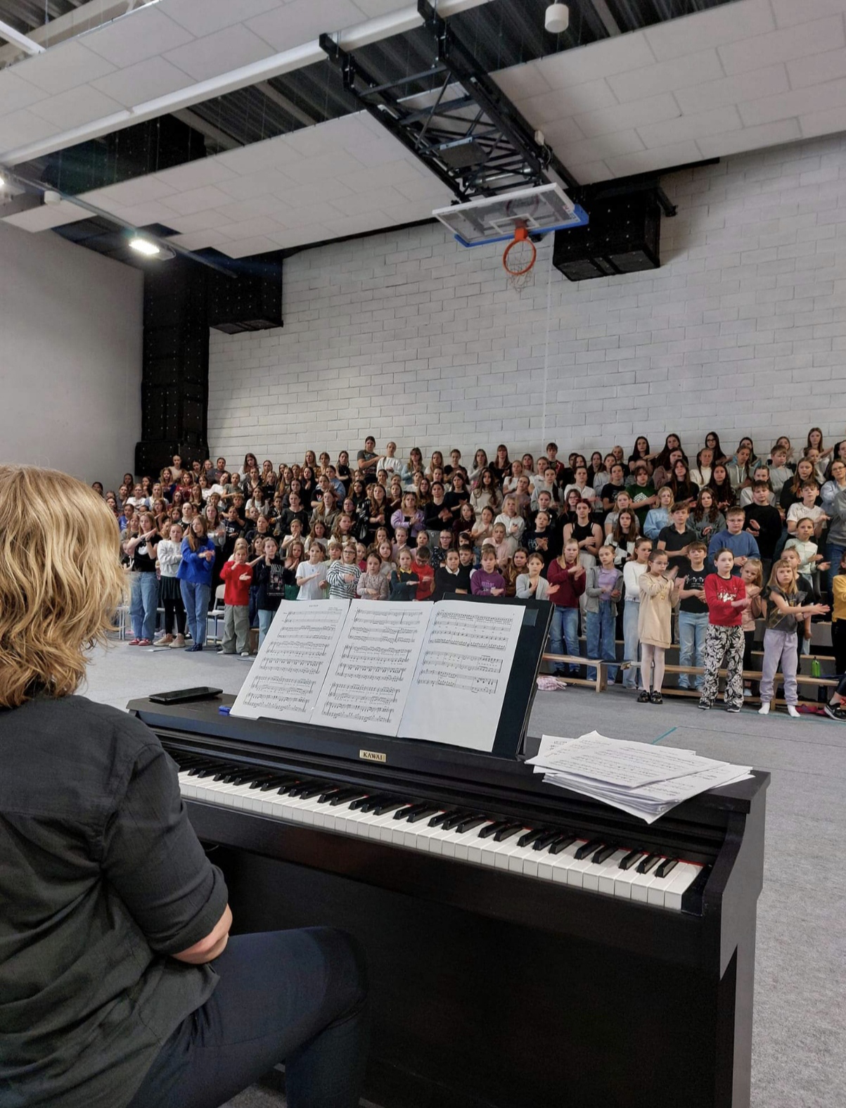 Gegužės 11 d. su grupe gimnazijos NŠS dainorėlių, Jungtinio Lietuvos vaikų choro dalyvių, svečiavomės Vilniuje, Karalienės Mortos mokykloje. Visoje Lietuvoje repetuojantys projekto dalyviai jau beveik baigė pasiruošimą Lietuvos dainų šventė ❤ Procesas truko dvejus mokslo metus, ir jame dalyvavo 800 choruose įprastai nedainuojančių vaikų! Dar visų laukia sunki ir svarbi repeticija gegužės 25 d. O jau liepos 6 d. Vingio parke pasirodysime kartu su tūkstančiais choristų finaliniame Dainų šventės koncerte.