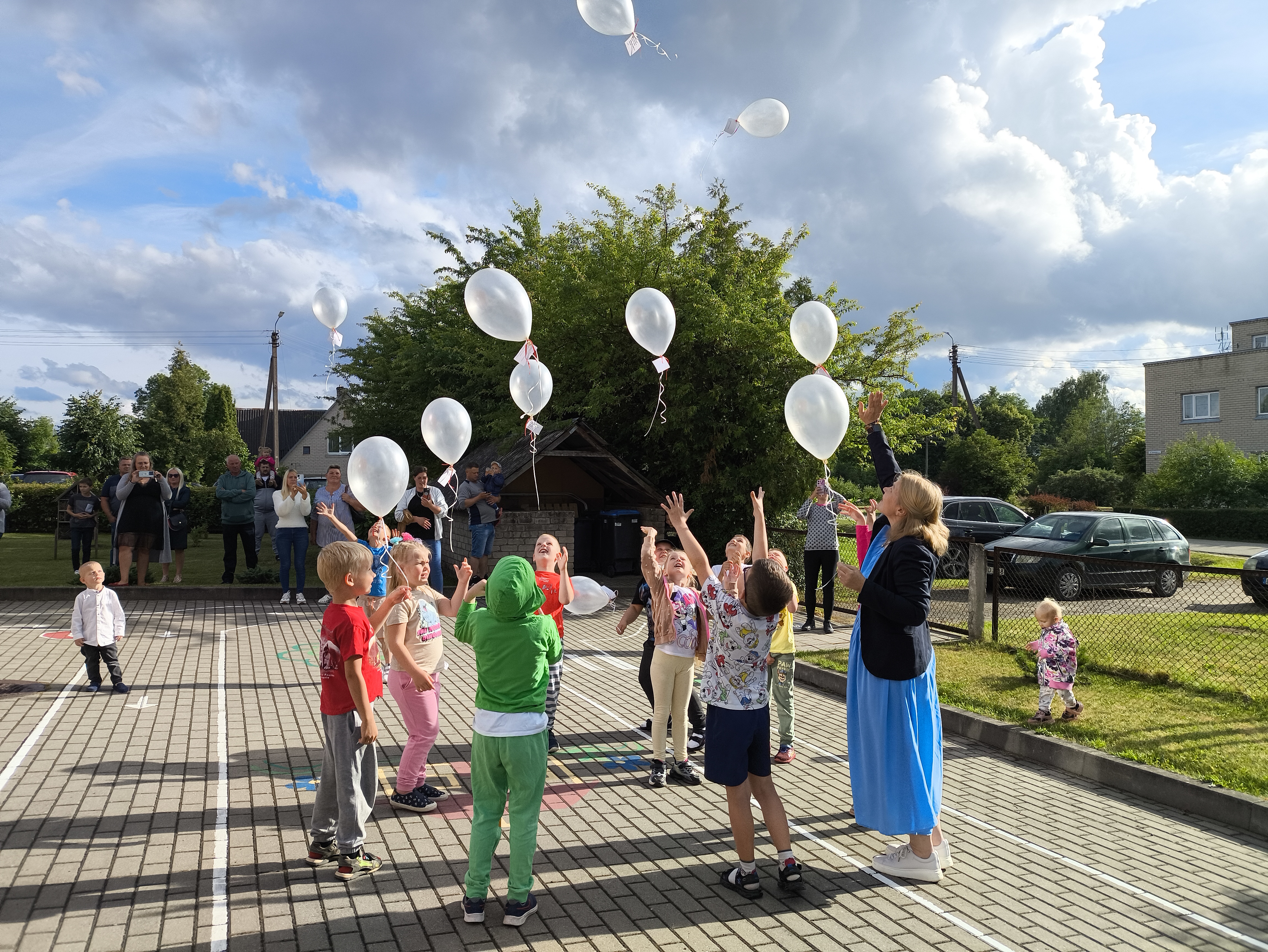 Taip su vaikyste atsisveikino „Nykštukų“ grupės vaikai, parengę smagią šventę su dainomis, eilėraščiais, šokiais, padėkos žodžiais ir dovanėlėmis. Buvo visko: linksmų akimirkų, pramogų, dovanų, palinkėjimų, juoko ir ašarų… Į dangų kilo trylika balionų su vaikų svajonėmis – tegu jos pildosi… Visa skyriaus bendruomenė linkėjo vaikams sėkmės.