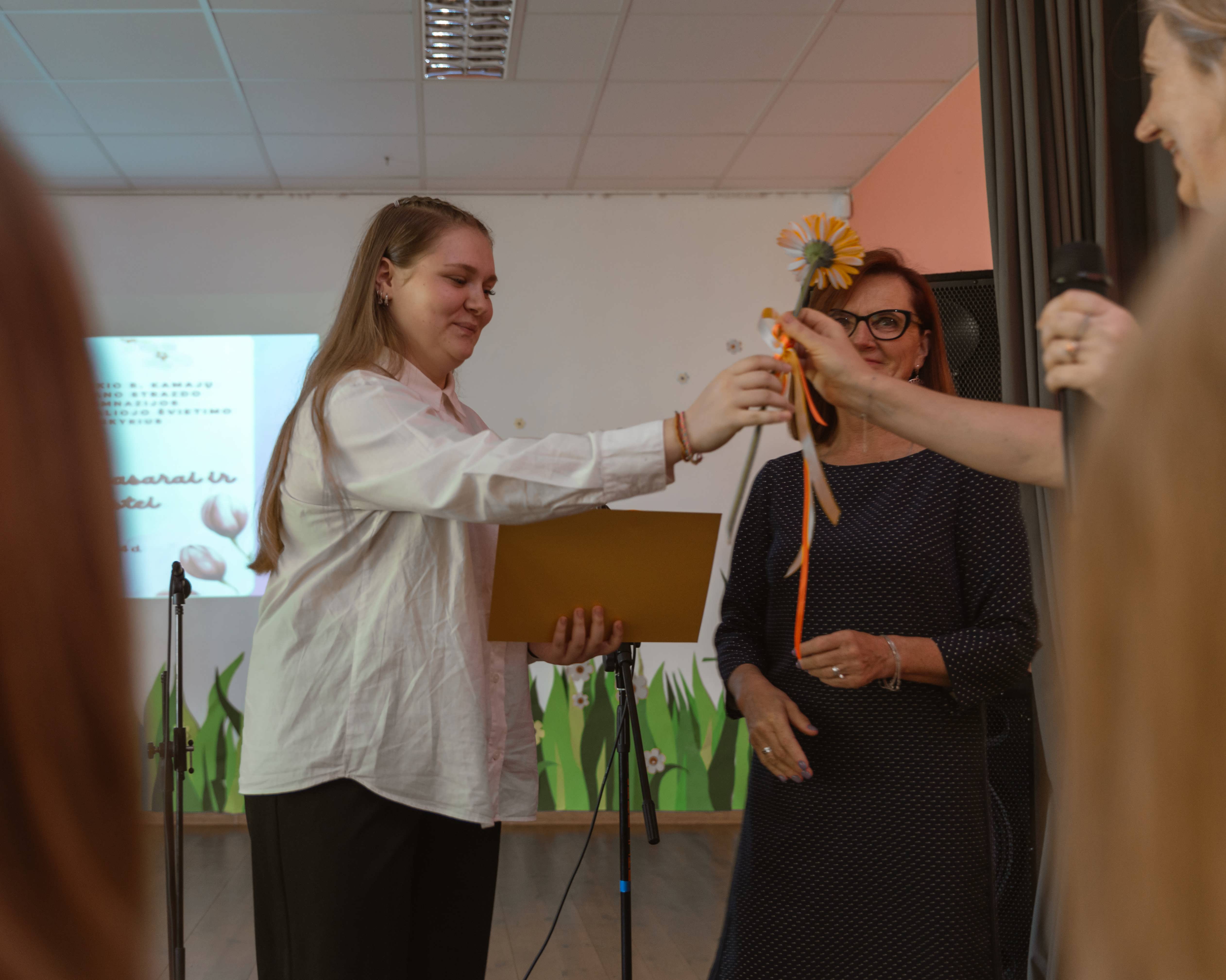 Besibaigiant dar vieneriems mokslo metams, gegužės 24 d. gimnazijos Mažojoje salėje ir vėl suskambo muzika, fojė pasipuošė piešiniais ir molio dirbiniais. Neformaliojo švietimo skyriaus mokiniai ir mokytojai pakvietė visus į šventinį baigiamąjį koncertą. Mokinius koncertui paruošė mokytojai Audronė Gabienė, Ramunė Glinskienė, Dalia Bartininkienė, Asta ir Robertas Mičeliai. Dailės ir keramikos dirbinius eksponavo mokiniai, vadovaujami Daivos Baltakytės. Renginį vainikavo iškilmingas Neformaliojo vaikų švietimo pažymėjimų teikimas devynioms diplomantėms – Kamilei ir Viltei Kučinskaitėms, Skaistei Pelurtytei (kanklių studija), Akvilei Jakubonytei (gitaros studija), Medai Valskytei (fortepijono studija), Medai Braukylaitei, Austėjai Sokaitei, Justinai Dudonytei ir Paulinai Skardytei (teatrinės raiškos studija).