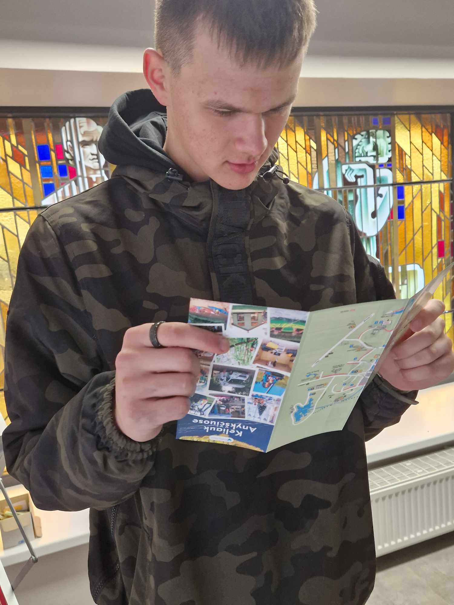Spalio pradžioje mes, dvyliktokai, kartu su lietuvių k. ir literatūros mokytoja Nijole vykome į Anykščių kraštą — į netradicines lietuvių kalbos pamokas. Aplankėme Antano Baranausko muziejų, Antano Žukausko-Vienuolio memorialinį namą-muziejų, Jono Biliūno bei Juozo Tumo- Vaižganto tėviškes. Išgirdome daug įdomių ir negirdėtų faktų apie šiuos rašytojų gyvenimą bei kūrybą. Klausėmės gidų pasakojimų, apžiūrėjome ekspozicijas, vaikščiojom po kūrėjų gimtąsias vietas. Lankėmės ir tautodailininko S. Petraškos darbų parodoje, kur apžiūrėjome unikalius akmens dulkių technika atliktus paveikslus.