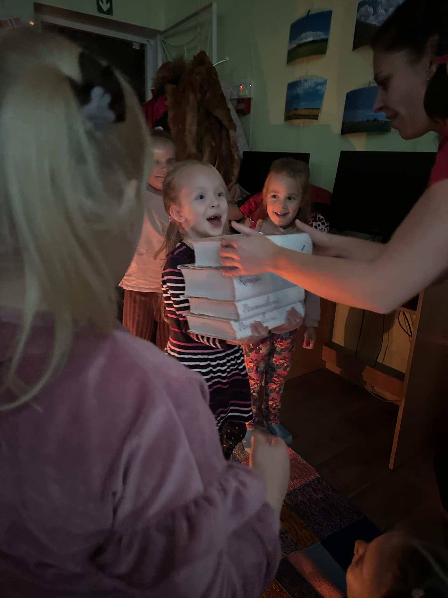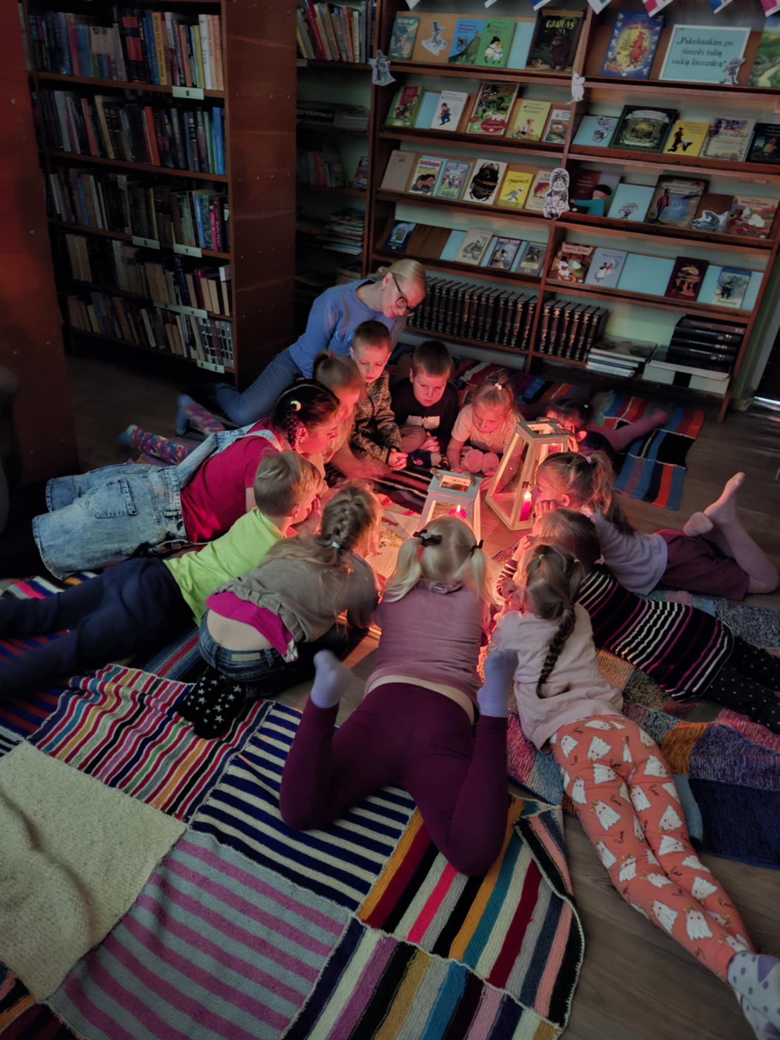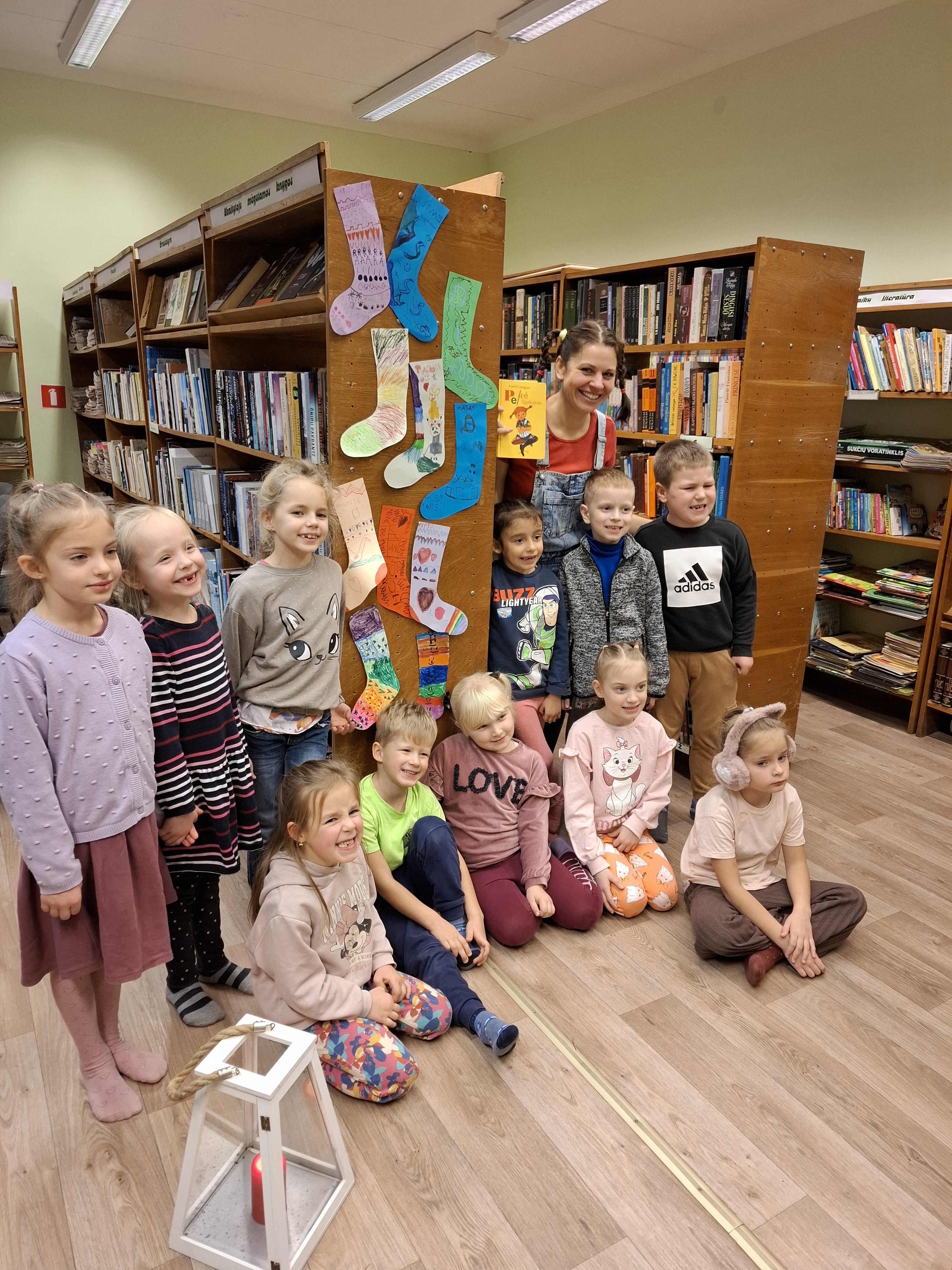 Drauge su Pepe Ilgakojine žvakių šviesoje ne tik klausėmės, bet ir skaitėme švedų rašytojos Jujjos Wieslander pasakojimą apie Mamulę Mū. Sužinoję, kad Pepė gali pakelti net arklį, vaikai jėgas išbandė keldami kuo didesnę šūsnį knygų. Pašėlusi Pepė labai mėgsta nešioti skirtingas kojines ir turėti jų daug ir įvairių. Todėl vaikai gavo užduotėlę: įvairiais raštais ir spalvomis papuošti po vieną kojinę. Taip smagiai paplušėjus laukė dovanų mainai: dovanoji Pepei kojinę, o mainais gauni žaisliuką!