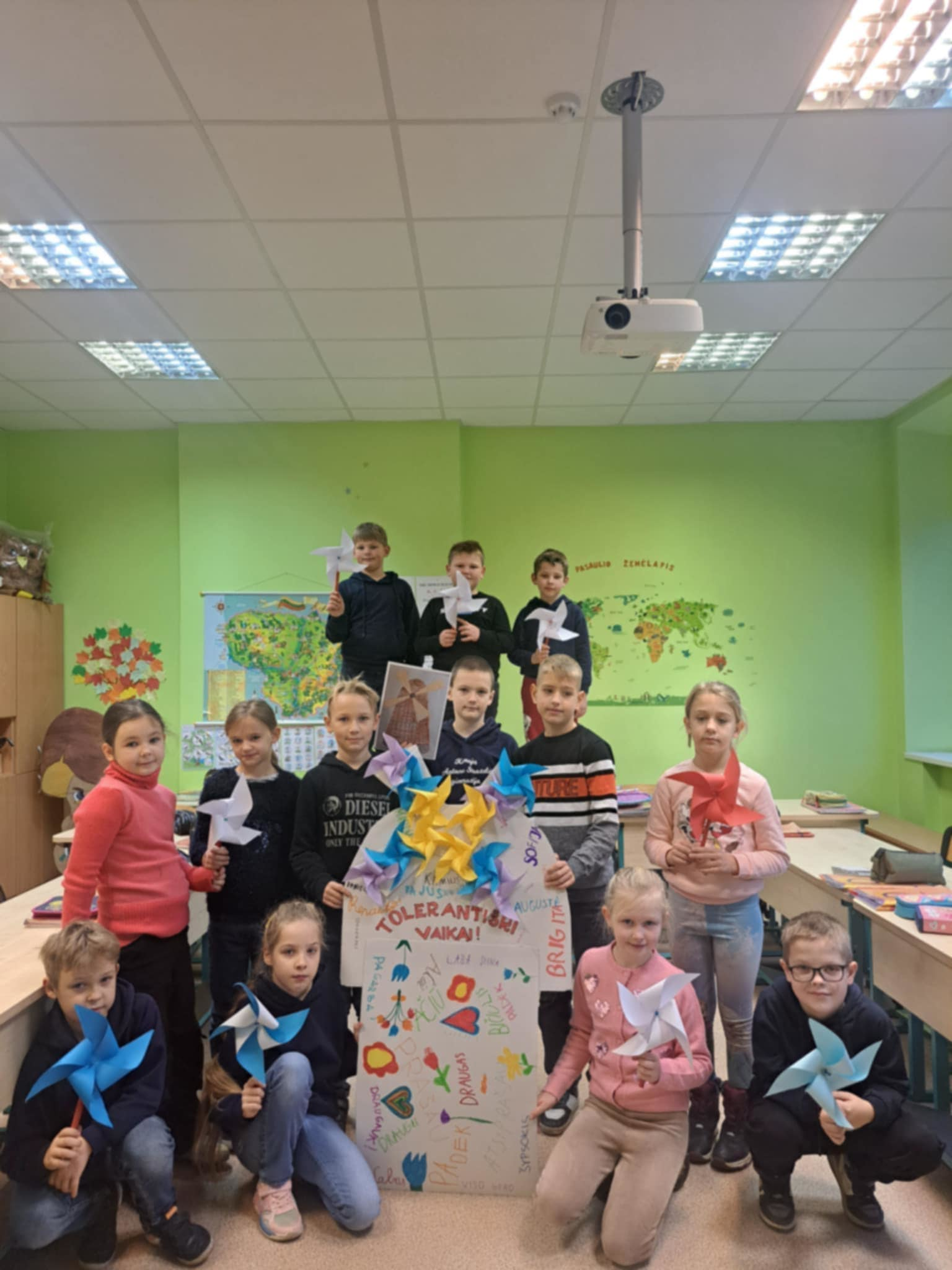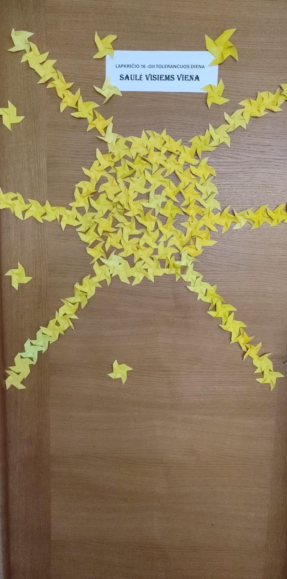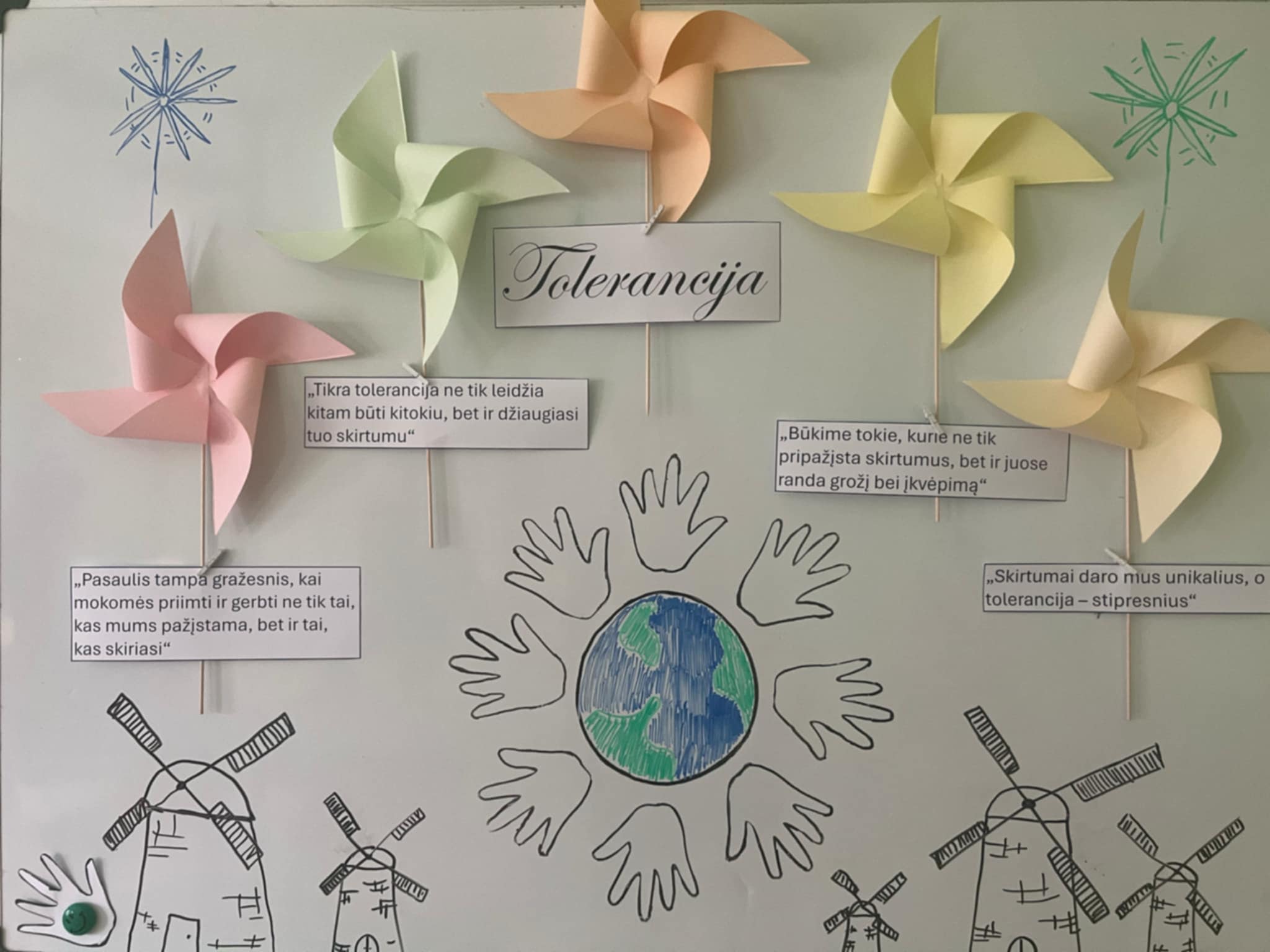Lapkričio 16-oji-Tarptautine tolerancijos diena. Šių metų iniciatyva „Permainų vėjas“, kurios simbolis-vėjo malūnėlis, dinamiškas, judantis, kaip ir pati besikeičianti visuomenė. Visą savaitę gimnazijoje vyko renginiai, diskusijos apie tolerancijos svarbą, mokiniai mokėsi atpažinti netolerancijos pavyzdžius, gamino, piešė, lipdė įvairius vėjo malūnėlius, kurie simbolizuoja