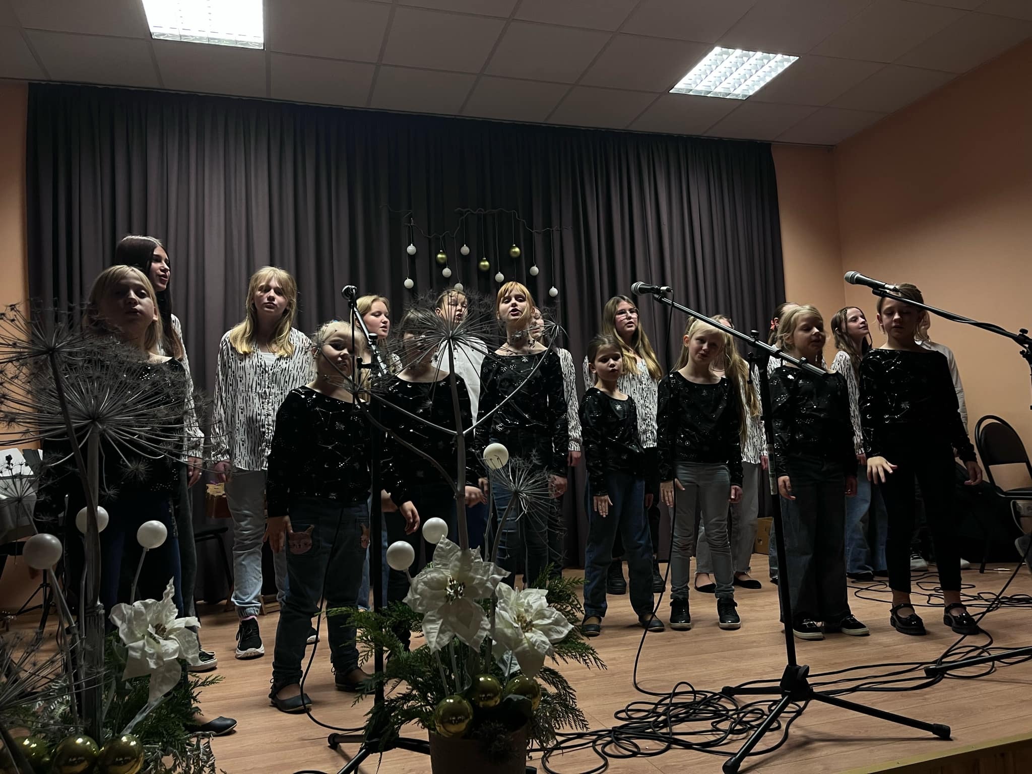 Gruodžio 12 d. Kamajų bendruomenės namų salėje meninę programą atliko mūsų gimnazijos NŠS mokiniai ir mokytojai. Skambėjo kalėdinę dvasią keliančios dainavimo studijos mokinių atliekamos dainos, į susimąstymą visus nukėlė fortepijono studijos mokinio Mato Teleišos atliekamas kūrinys. Klausytojus nudžiugino ir mažosios kanklininkės. Programos finale savo dainas atliko instrumentinė jaunimo grupė, primindama, kad šventės alsuoja mums į nugarą. Pasibaigus meninei programai, miestelio aikštėje vakaro dalyviai ir svečiai kartu su Kalėdų seneliu džiugiai įžiebė šventinę žaliaskarę.