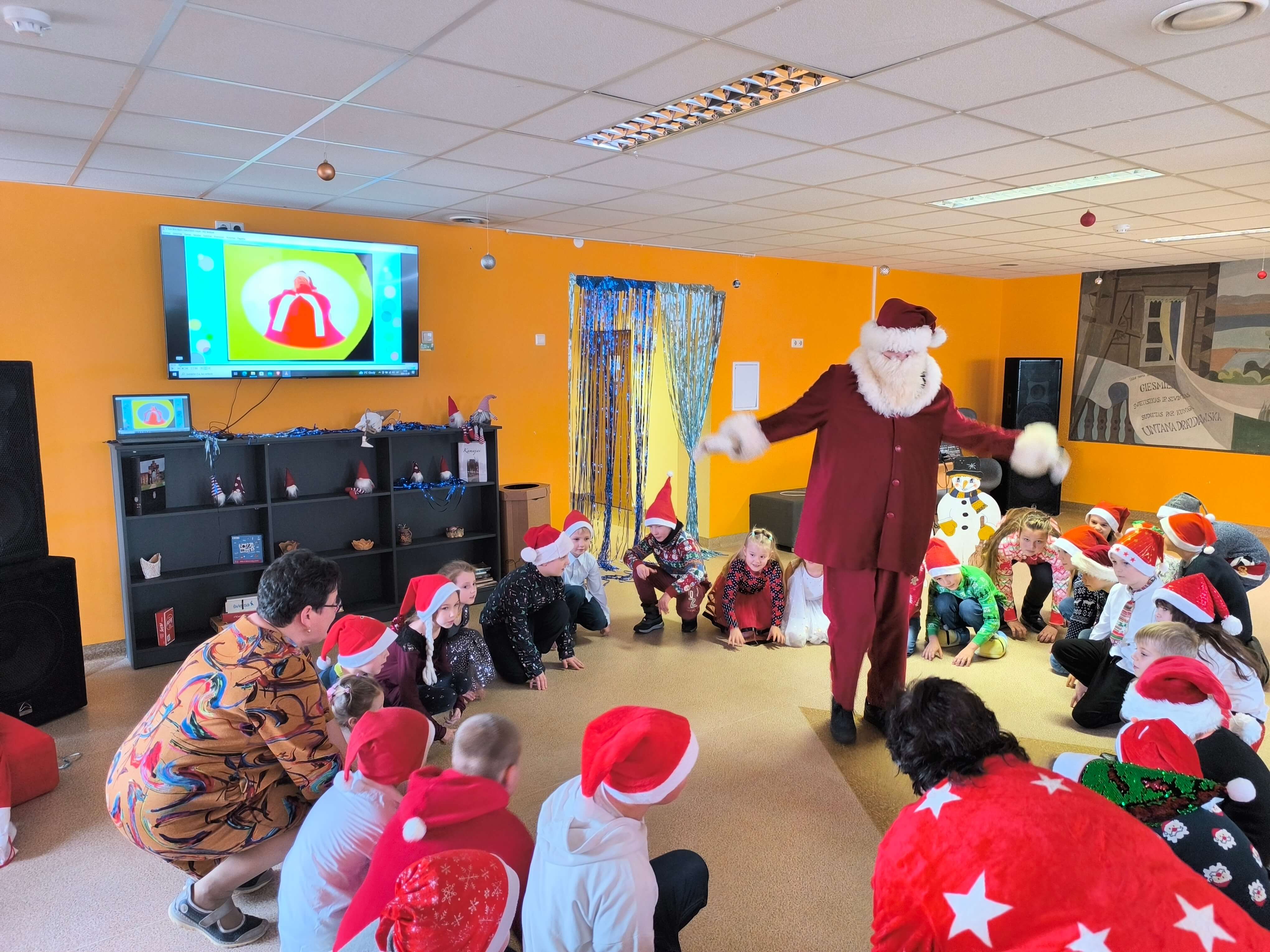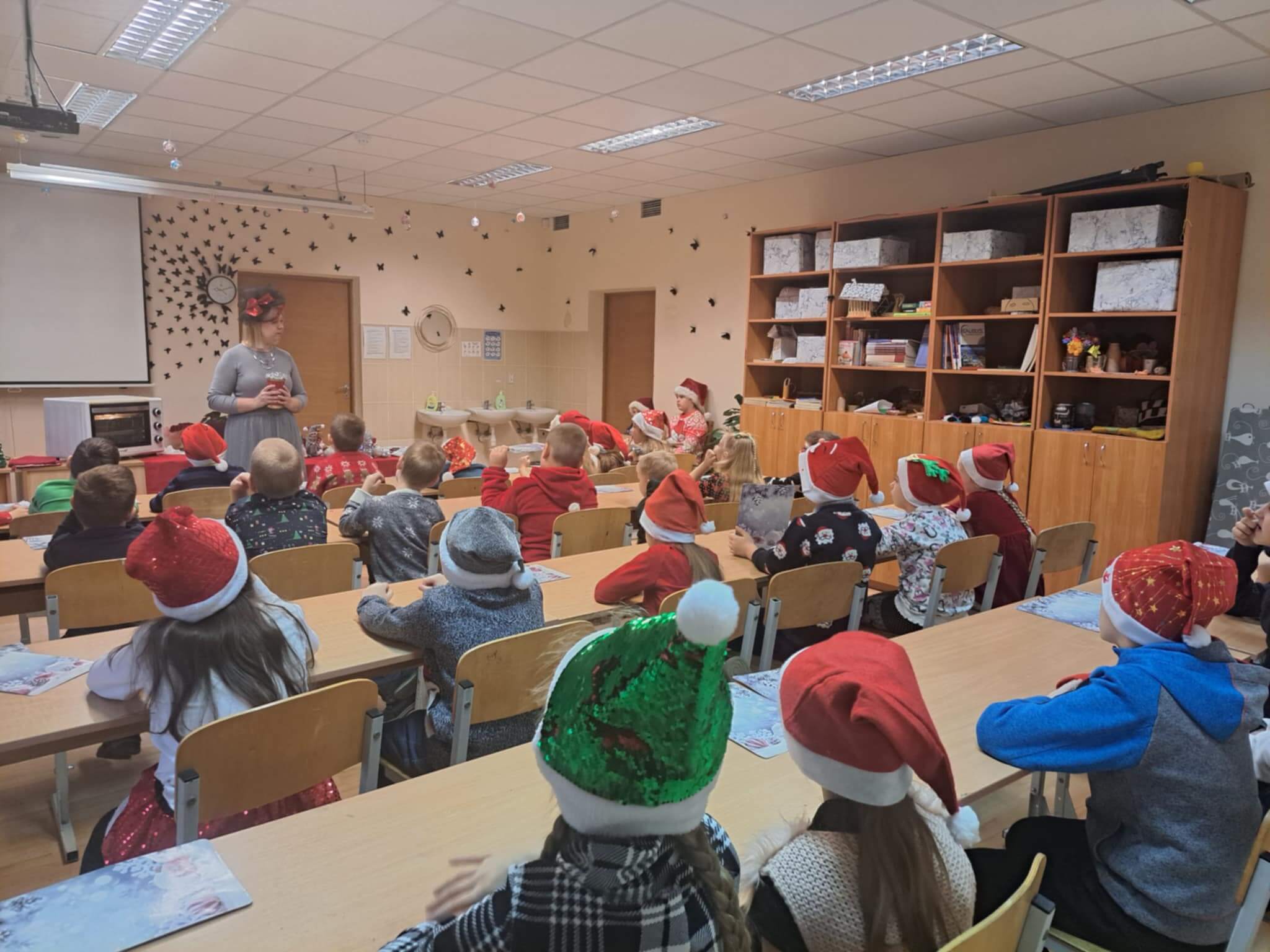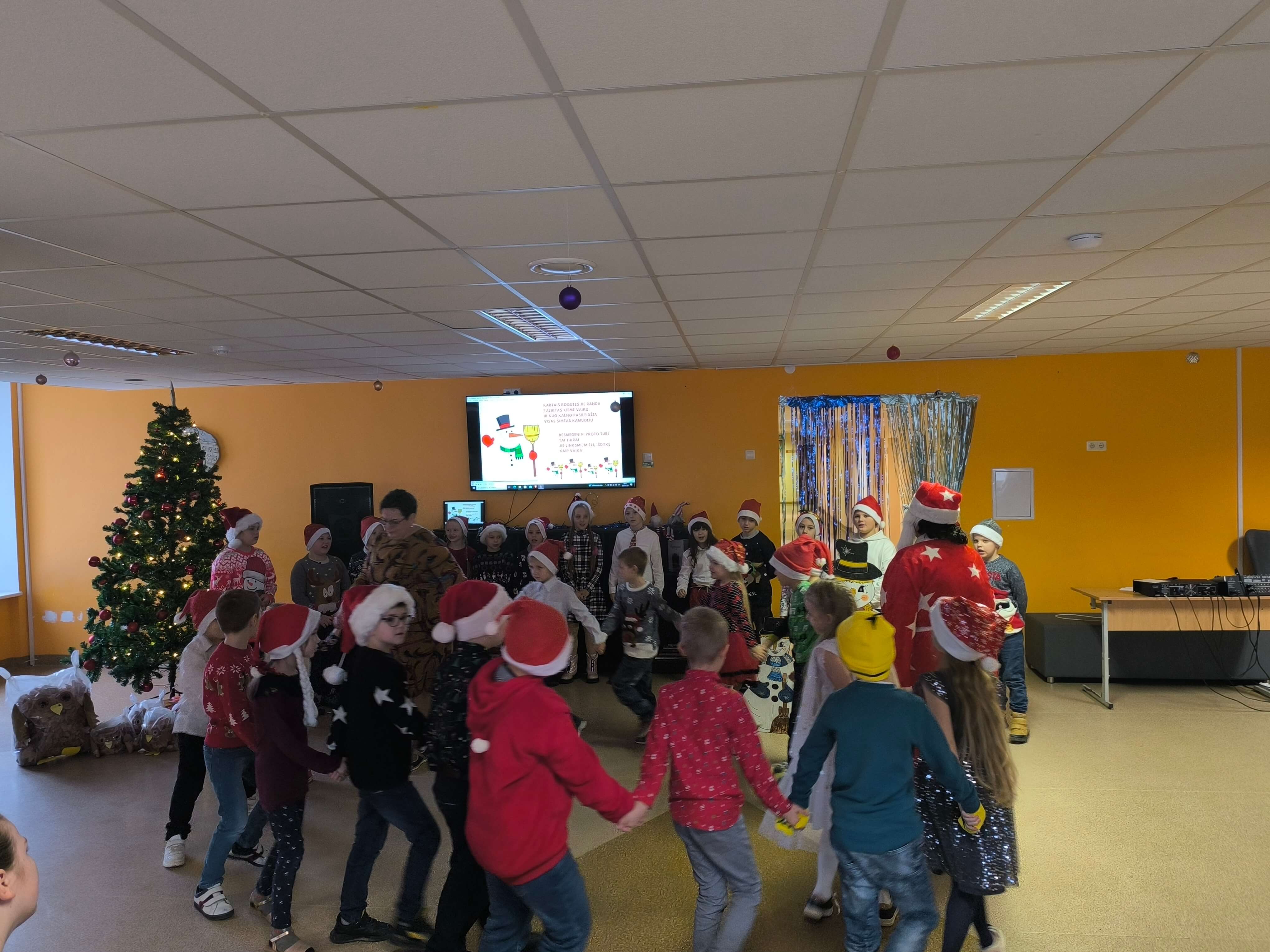 Pradinių klasių mokiniai Kalėdinę šventę pradėjo edukacine kelione - pasaka po PRIESKONIŲ PASAULĮ, kurioje ieškojo laimės. Susipažino su prieskonių, skirtų meduoliukų kepimui, rūšimis, formavo ir kepė pačius meduoliukus. Vėliau vyresnieji pradinukai rinkosi į šventinį pasibuvimą klasėse, o mažieji - susitiko su Kalėdų Seneliu: vaidino, dainavo, šoko. Grįžę į klases prisiminė Šv. Kūčių tradicijas ir papročius - gėrė arbatą su kūčiukais, būrė, kokie bus ateinantys metai, keitėsi dovanėlėmis.