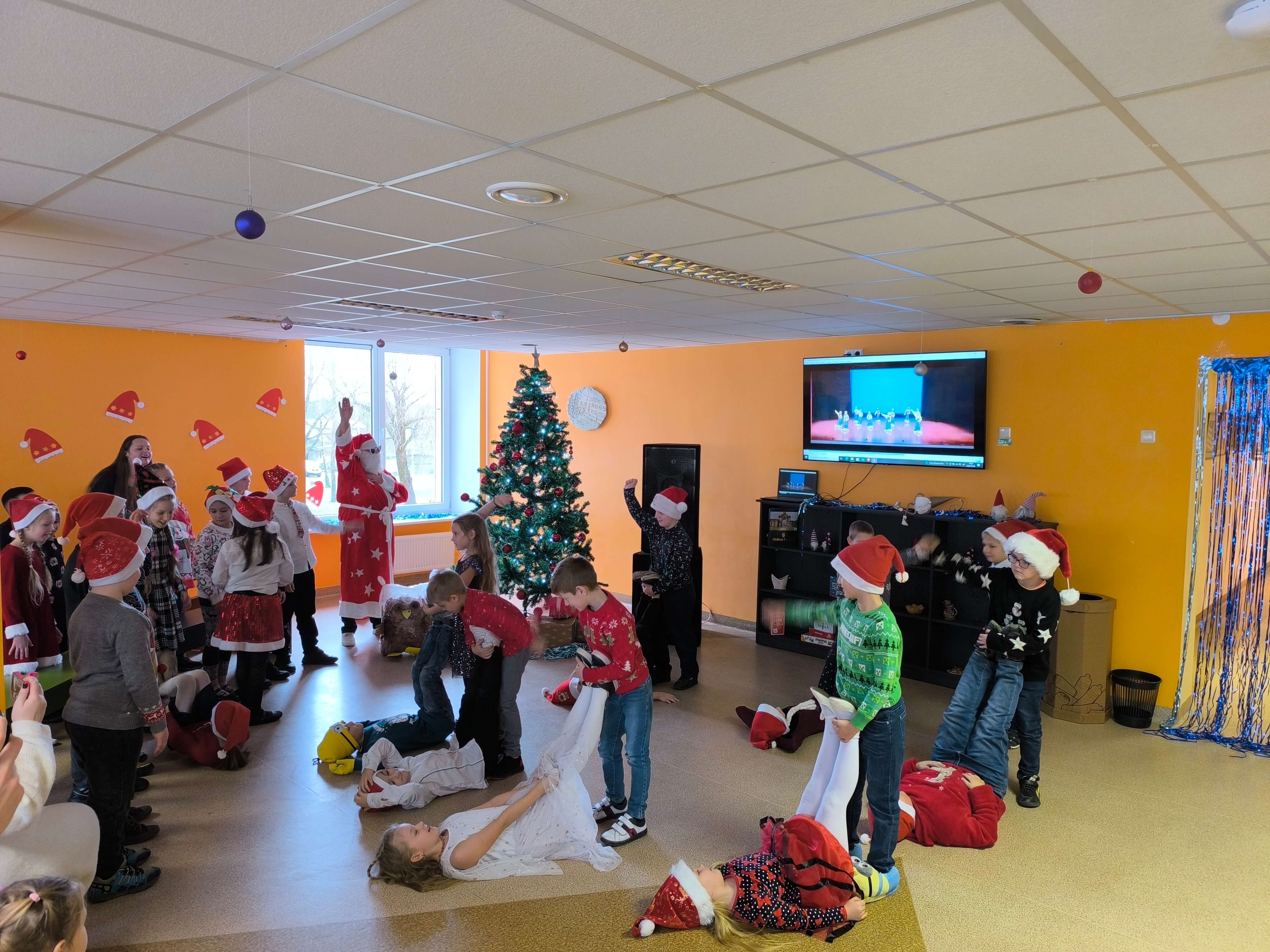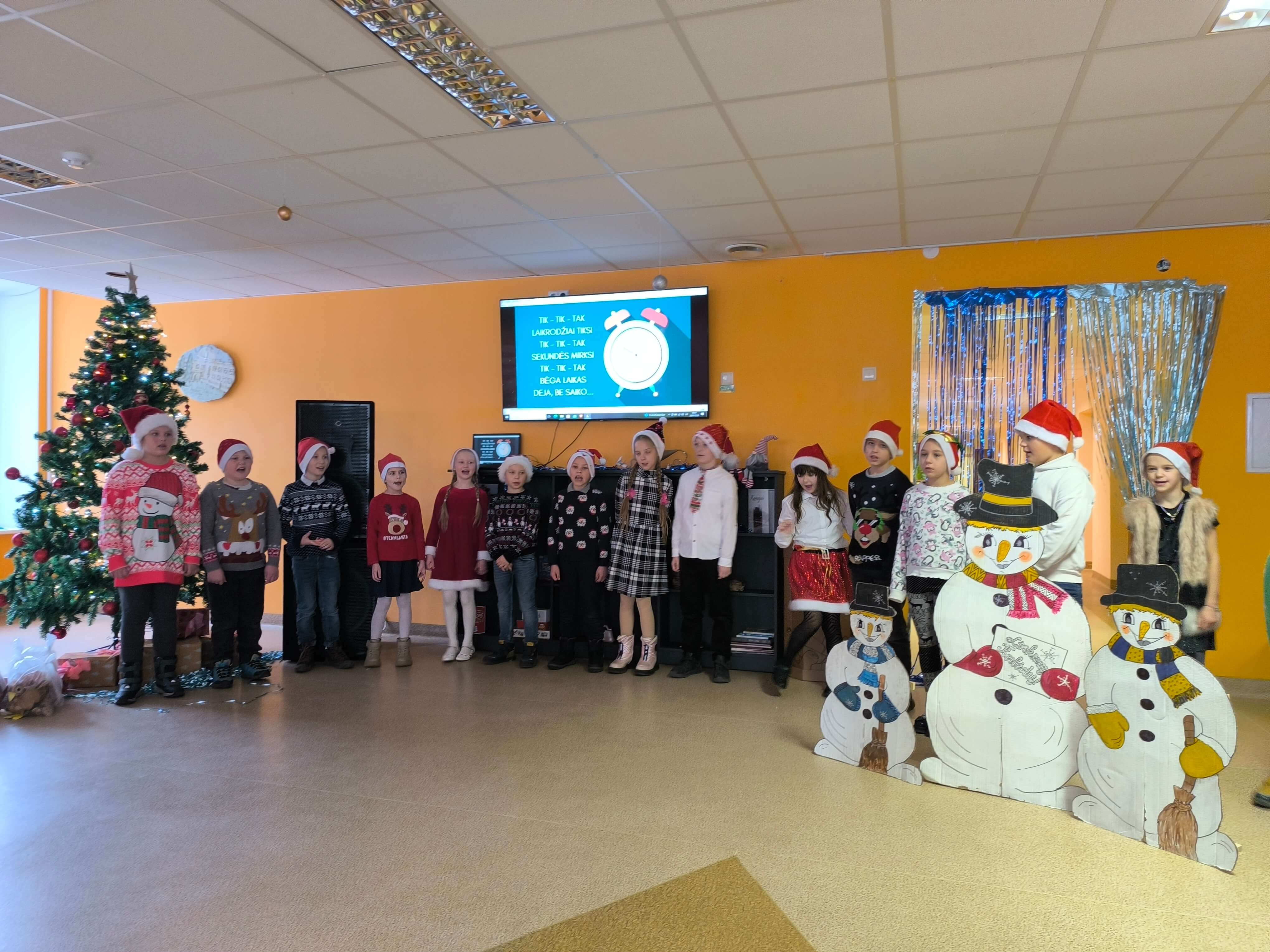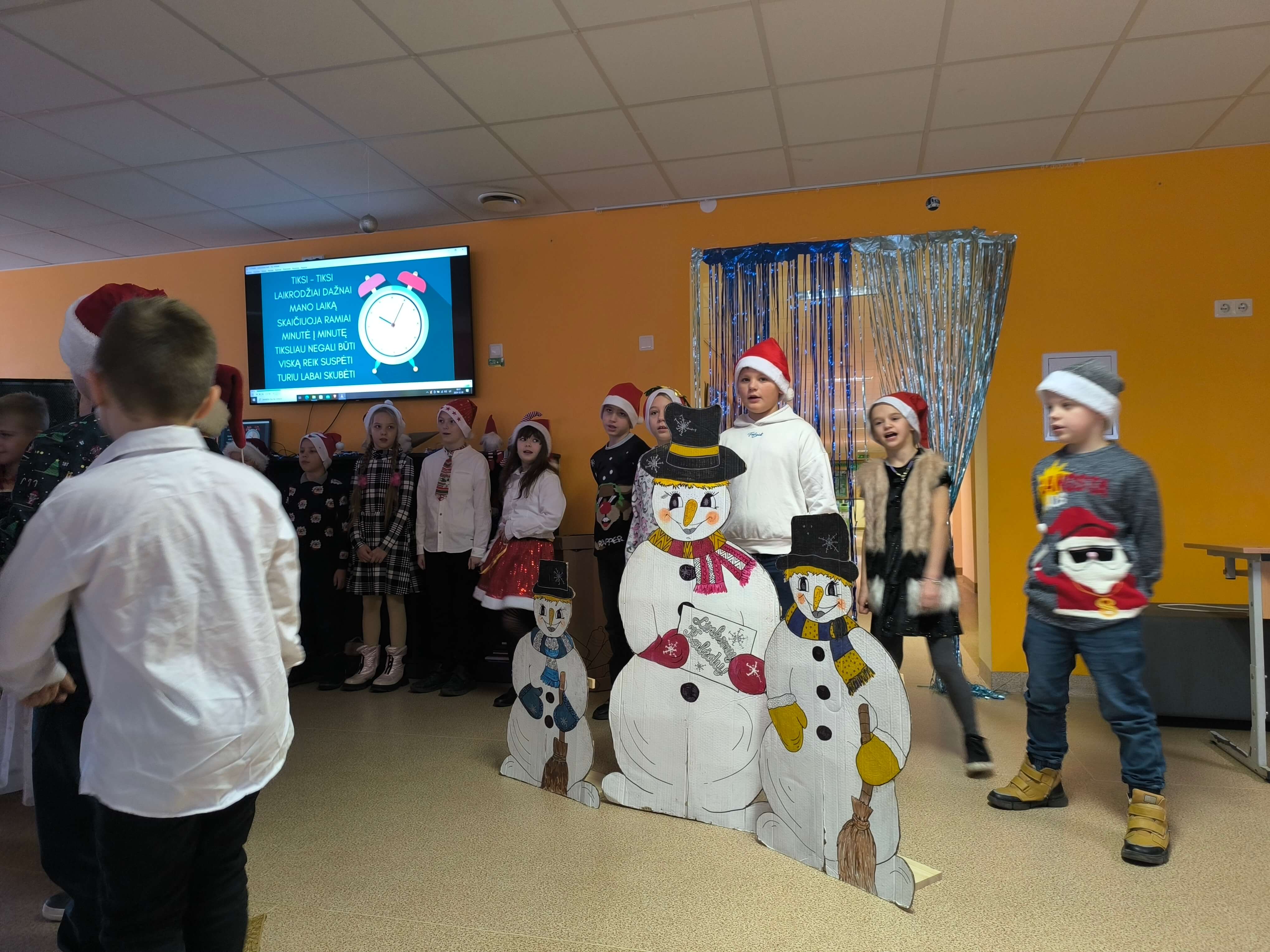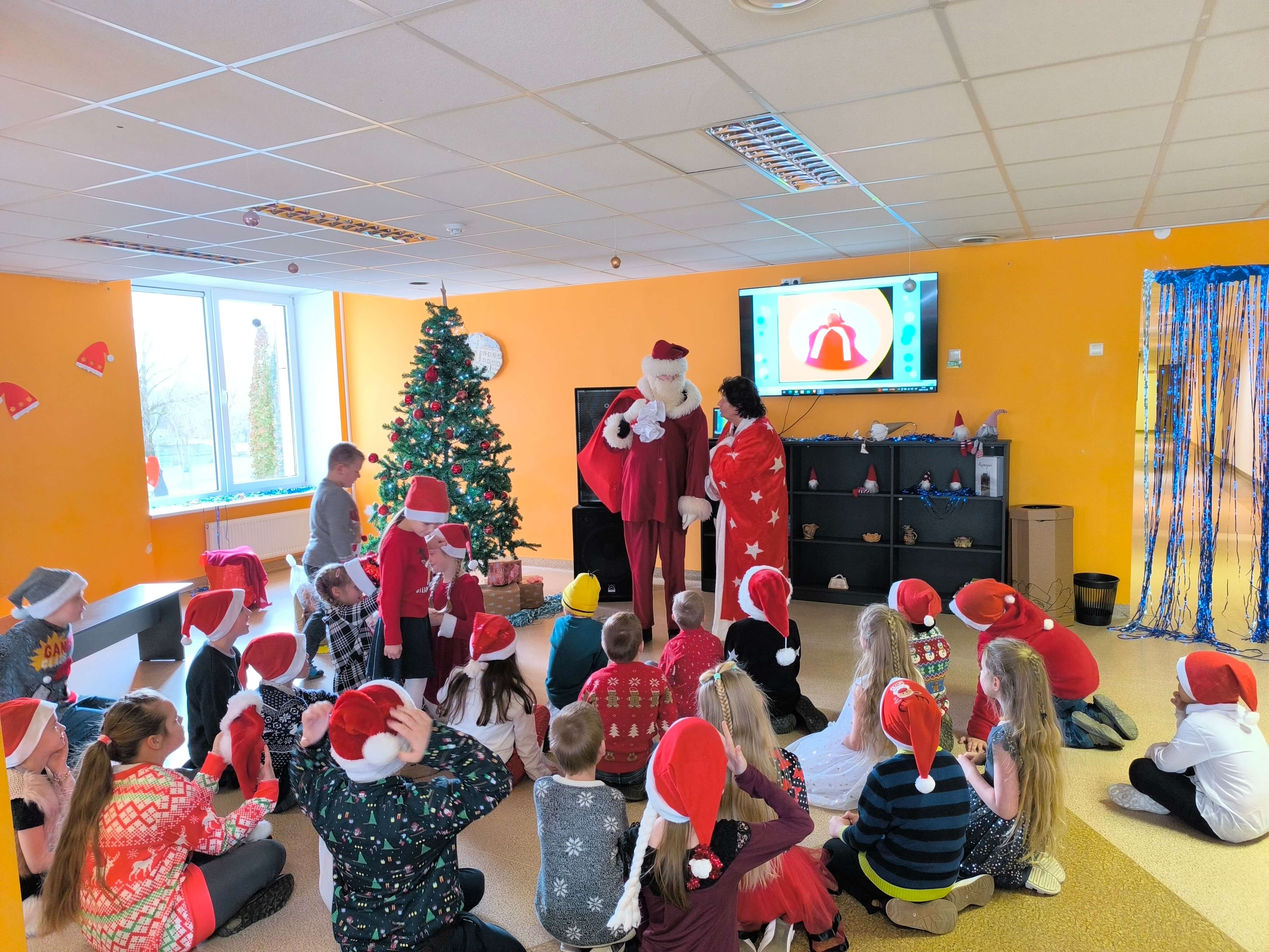 Pradinių klasių mokiniai Kalėdinę šventę pradėjo edukacine kelione - pasaka po PRIESKONIŲ PASAULĮ, kurioje ieškojo laimės. Susipažino su prieskonių, skirtų meduoliukų kepimui, rūšimis, formavo ir kepė pačius meduoliukus. Vėliau vyresnieji pradinukai rinkosi į šventinį pasibuvimą klasėse, o mažieji - susitiko su Kalėdų Seneliu: vaidino, dainavo, šoko. Grįžę į klases prisiminė Šv. Kūčių tradicijas ir papročius - gėrė arbatą su kūčiukais, būrė, kokie bus ateinantys metai, keitėsi dovanėlėmis.