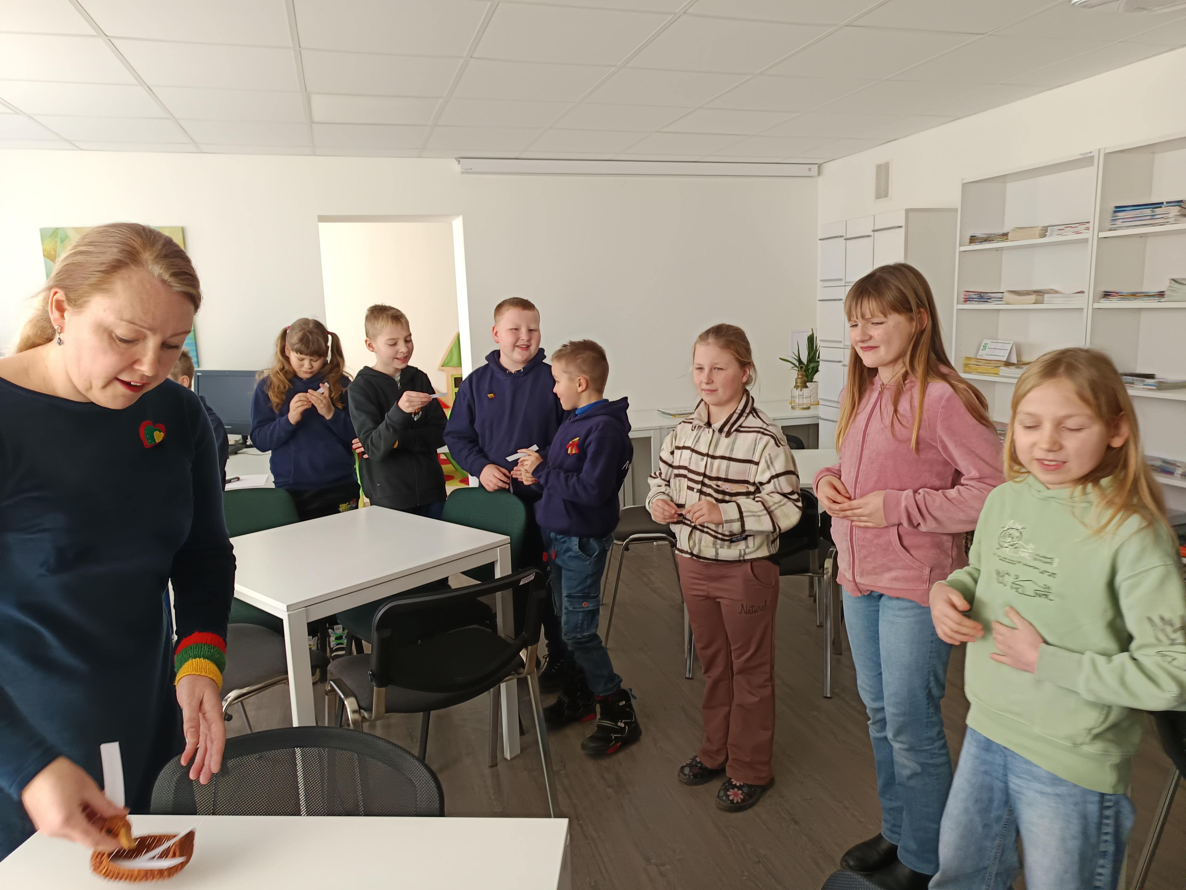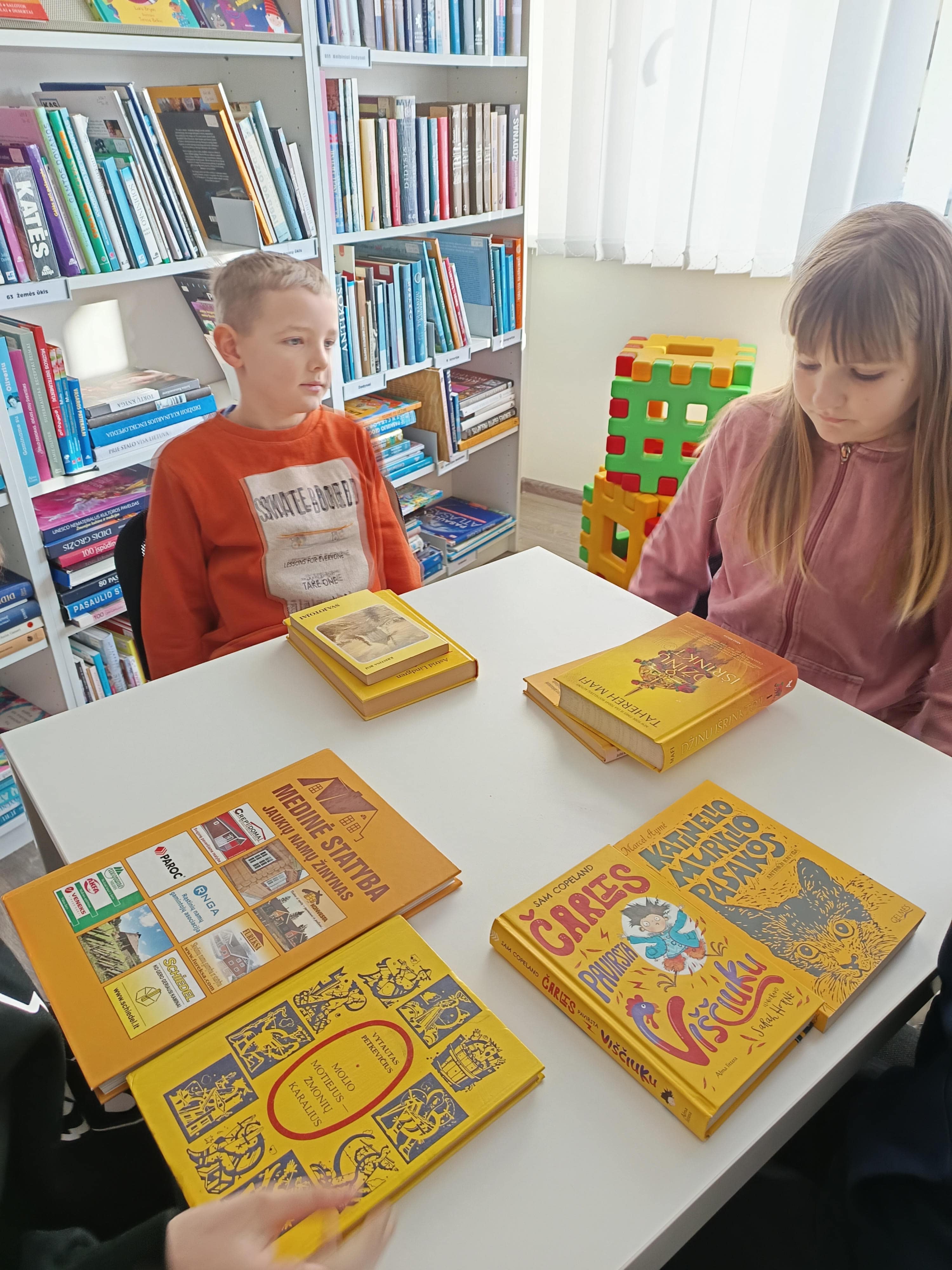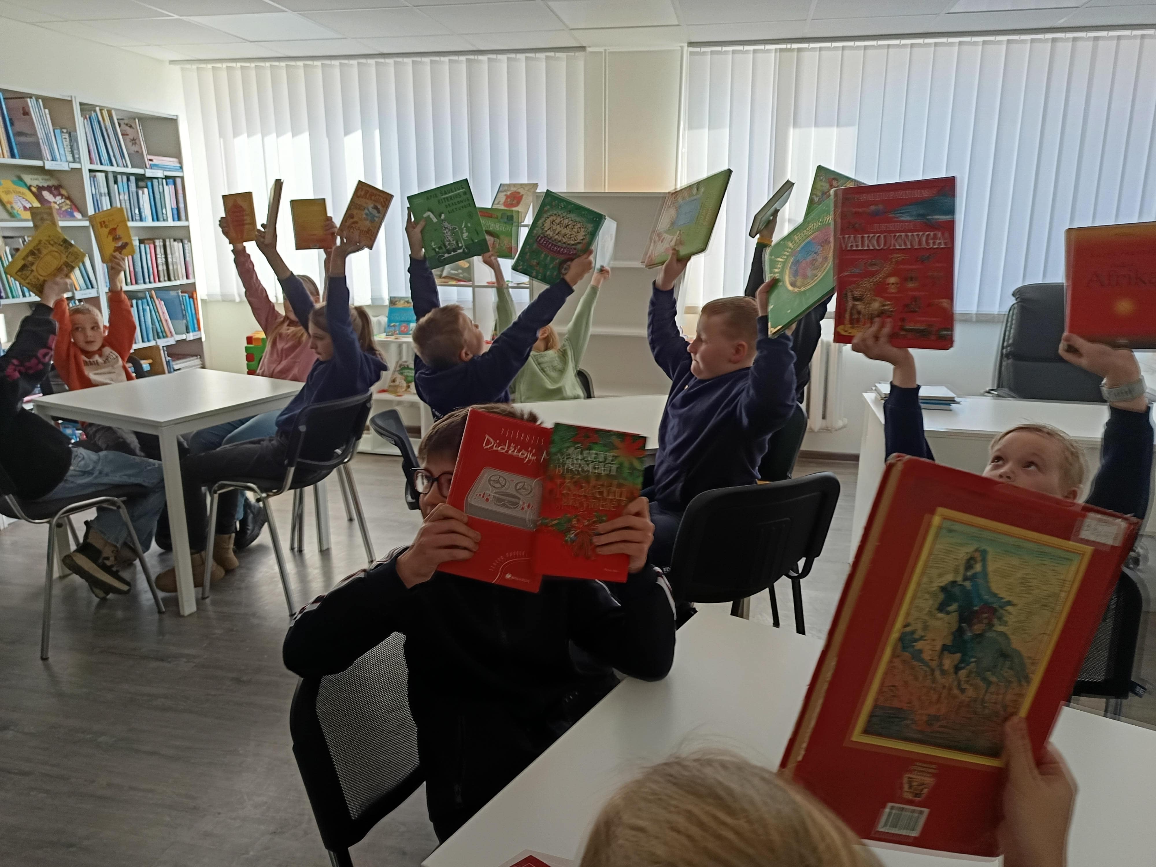 Rytmetį „Pažintis su knyga“, skirtą valstybės atkūrimo dienai, pravedė bibliotekininkė Aušra. Trečiokai grupėse kūrė receptą „Kaip pamilti skaitymą“, ieškojo knygose Lietuvos simbolių, atliko užduotį „Pasakojimai iš spalvotų knygų“, surado knygose linksmas istorijas ir jas pristatė, dėliojo į lentynas knygas pagal vėliavos spalvas.