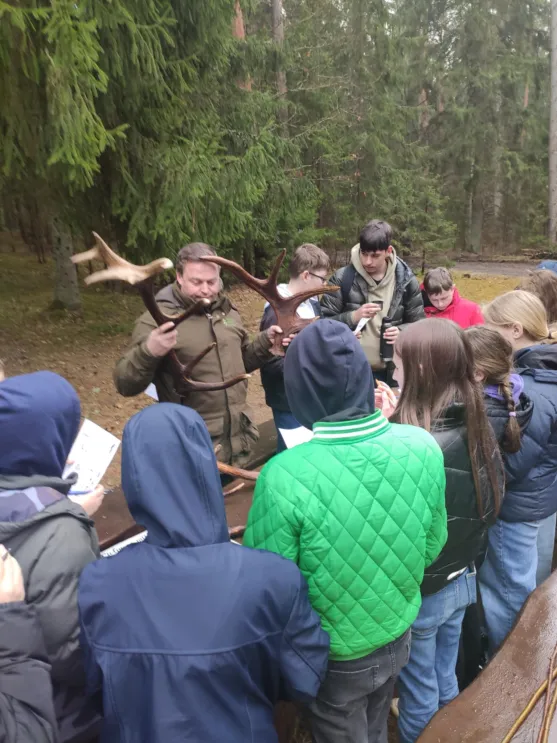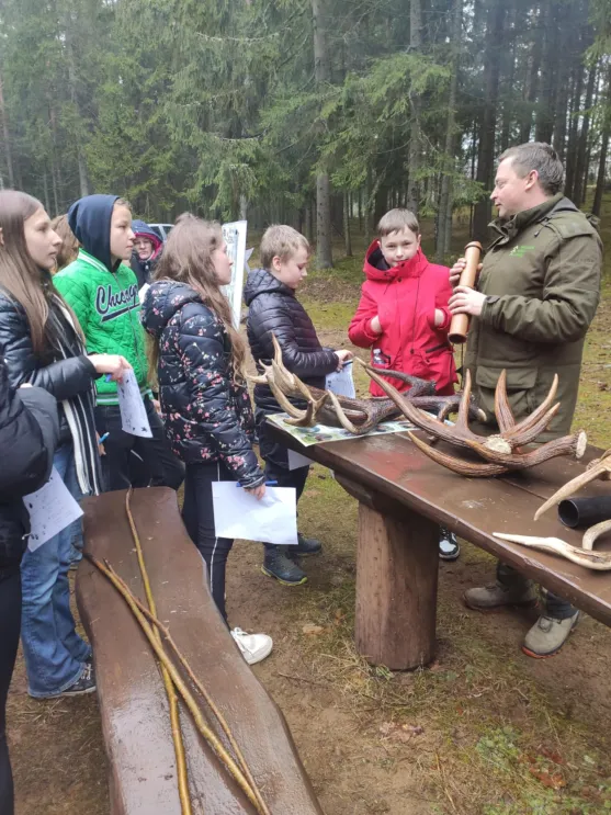 Edukacinės veiklos netradicinėje aplinkoje (miške) kovo 26 d. vyko bendradarbiaujant kartu su Rokiškio urėdijos padalinio specialistais. Šių gamtos pamokų metu 1-4 ir 5-8 klasių mokiniai pagilino žinias apie mitybos grandines, miško ardus. Mokėsi, kaip apskaičiuoti medžių amžių bei pabandė mėgdžioti elnio balsą, apžiūrėjo ragų kolekciją, aptarė, kuo skiriasi skirtingų miško žinduolių kailiai. Nors oras nelepino, bet patirtys ir įspūdžiai puikūs, įgytas žinias mokiniai pritaikys ne tik pamokose, bet ir gyvenimiškose situacijose.