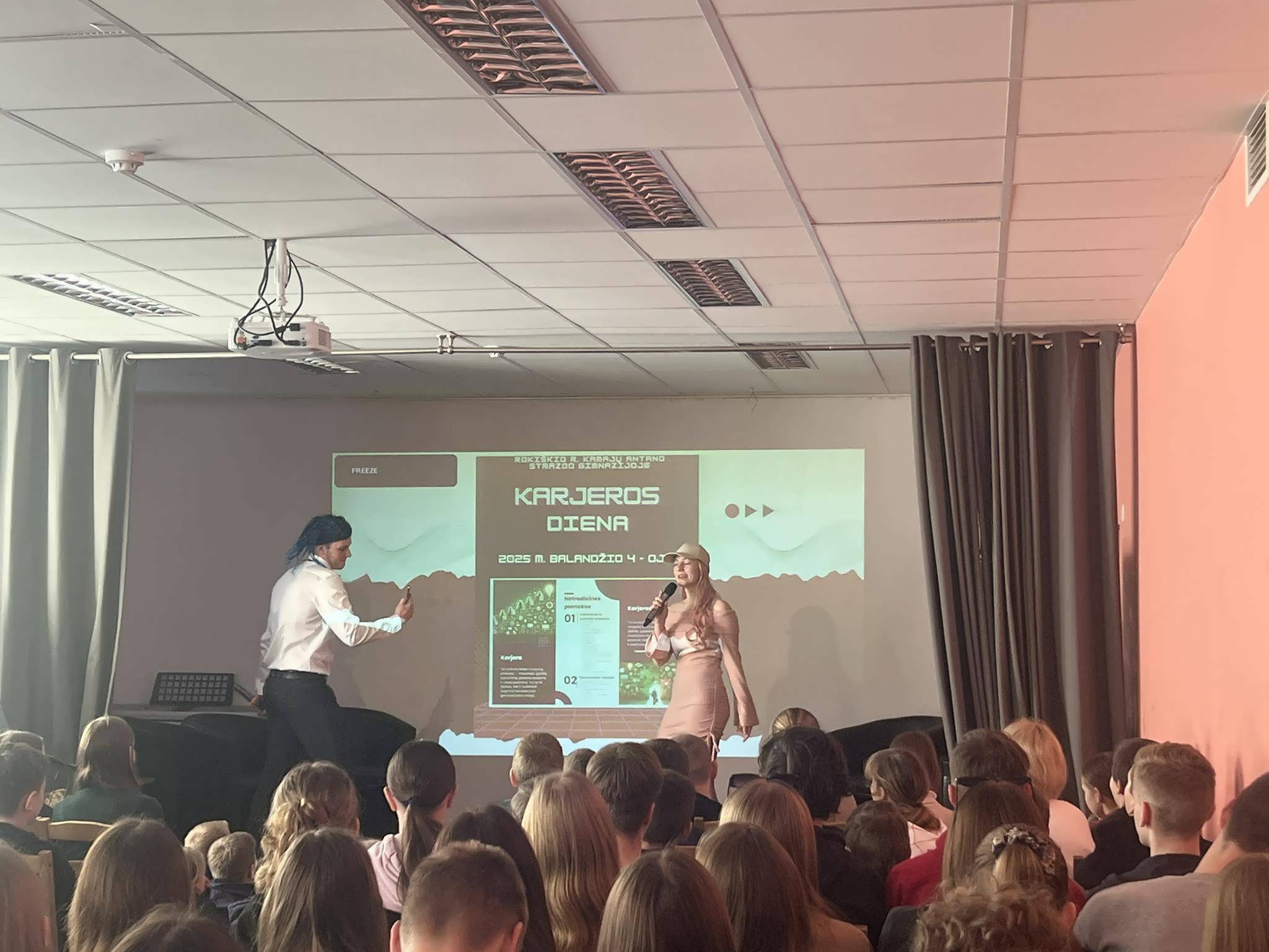 Balandžio 4 d. gimnazijoje vyko „Karjeros diena 2025“, kurioje dalyvavo daugybė svečių, vyko įvairios veiklos. Renginys buvo skirtas padėti mokiniams suprasti, kad šalia akademinių žinių gyvenime labai svarbūs ir minkštieji įgūdžiai – bendravimo ir bendradarbiavimo, komandinio darbo, gebėjimo prisitaikyti, kūrybiškumo, problemų sprendimo. Renginio svečiai dalinosi savo patirtimi ir įžvalgomis bei įtraukė į praktines veiklas — netradicines pamokas, simuliacinius ir stalo žaidimus, kūrybines dirbtuves, kineziterapines pertraukėles, diskusiją.