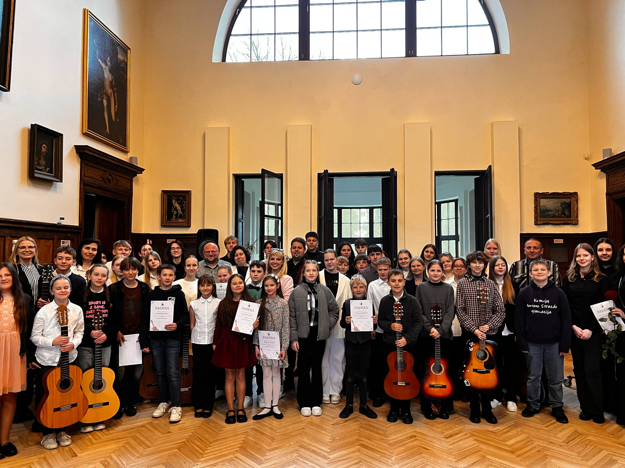 Š. m. gegužės 6 d. Rokiškio Krašto muziejuje vyko respublikinis festivalis ,,Vaikas su gitara 2025“, kurį organizavo Rokiškio Rudolfo Lymano muzikos mokykla. Renginyje dalyvavo muzikos ir menų mokyklų mokiniai, grojantys gitara, bei mišrūs ansambliai. Mūsų gimnazijos neformaliojo švietimo skyriui atstovavo gitaristų ansamblis, solistė ir mišrus instrumentinis ansamblis (mokytojai Robertas Mičelis ir Asta Mičelienė). Pirmą kartą tokiame renginyje dalyvavo Joris Tervydis – (sėkmės jam ir toliau groti), o vyresnės gitaristės – Justina Dudonytė, Akvilė Jakubonytė, Ugnė Stunžėnaitė, Justė Vainickaitė, Neringa Papariga festivalyje ,,Vaikas su gitara“ grojo paskutinį kartą. Sėkmės joms ateityje, kad išliktų noras muzikuoti kitose erdvėse.