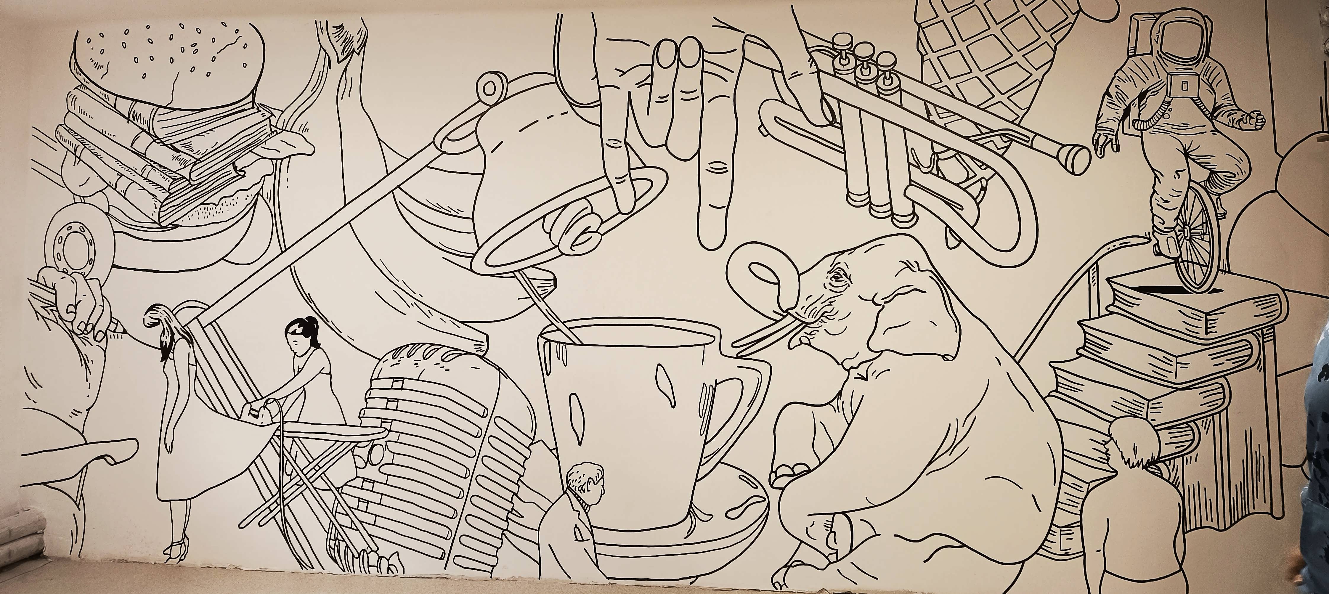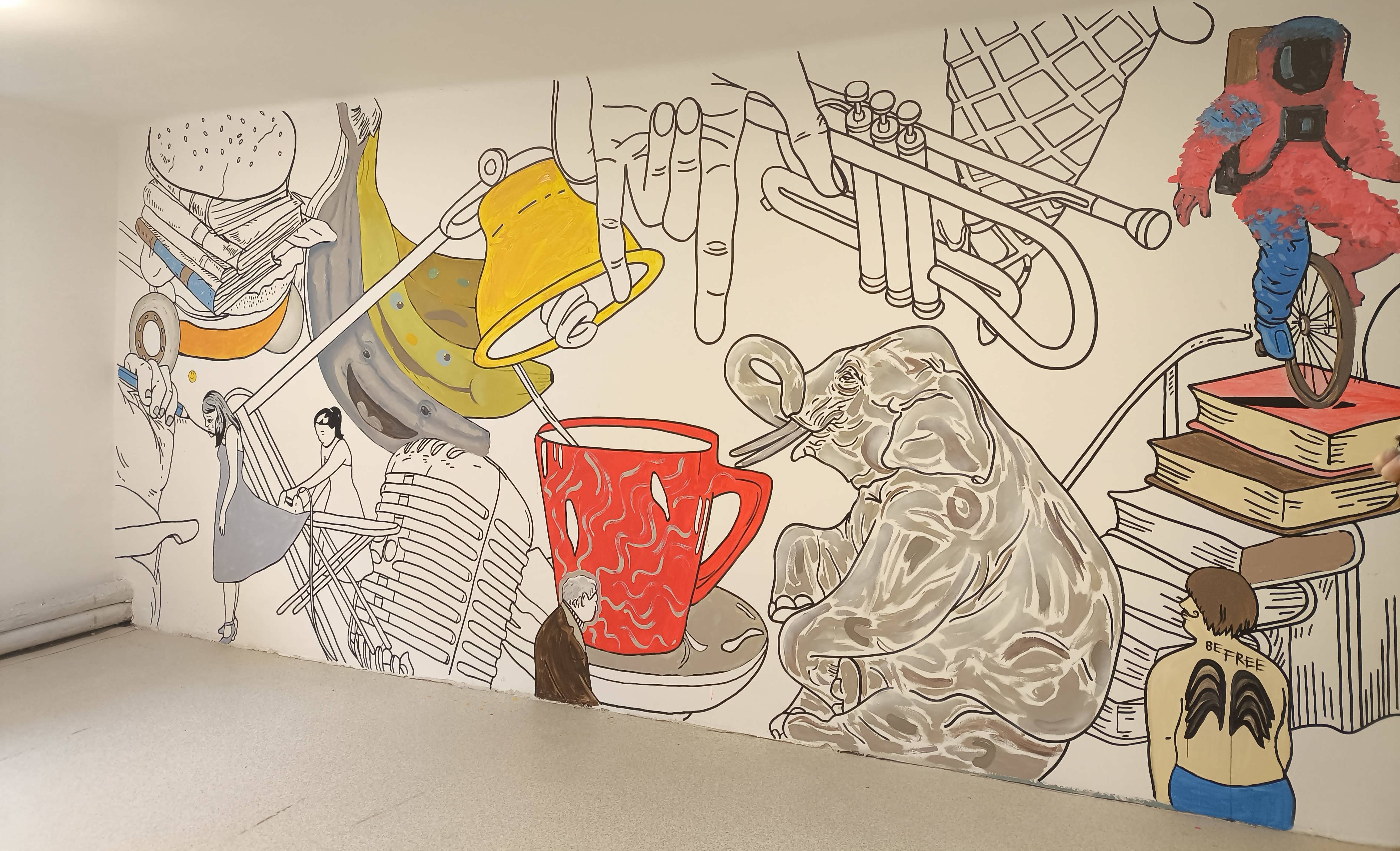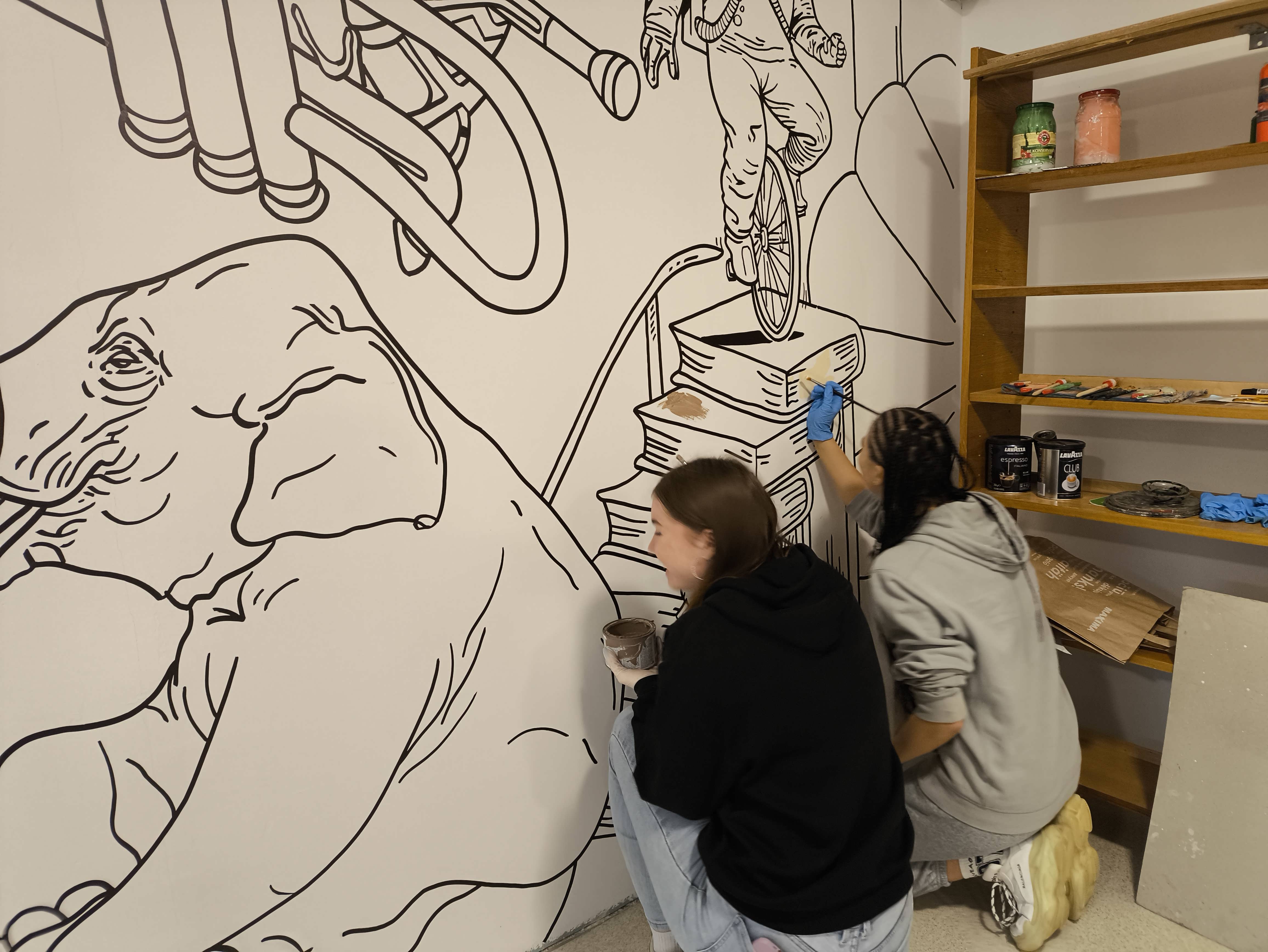 Renginys prasidėjo pažintine paskaita apie gatvės meną, kurią vedė žinomas šalies menininkas, kaunietis Tadas Šimkus. Jo piešiniai ant namų sienų garsūs ne tik Lietuvoje – net tris namų sienas yra papuošęs Juodupės miestelyje. Vietoj numatyto užsiėmimo lauke (nes lijo lietus) po paskaitos visi renginio dalyviai buvo pakviesti dalyvauti praktiniuose užsiėmimuose gimnazijos vidaus erdvėse – pasirinktomis spalvomis spalvino juodais kontūrais nupieštus piešinius ant kabineto bei koridoriaus sienų. Panaudodami trafaretus, kūrė piešinių kompozicijas purškiamais dažais ant popieriaus lapų, atsivežtos aprangos – marškinėlių, šortų, džinsų.
