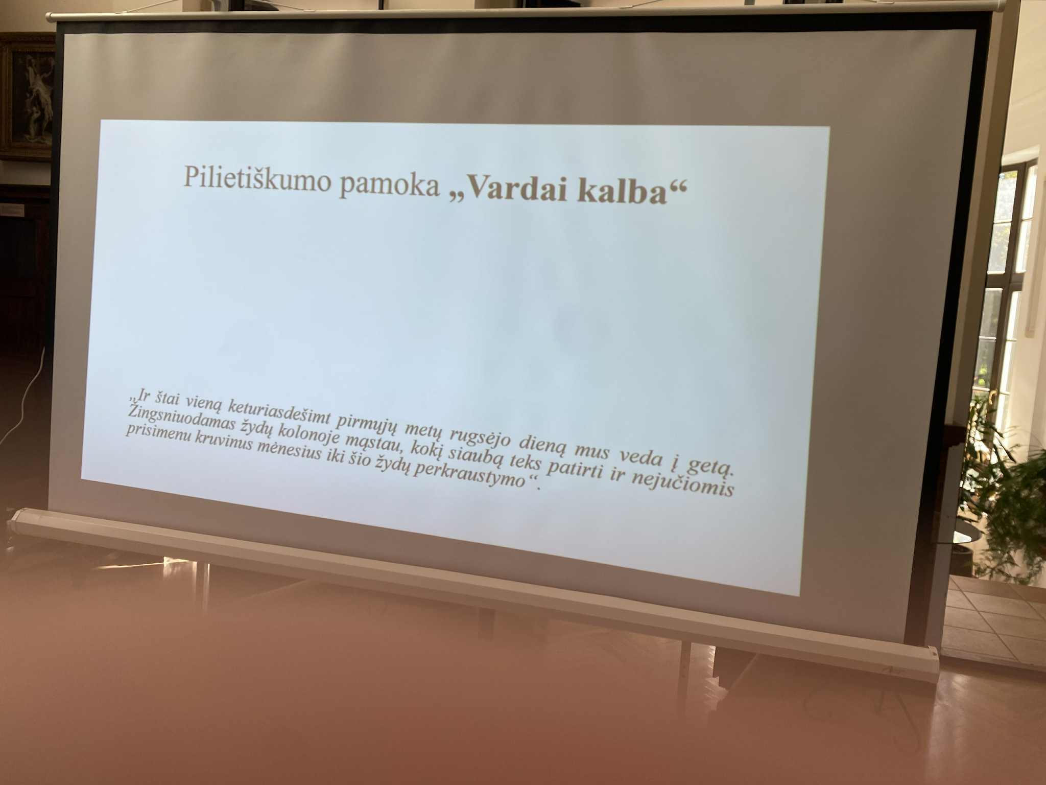 3g klasės mokiniai dalyvavo pilietiškumo pamokoje „Vardai kalba“. Muziejaus darbuotojas Justinas Malcius pasakojo Vilniaus geto istoriją, remdamasis amžininkų atsiminimais. Žiūrėjome archyvines nuotraukas, kuriose įamžintas getas ir Panerių žydų žudynių vieta.