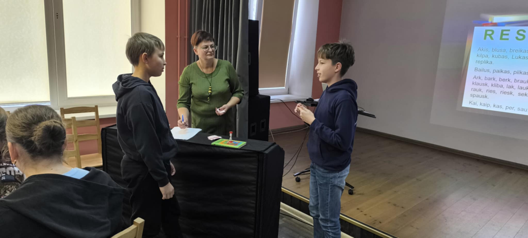 Pirmiausia svečiai apsilankė Kamajų istorijos, kunigo ir poeto Antano Strazdo muziejuje, išklausė gidės Jolantos Vygėlienės pasakojimo, užsuko į šv. Kazimiero bažnyčią. Gimnazijos salėje bibliotekininkė Jolanta, talkinant lietuvių kalbos ir literatūros mokytojai Aušrai, vedė užsiėmimą. Komandos, sudarytos iš pandėliečių ir kamajiškių, atliko įvairias užduotis: dėliojo kūrinio tekstą, dalyvavo viktorinoje apie knygas, žaidė literatūrinį „Alias“ žaidimą, sprendė „Raidoku“.