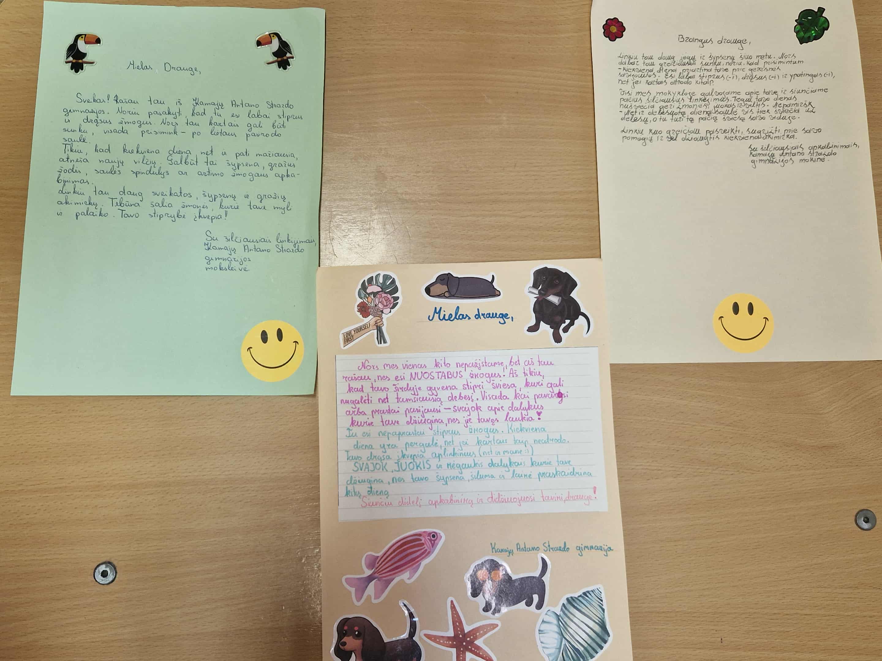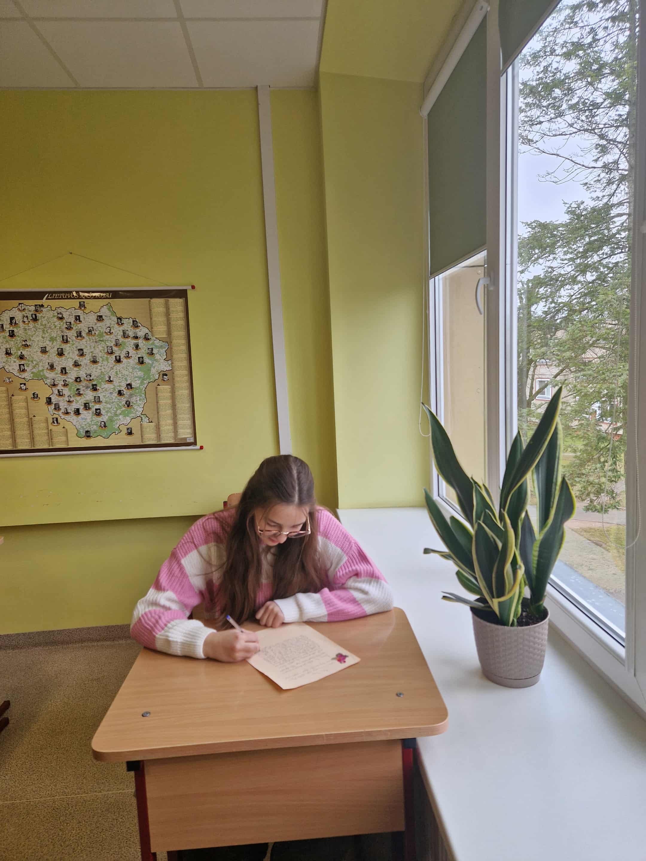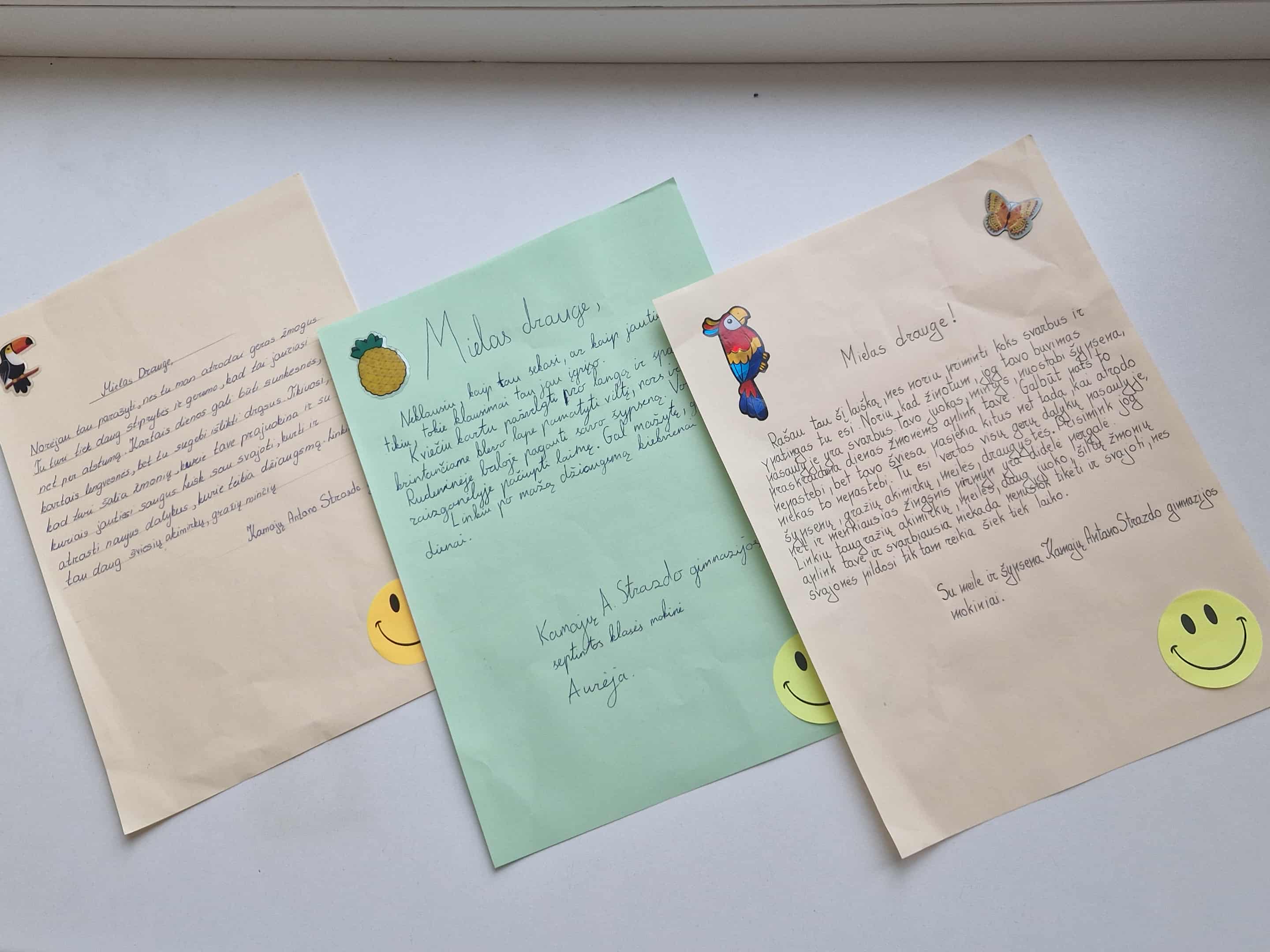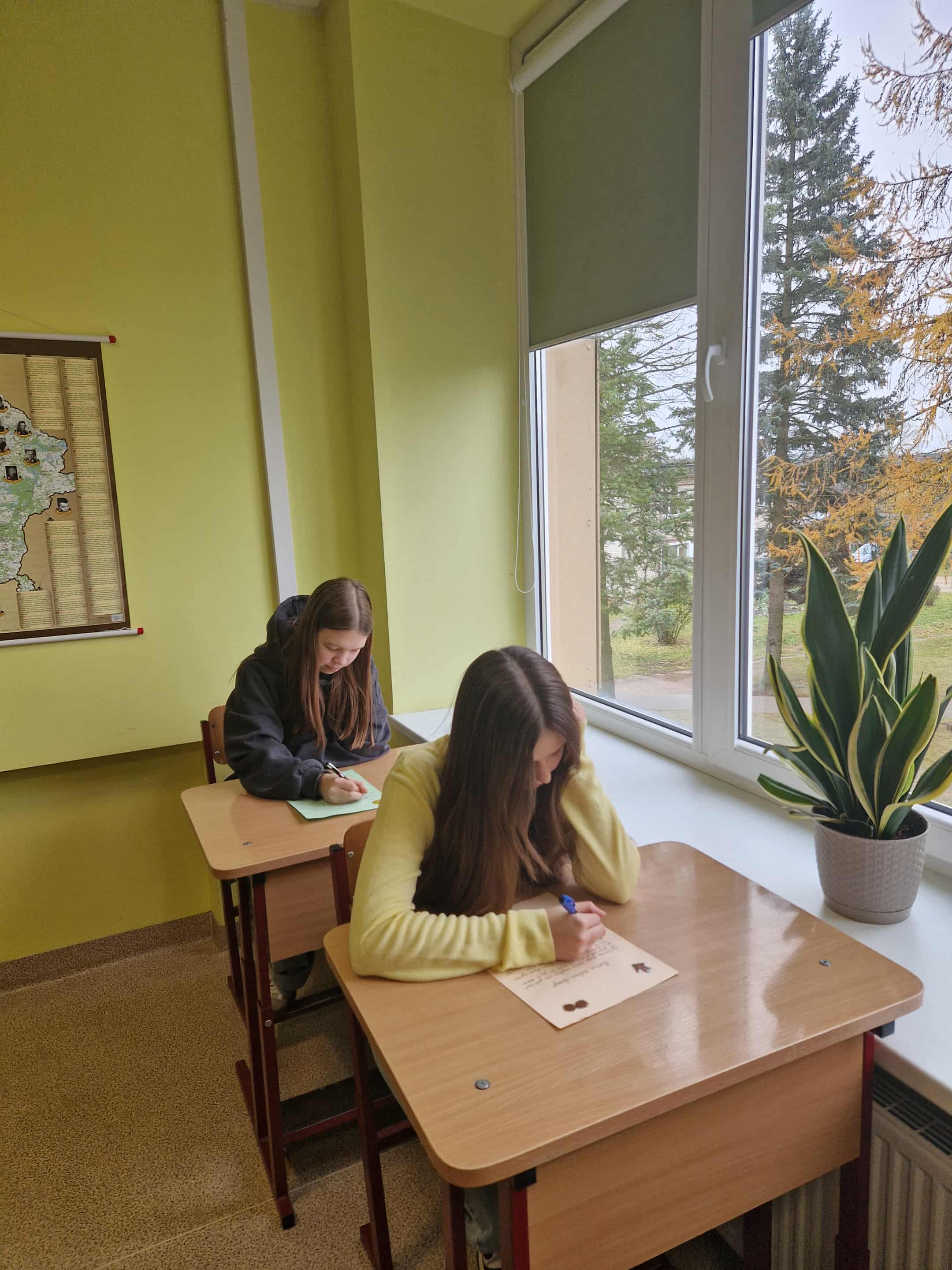 Lapkričio 10 dieną mūsų gimnazijoje šurmuliavo „Pyragų diena“, kurios metu už skanius kepinius surinkti pinigėliai keliaus vaikų paramos projektams. Pokalbio metu diskutuojant apie šios akcijos svarbą, merginoms netikėtai gimė idėja-parašyti laiškus onkologinėmis ligomis sergantiems vaikams. Jų rašyti laiškai alsuoja nesumeluotu nuoširdumu, tikrumu, ramybe, drąsa: „Kviečiu kartu pažvelgti pro langą ir spalvotame krentančiame klevo lape pamatyti viltį, rudeninėje baloje pagauti savo šypseną. Voratinklio raizgalynėje pačiupti savo laimę…“ Lietuva turi tiek gerų žmonių. Mūsų gimnazijos mergaitės-tai mūsų šviesuliukai, kurios viską padarys, ką galės, dėl tavęs, dėl sergančio, dėl kito.