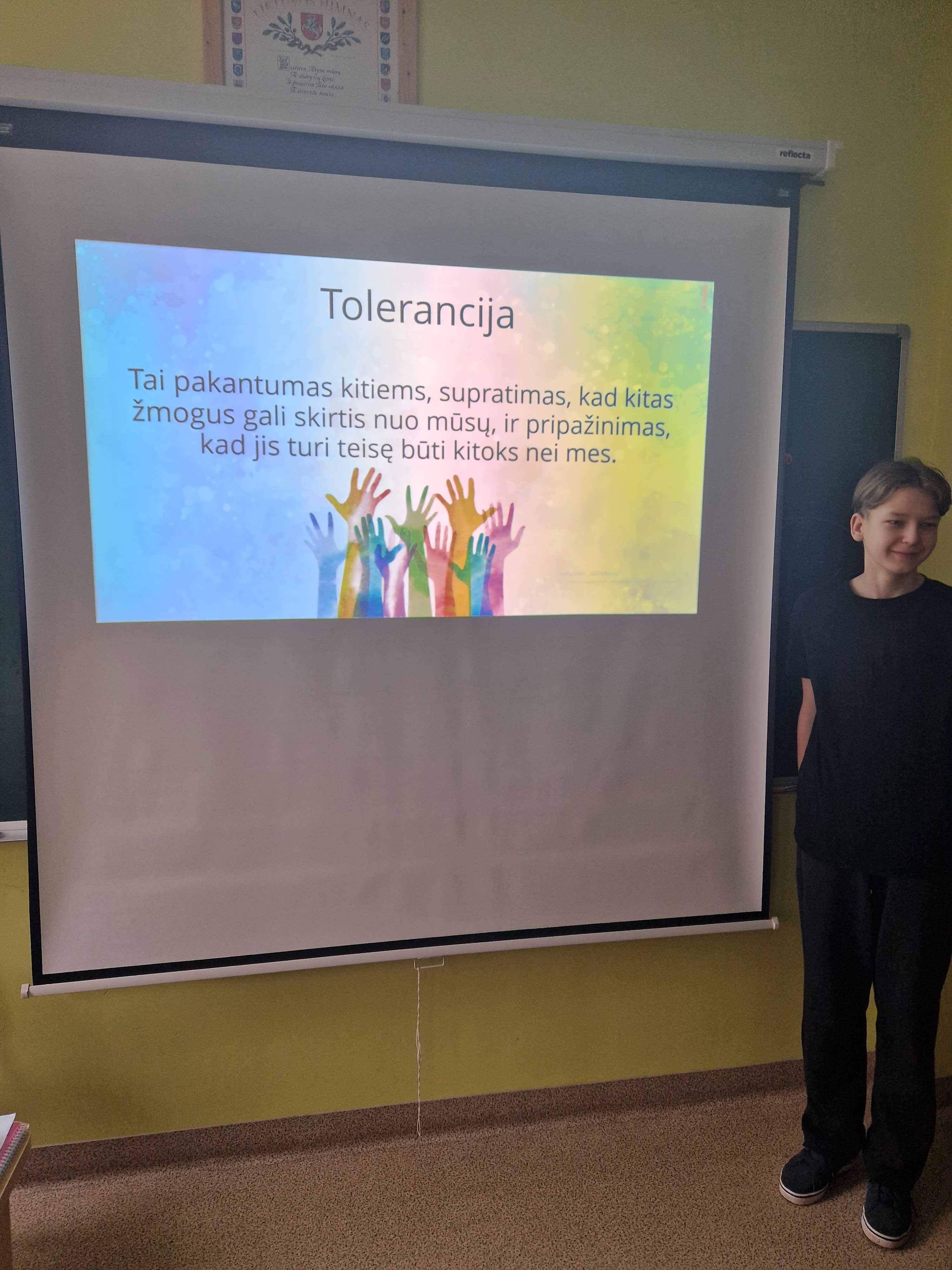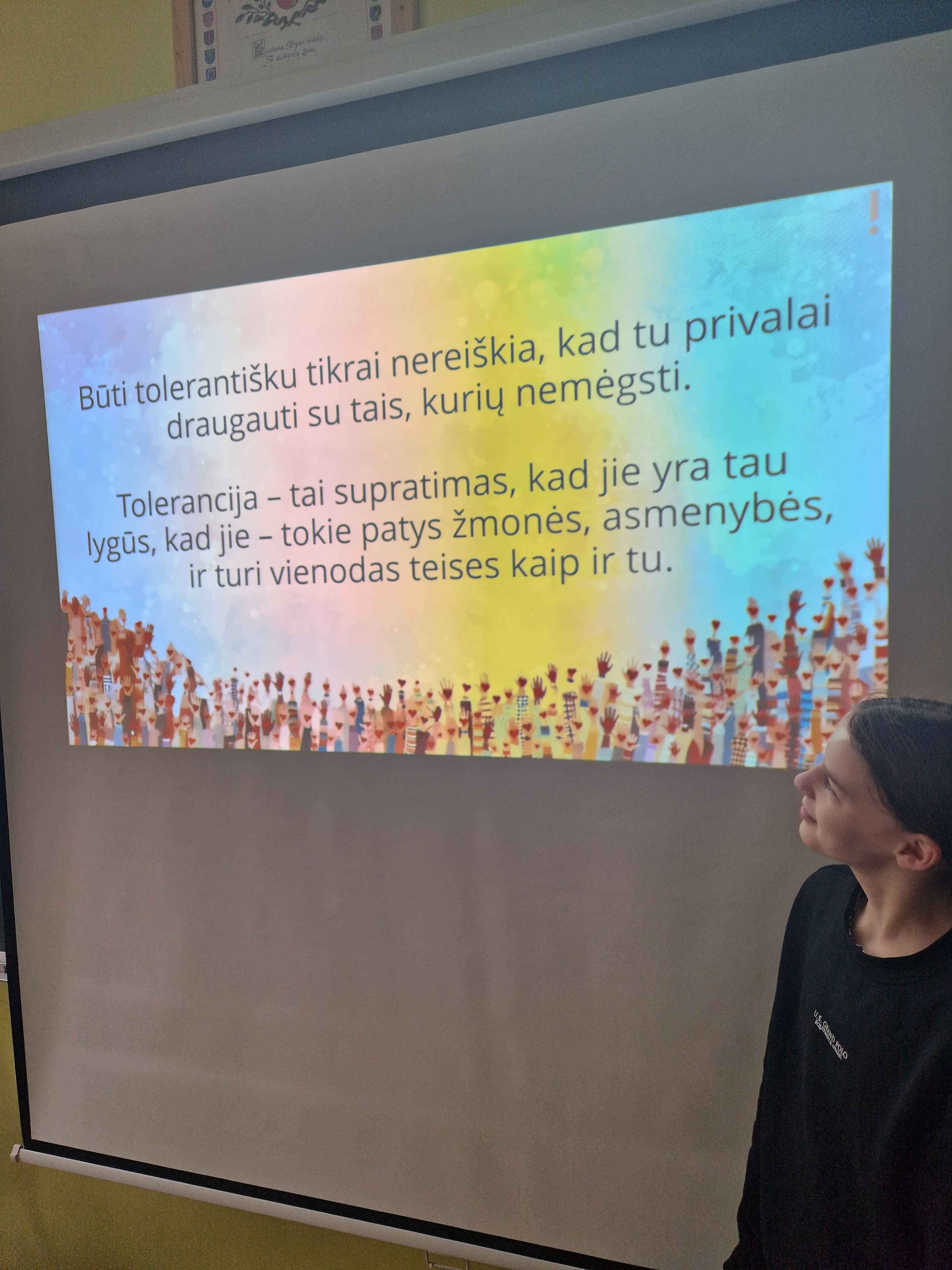 LAPKRIČIO 16-oji Tarptautinė tolerancijos diena. Šią dieną skatinama atkreipti visuomenės dėmesį į skirtingų nuomonių, skirtingų tautybių žmonių, sergančiųjų ir turinčių problemų toleranciją. Įvairiose šalyse organizuojami renginiai, skirti ugdyti toleranciją, pakantumą, gebėjimą suprasti kitus, kantrybę. Mūsų gimnazijos mokiniai aktyviai įsitraukė į šiai dienai skirtas veiklas- klasės gamino gatves su namukais, žiūrėjo filmukus apie toleranciją, juos aptarė. Užsiėmimų metu diskutavo apie, kaip svarbu sukurti bendruomenę, kurioje visi jaustųsi saugūs, priimti ir gerbiami, kaip draugiškoje gatvėje, kurioje žmonės vieni kitiems padeda ir atsižvelgia į skirtingumus. Darbeliai eksponuojami pirmame ir antrame aukšte. Kviečiame apsilankyti.